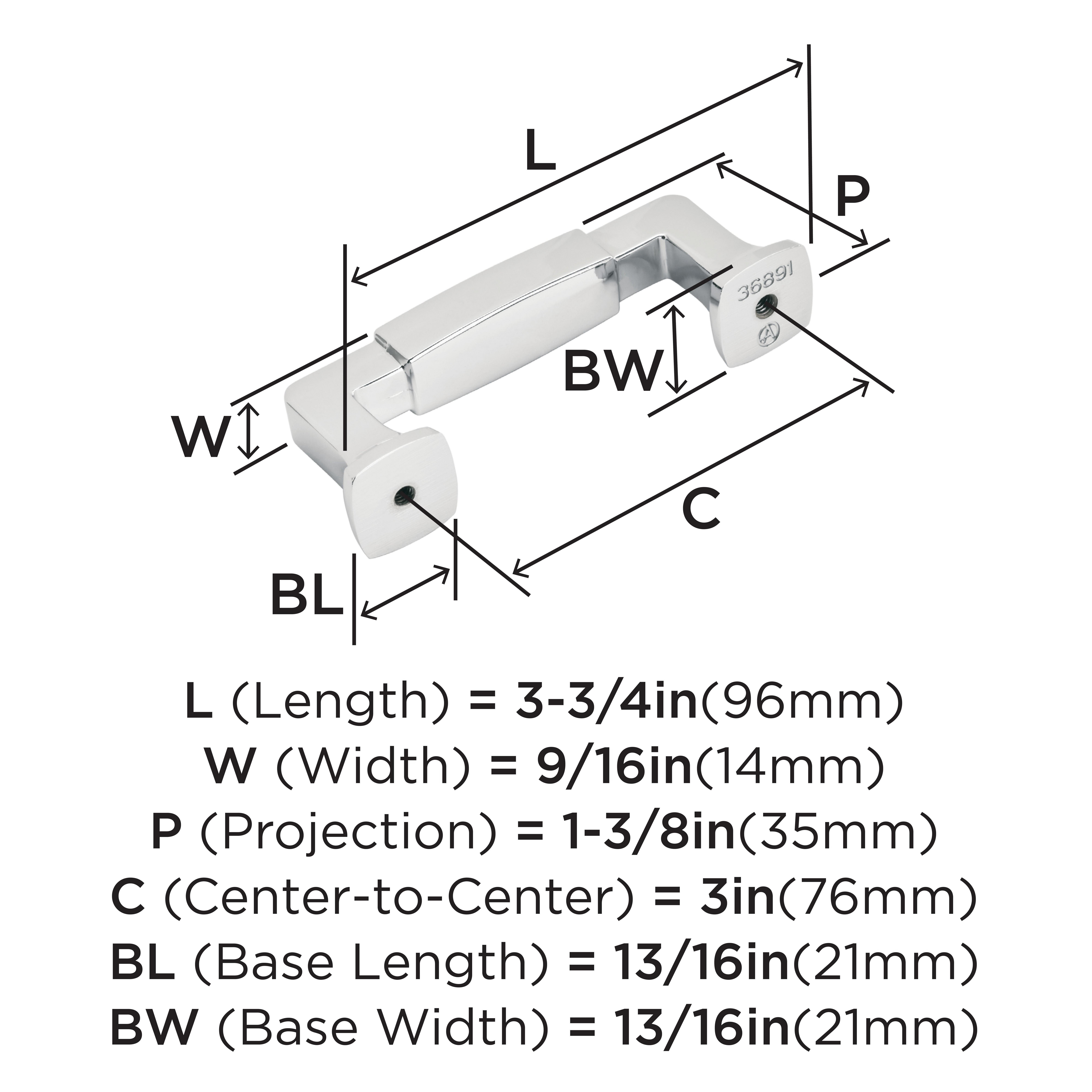 The Amerock Stature 3 in. Center-to-Center Polished Chrome Cabinet Pull is finished in polished chrome polished. Stately and substantial, the Stature collection features classic, bold designs and barrel-style pulls that are underlined with timeless appeal.