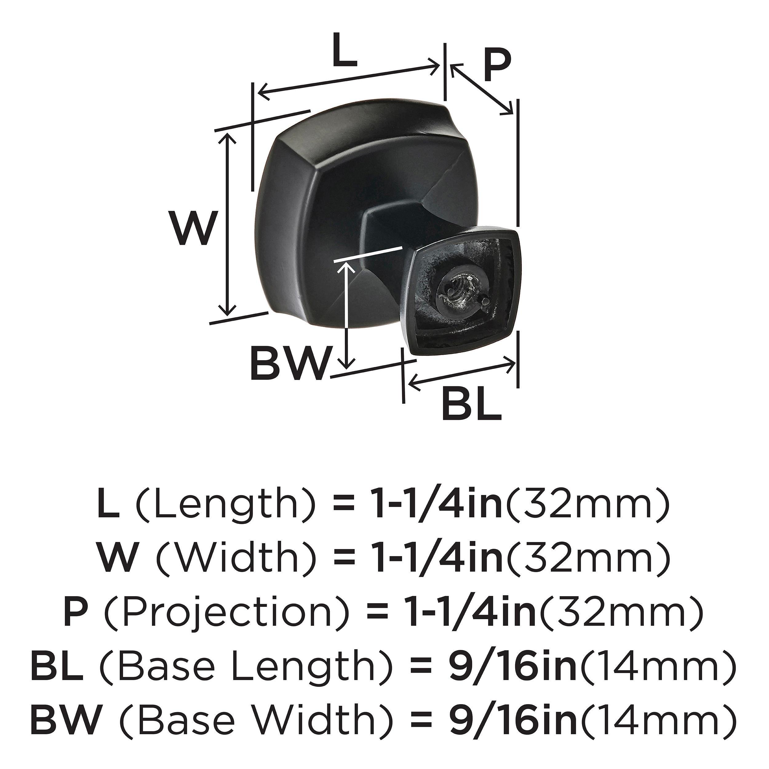The Amerock Stature 1-1/4 in. Matte Black Cabinet Knob is finished in matte black matte. Stately and substantial, the Stature collection features classic, bold designs and barrel-style pulls that are underlined with timeless appeal.