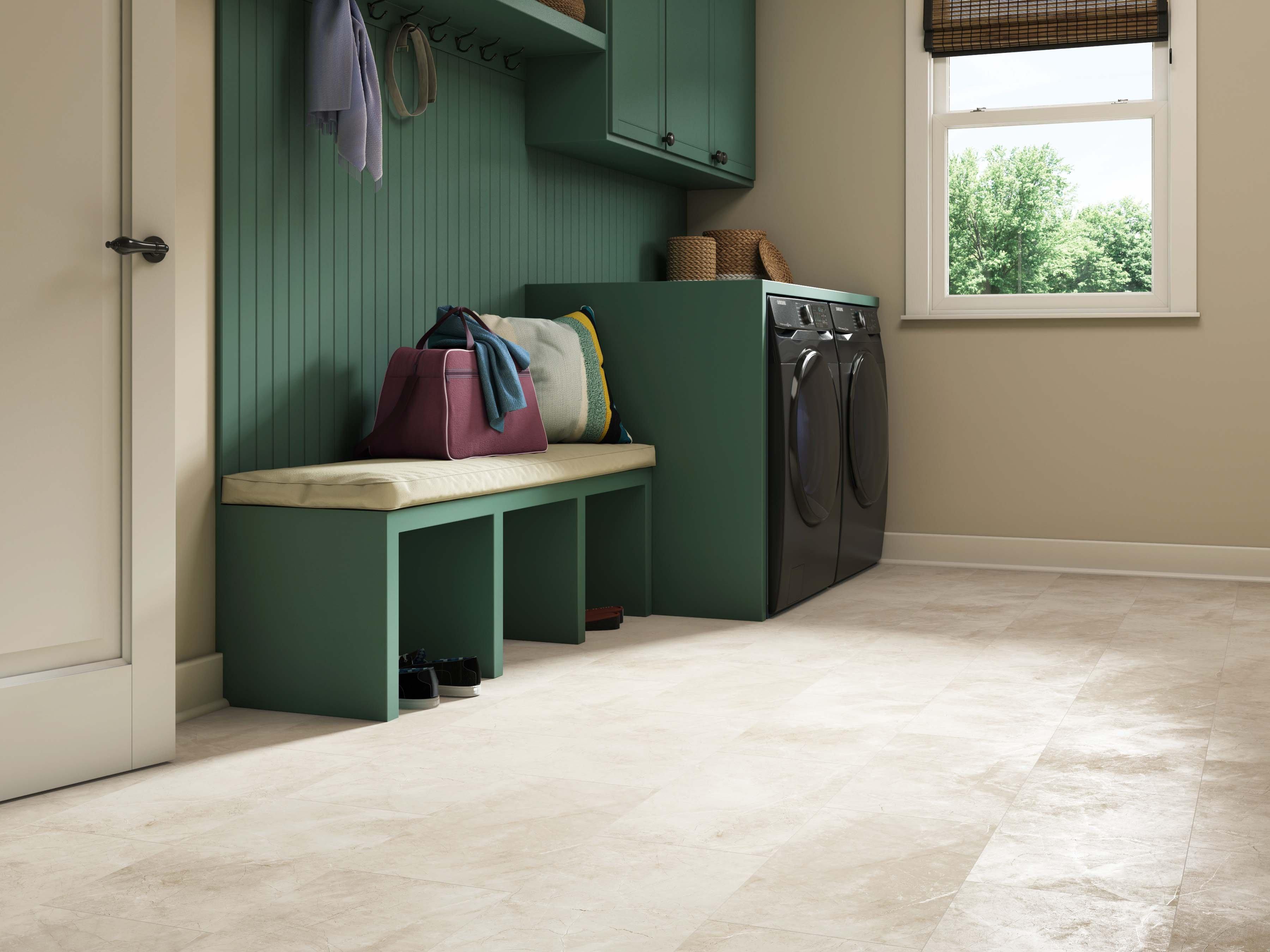 Luxury vinyl flooring is 100% waterproof and stands up to most anything life throws its way! 5mm x 12in x 24in DuraLux Performance Champagne Limestone Waterproof Rigid Core Luxury Vinyl Tile - Foam Pad is a highly durable and waterproof flooring option that is suitable for any room in the house, including basements, sunrooms, and full bathrooms. Plus, its rigid stone-based core makes each plank dent-resistant and scratch-resistant, so DuraLux Performance is perfect for high-traffic areas.