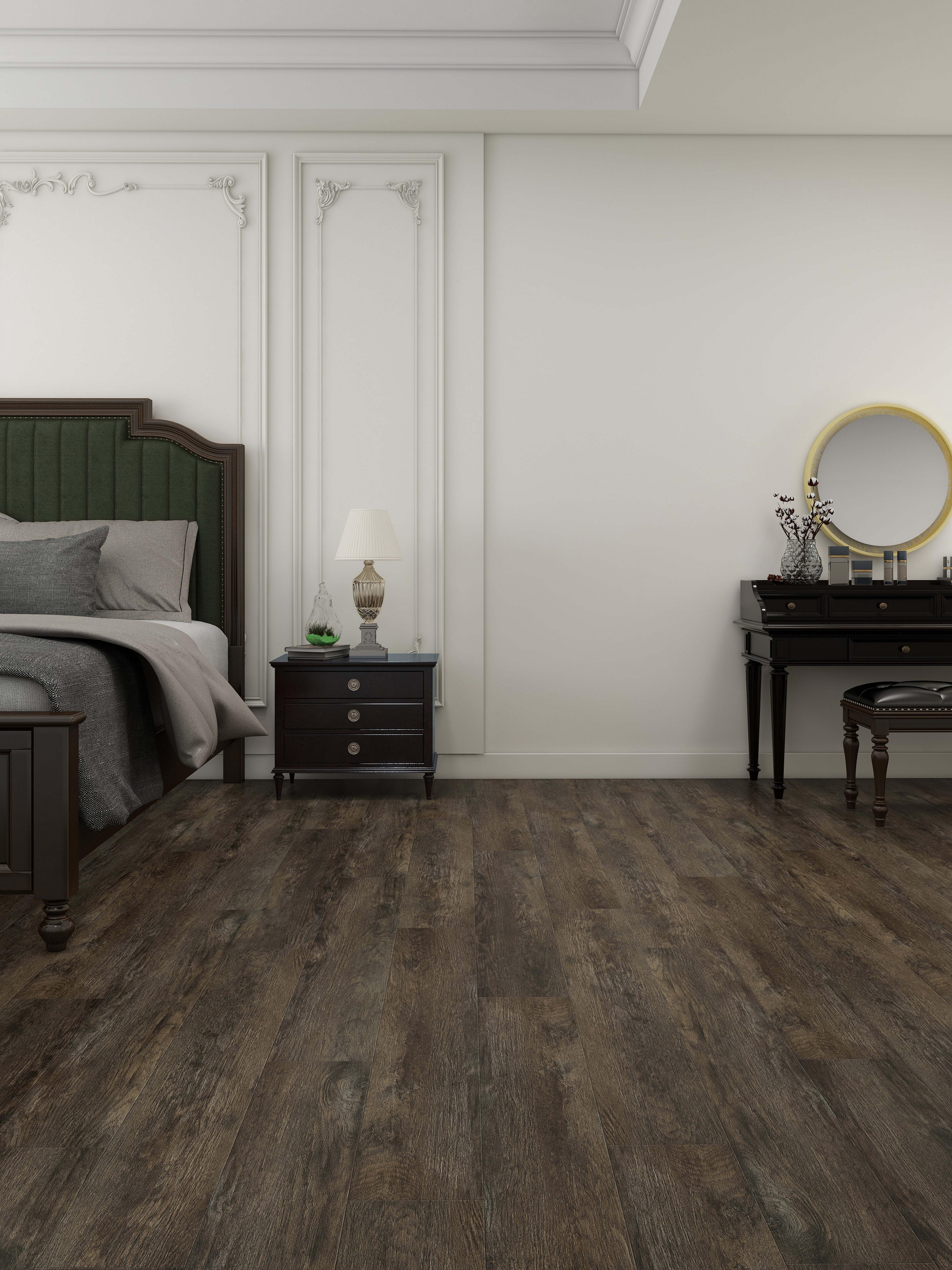 Luxury vinyl flooring is 100% waterproof and stands up to most anything life throws its way! 5mm x 7in x 48in DuraLux Performance Stormy Elm Waterproof Rigid Core Luxury Vinyl Plank - Foam Pad is a highly durable and waterproof flooring option that is suitable for any room in the house, including basements, sunrooms, and full bathrooms. Plus, its rigid stone-based core makes each plank dent-resistant and scratch-resistant, so DuraLux Performance is perfect for high-traffic areas.
