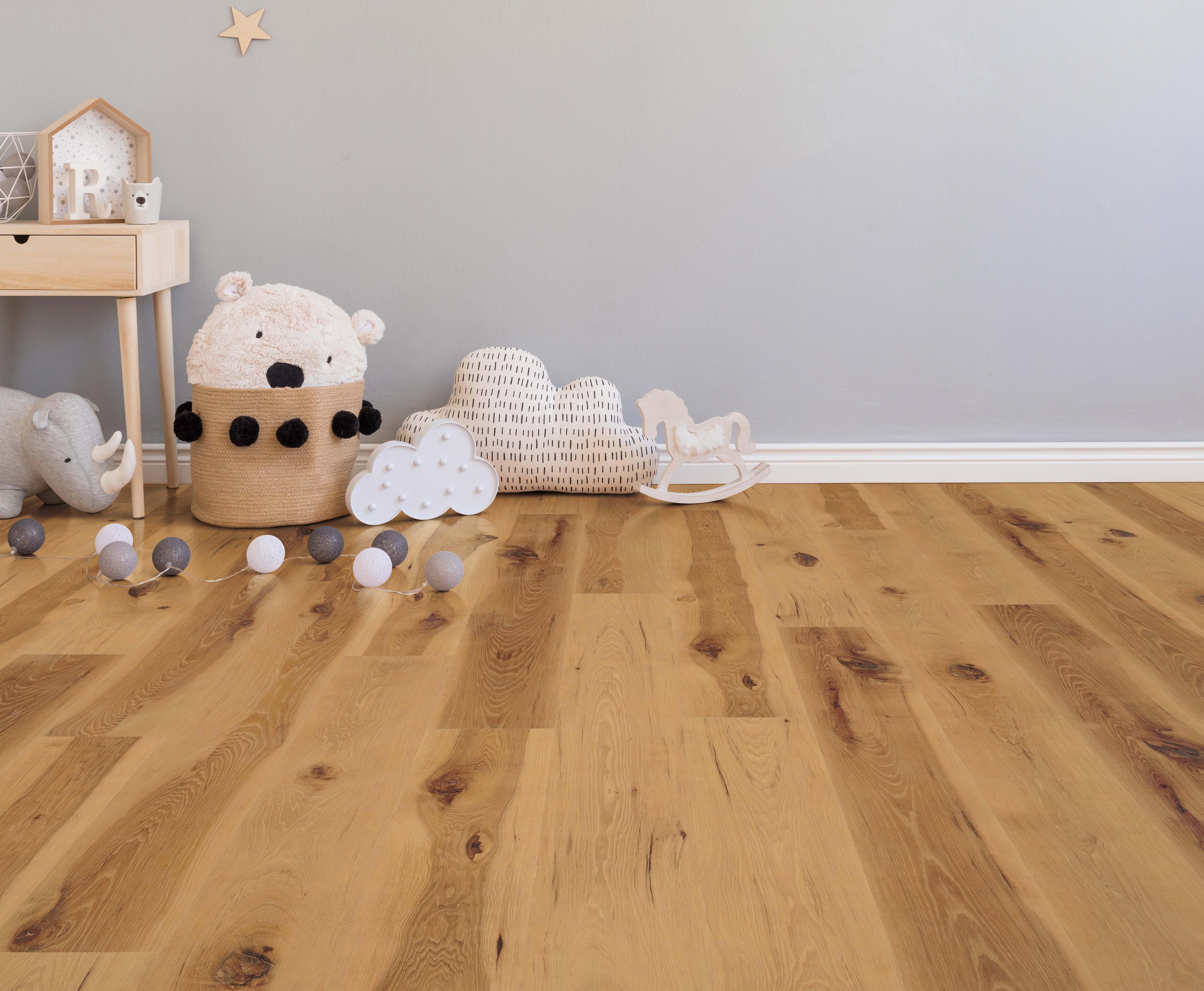 Kid and pet-friendly with superior dent and scratch resistance. Product thickness and minimum 12 mil wear layer creates superior durability.