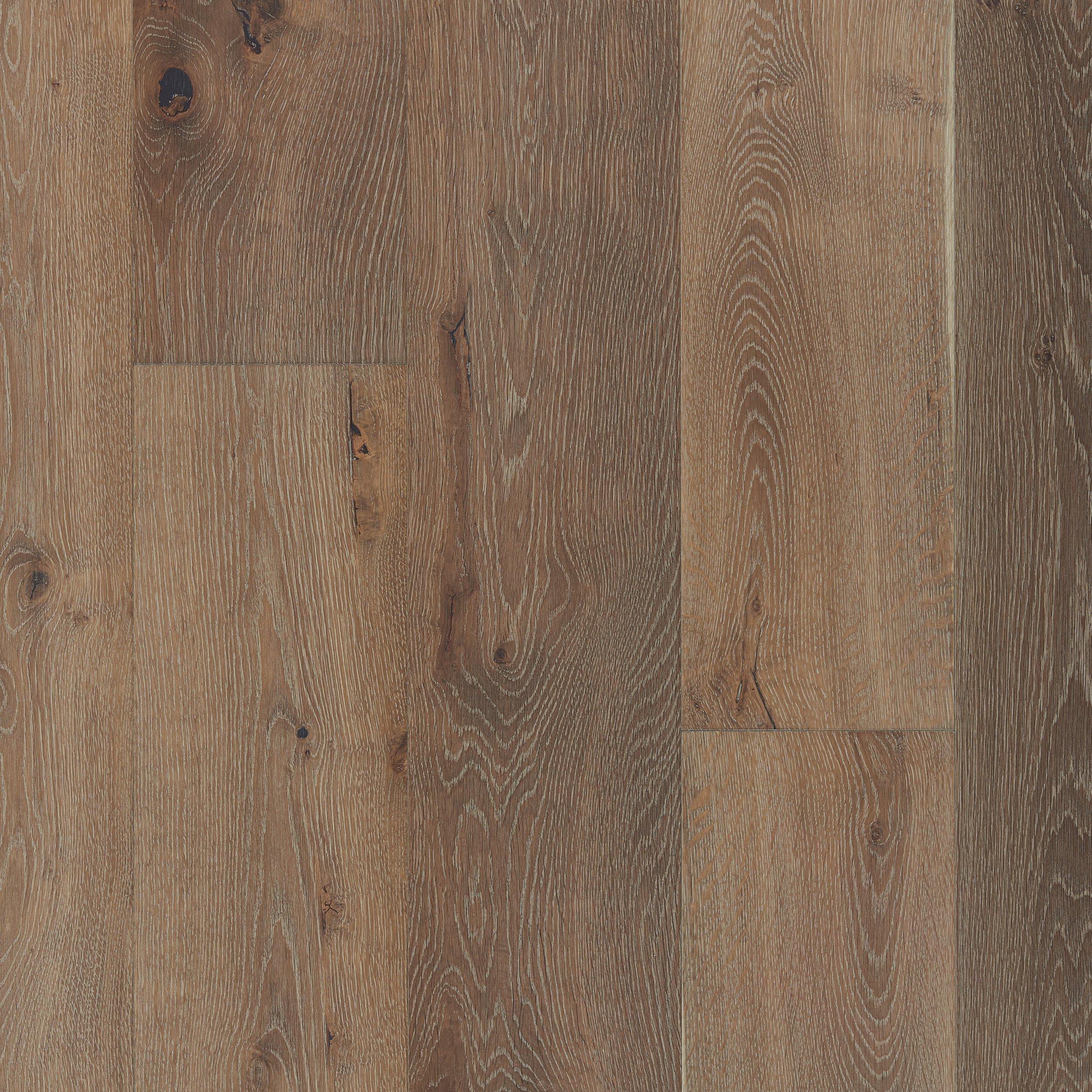 This 9/16 x 7 1/2in. Aria White Oak Wire-Brushed Engineered Hardwood comes in a wire-brushed finish with a 25 year residential warranty.