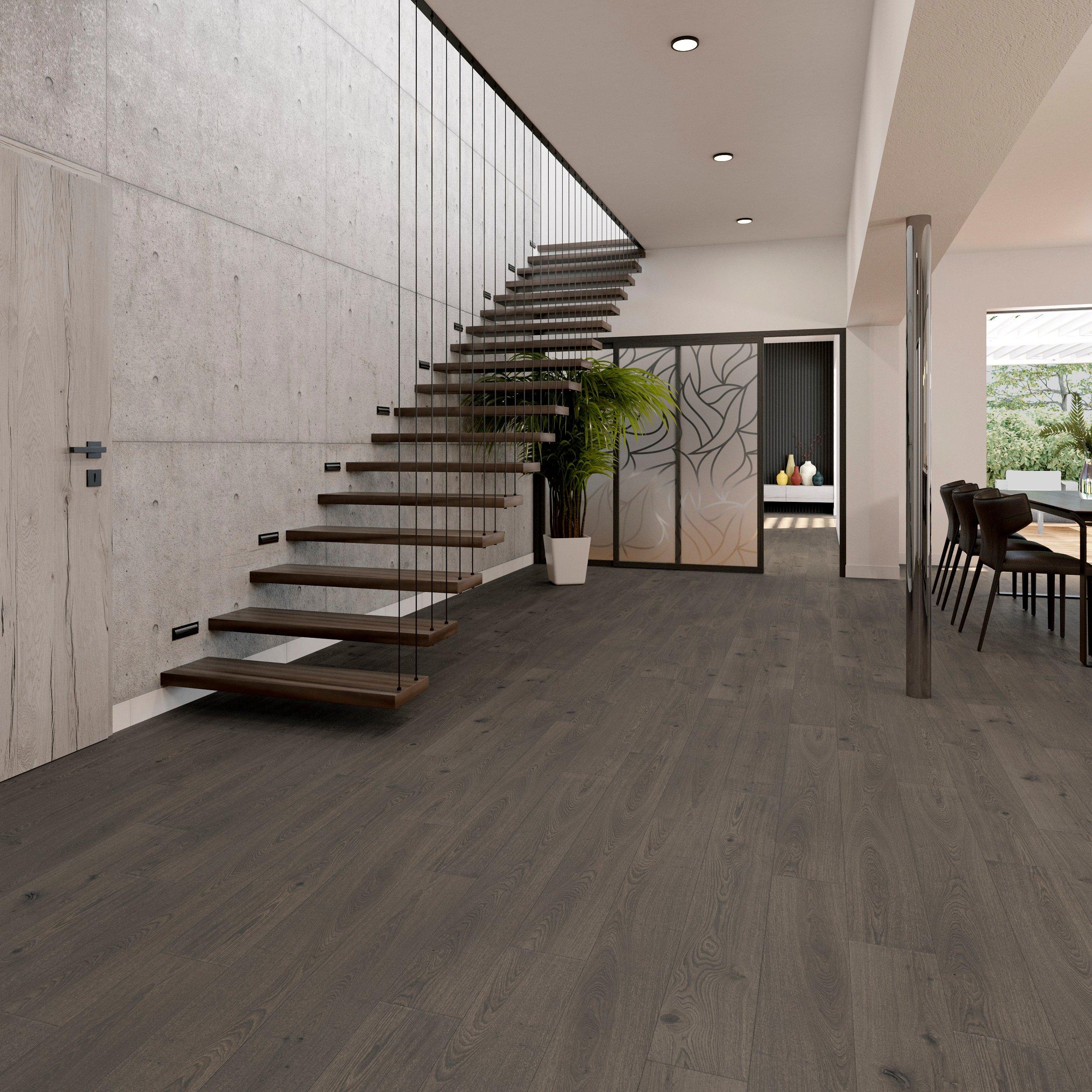 Engineered hardwood is real hardwood that is highly stable and less prone to expanding and shrinking from changes in moisture and temperature. Our engineered hardwood comes in a wide range of shades, is durable and adds warmth and character to your home.