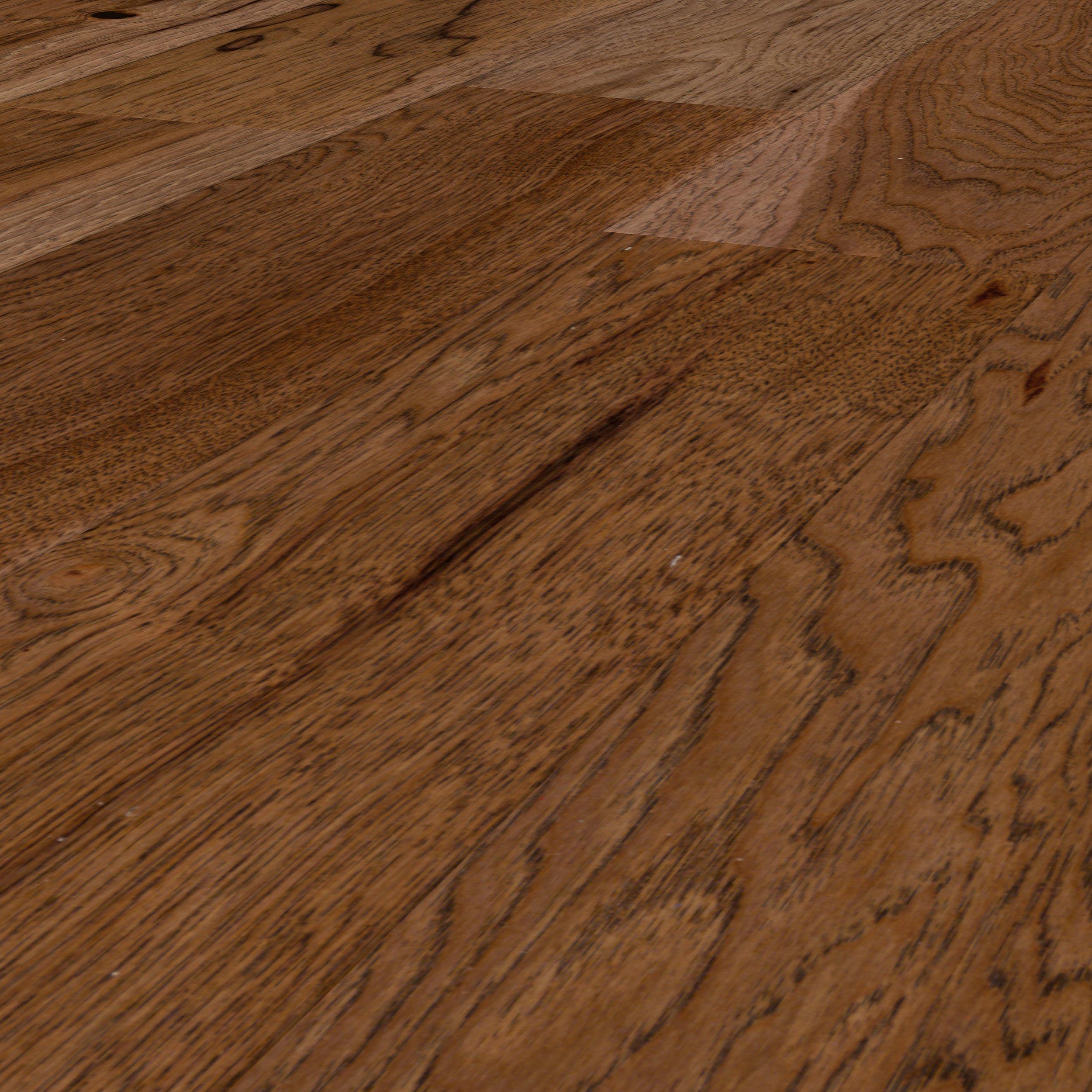 Hickory flooring has one of the most distinct domestic hardwood looks. Sinuous graining and mineral deposits run through each plank of hickory hardwood, creating a truly unforgettable look with its color variation. Hickory is one of the hardest types of wood flooring available, making it incredibly durable and resistant.