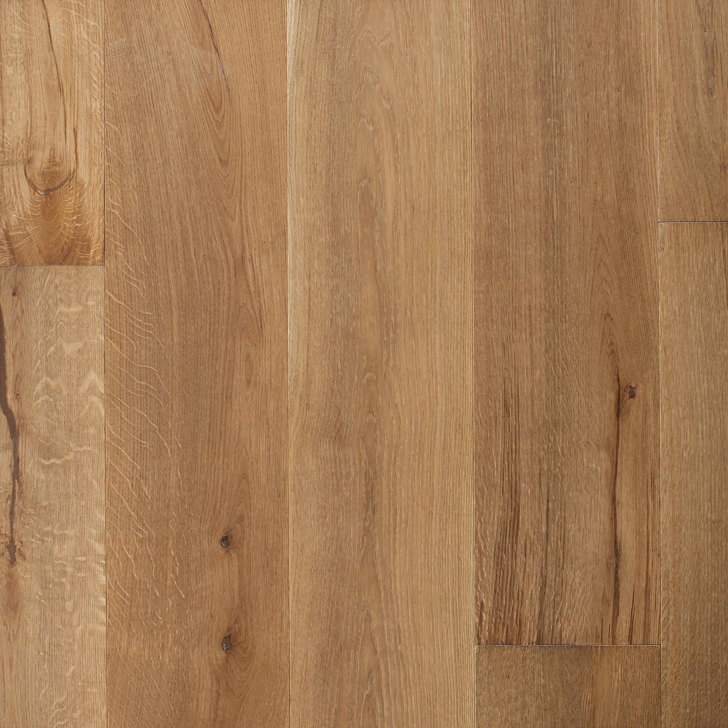 This 5/8 x 9in . Ellsworth White Oak Wire-Brushed Engineered Hardwood and has a 50 year residential warranty with a wire-brushed finish.