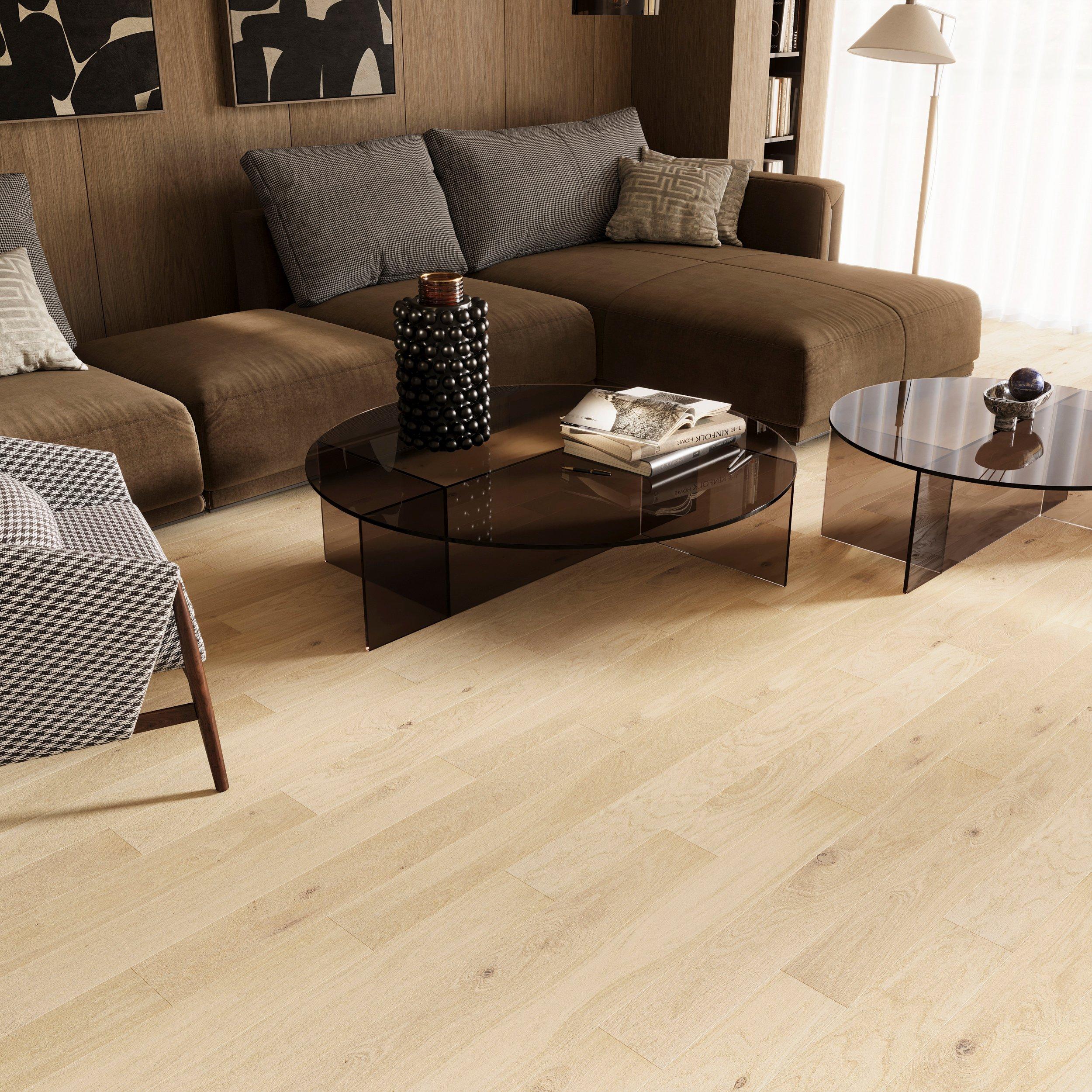 Focus on longevity without sacrificing stability with this Milena White Oak Wire Brushed Engineered Hardwood engineered hardwood! The durable core allows engineered hardwood to be installed on all levels of your home.