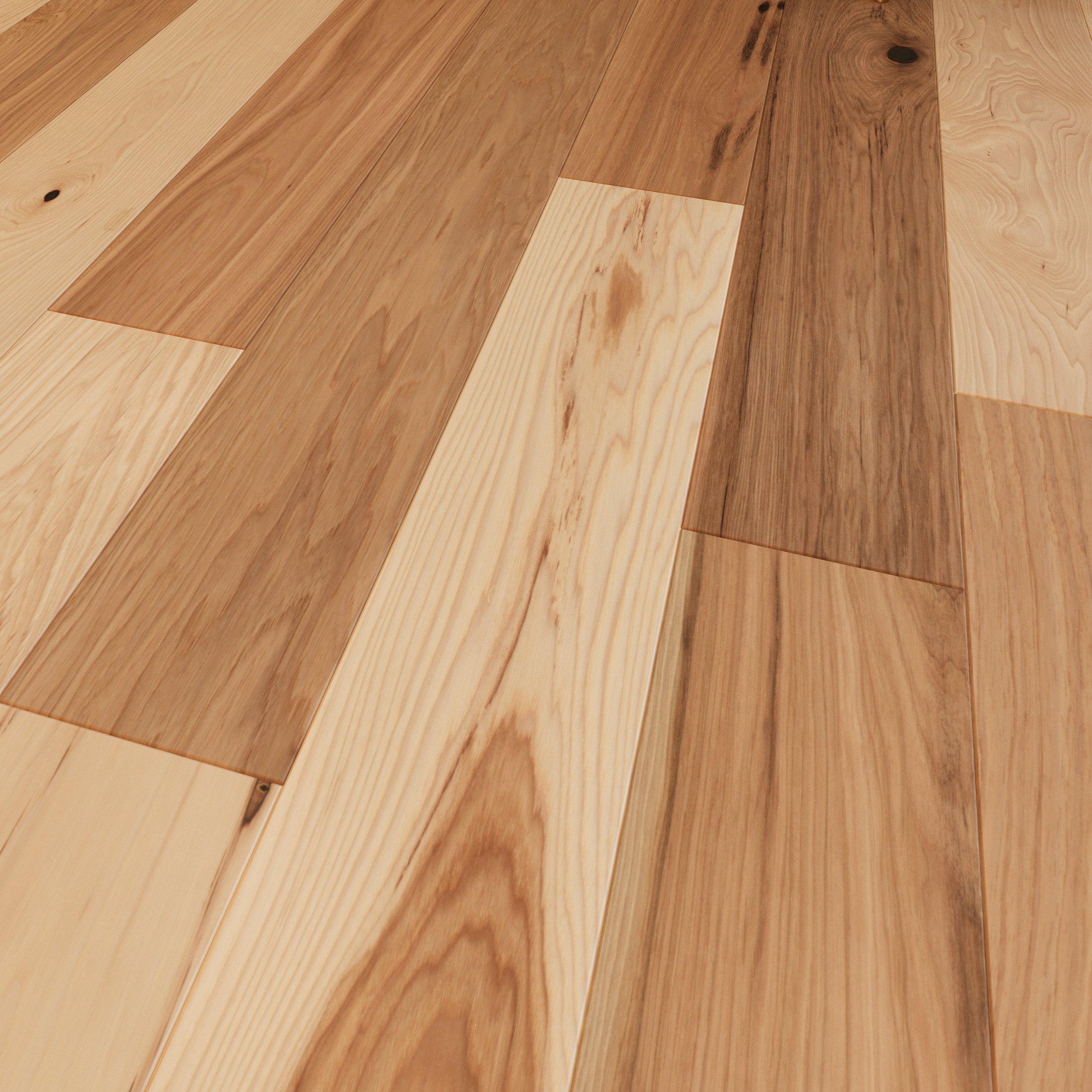 Hickory flooring has one of the most distinct domestic hardwood looks. Sinuous graining and mineral deposits run through each plank of hickory hardwood, creating a truly unforgettable look with its colo r variation. Hickory is one of the hardest types of wood flooring available, making it incredibly durable and resistant.
