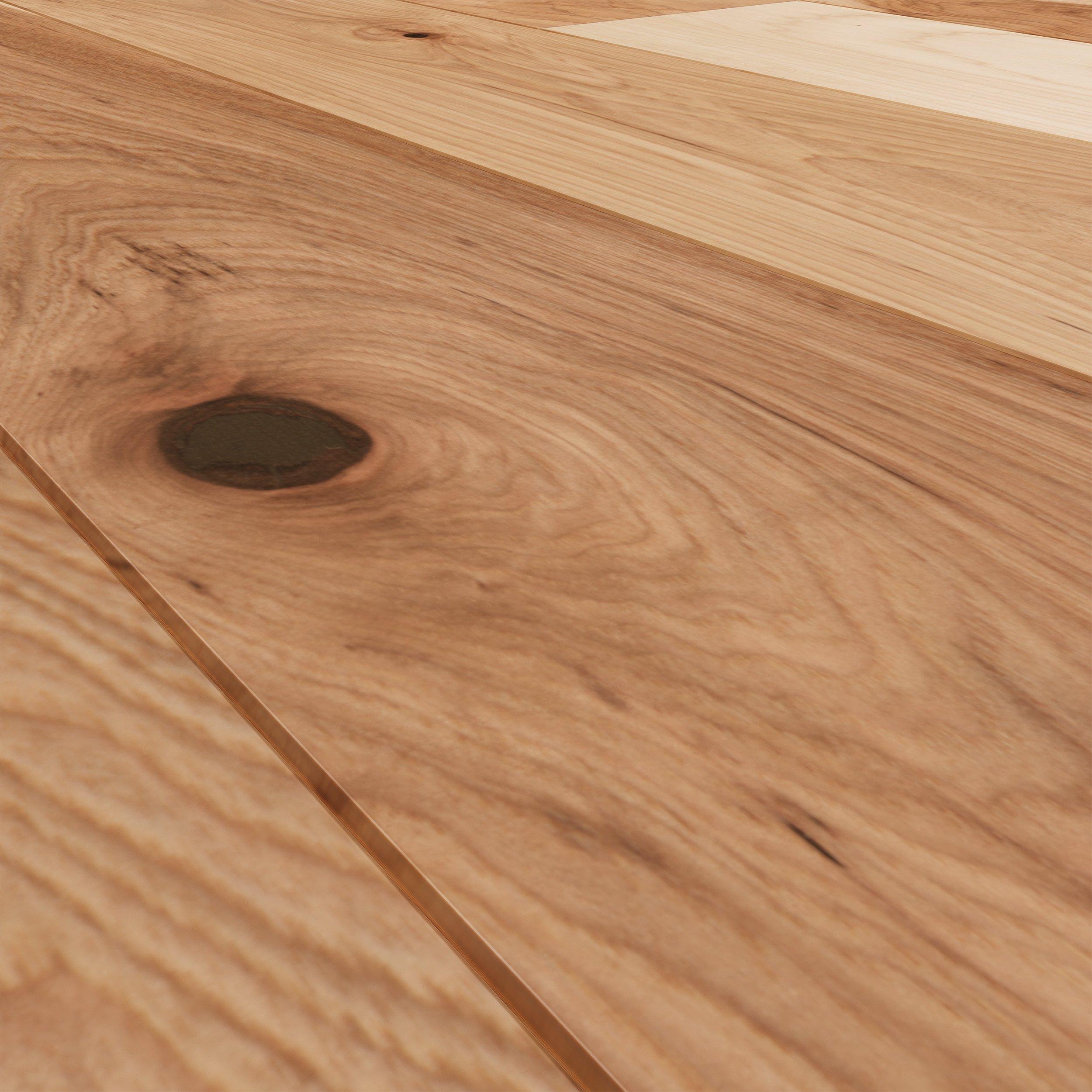 Smooth hardwood floors offer a traditional look that is a versatile choice for any space. The smooth finish captures the character and grain variation of the unique wood species.
