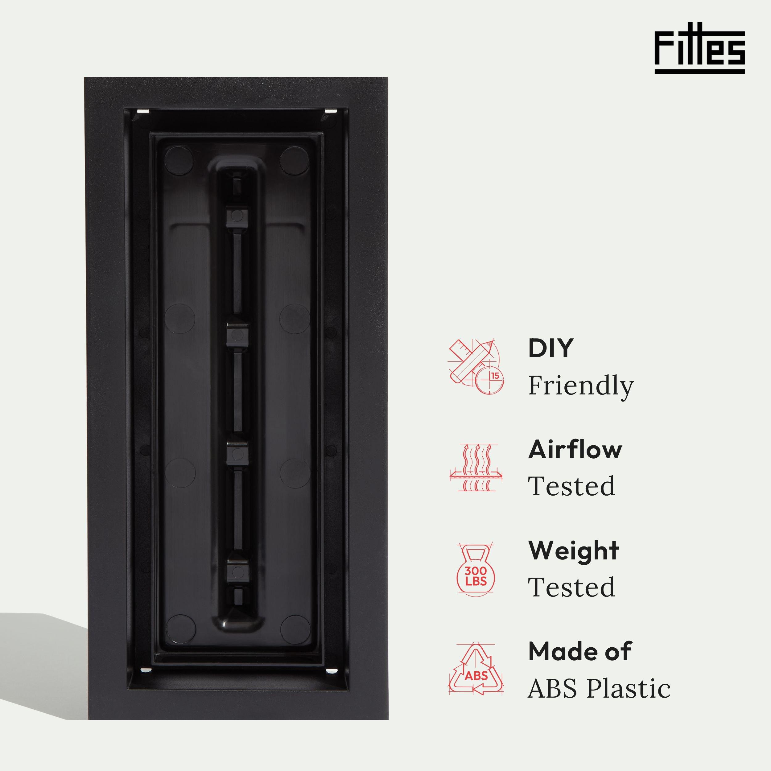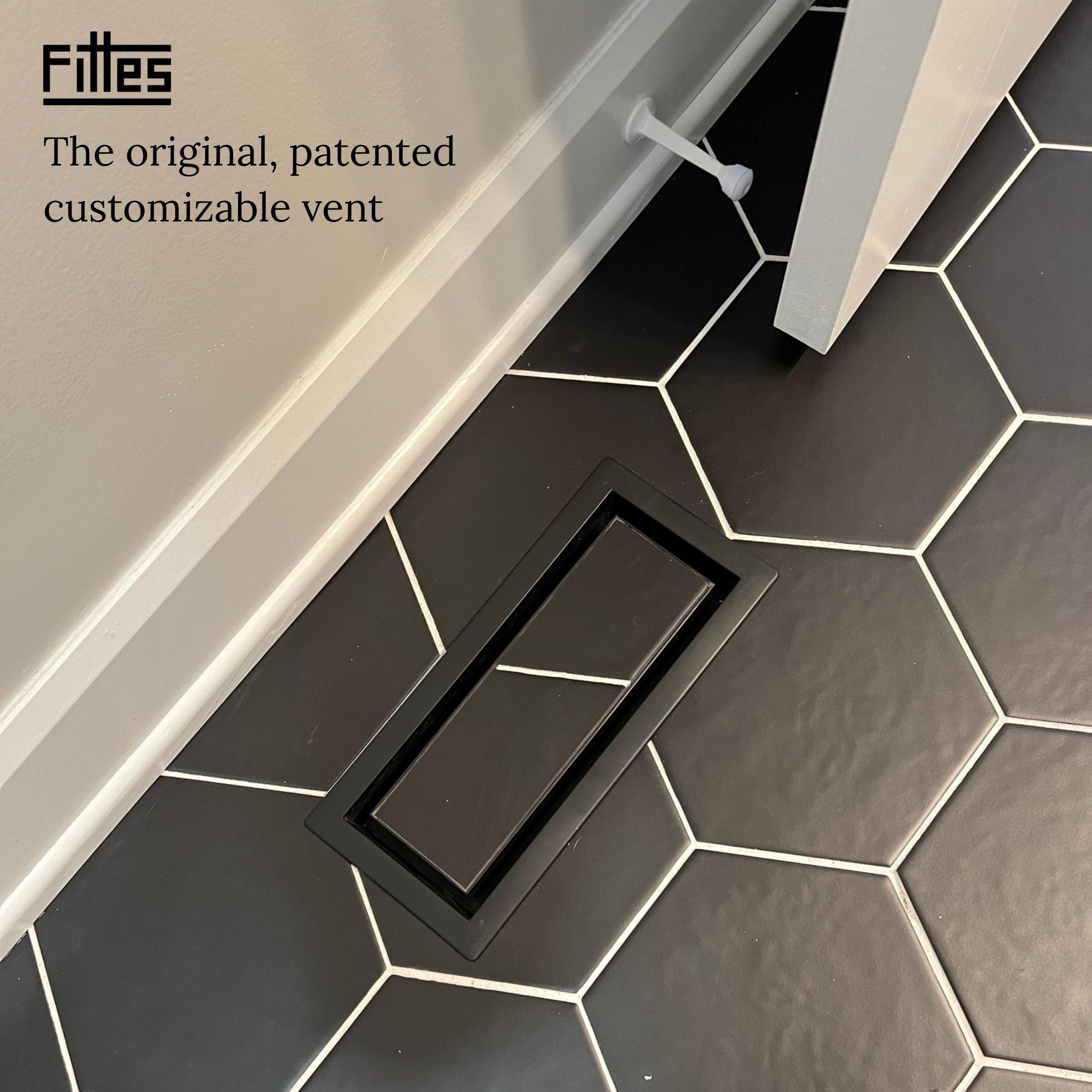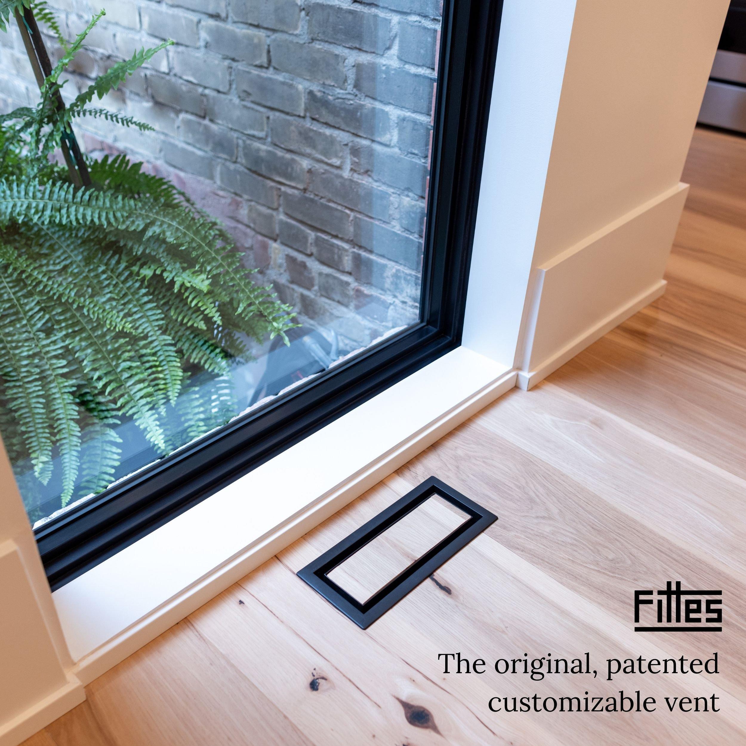 The Fittes 2in. x 12in. Frame Vent Matte Black can be used as a finishing touch to bring style to any flooring project. A floor register is used to control the air flow into rooms by redirecting limiting or stopping air flow. Measure the size of your duct opening to determine the correct size needed. Insert your new register into the duct opening. Adjust the damper control to direct air flow in the direction desired.