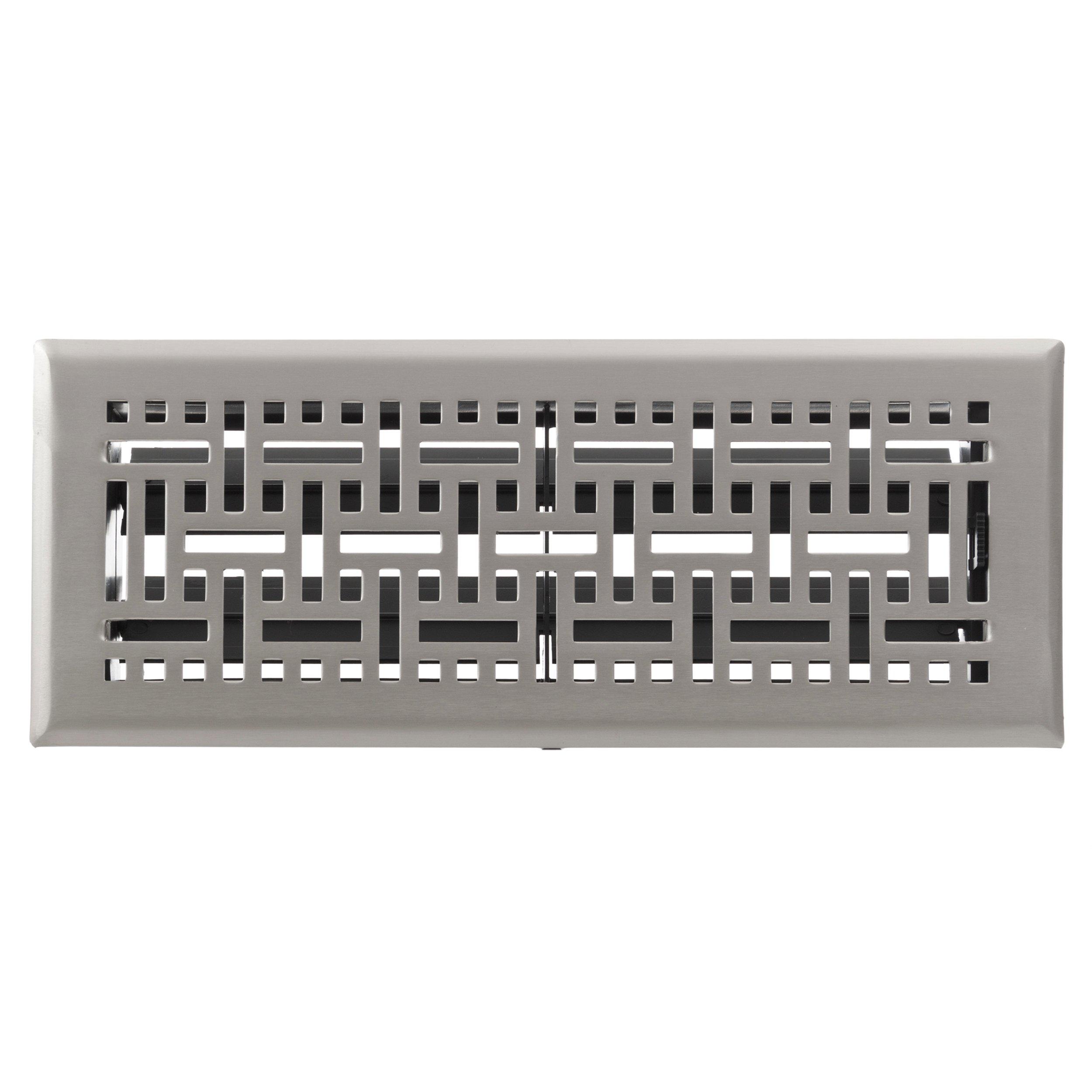 The Satin Nickel Wicker Floor Register can be used as a finishing touch to bring style to any flooring project. A floor register is used to control the air flow into rooms by redirecting limiting or stopping air flow. Measure the size of your duct opening to determine the correct size needed. Insert your new register into the duct opening. Adjust the damper control to direct air flow in the direction desired.