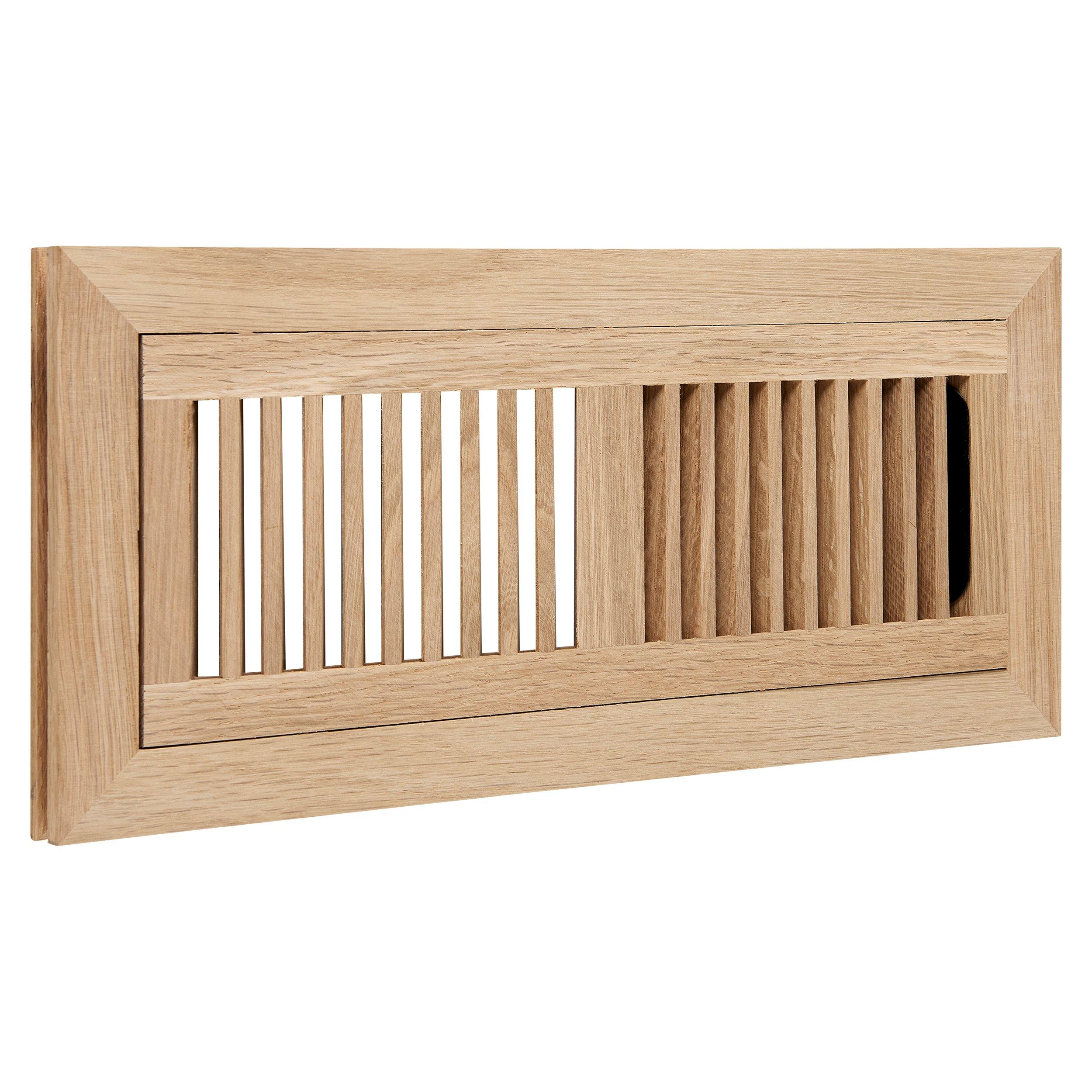 The Unfinished 4x12 White Oak Flush Mount with Damper can be used as a finishing touch to bring style to any flooring project. A floor register is used to control the air flow into rooms by redirecting limiting or stopping air flow. Measure the size of your duct opening to determine the correct size needed. Insert your new register into the duct opening. Adjust the damper control to direct air flow in the direction desired.