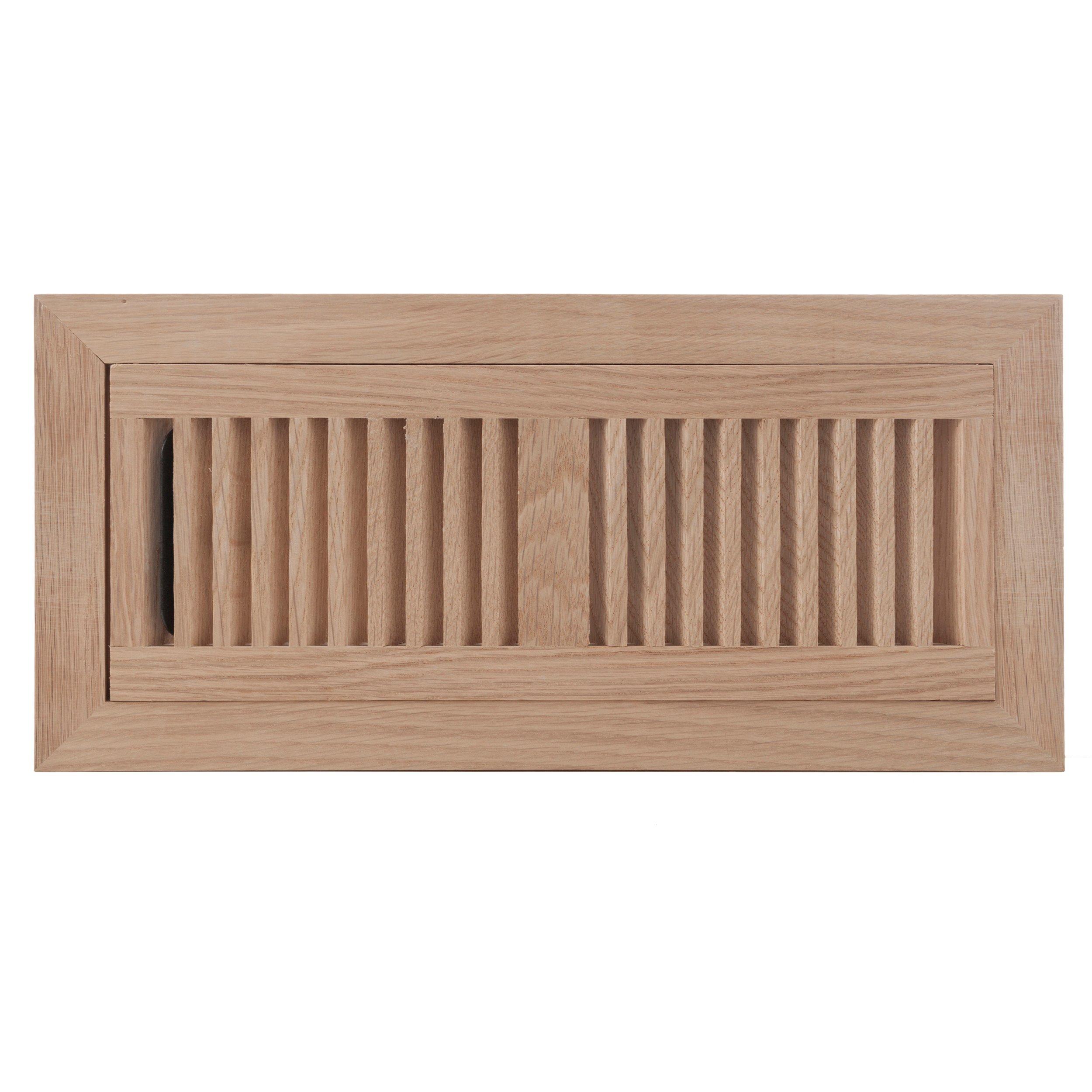 The White Oak Flush Mount Unfinished Floor Register can be used as a finishing touch to bring style to any flooring project. A floor register is used to control the air flow into rooms by redirecting limiting or stopping air flow. Measure the size of your duct opening to determine the correct size needed. Insert your new register into the duct opening. Adjust the damper control to direct air flow in the direction desired.
