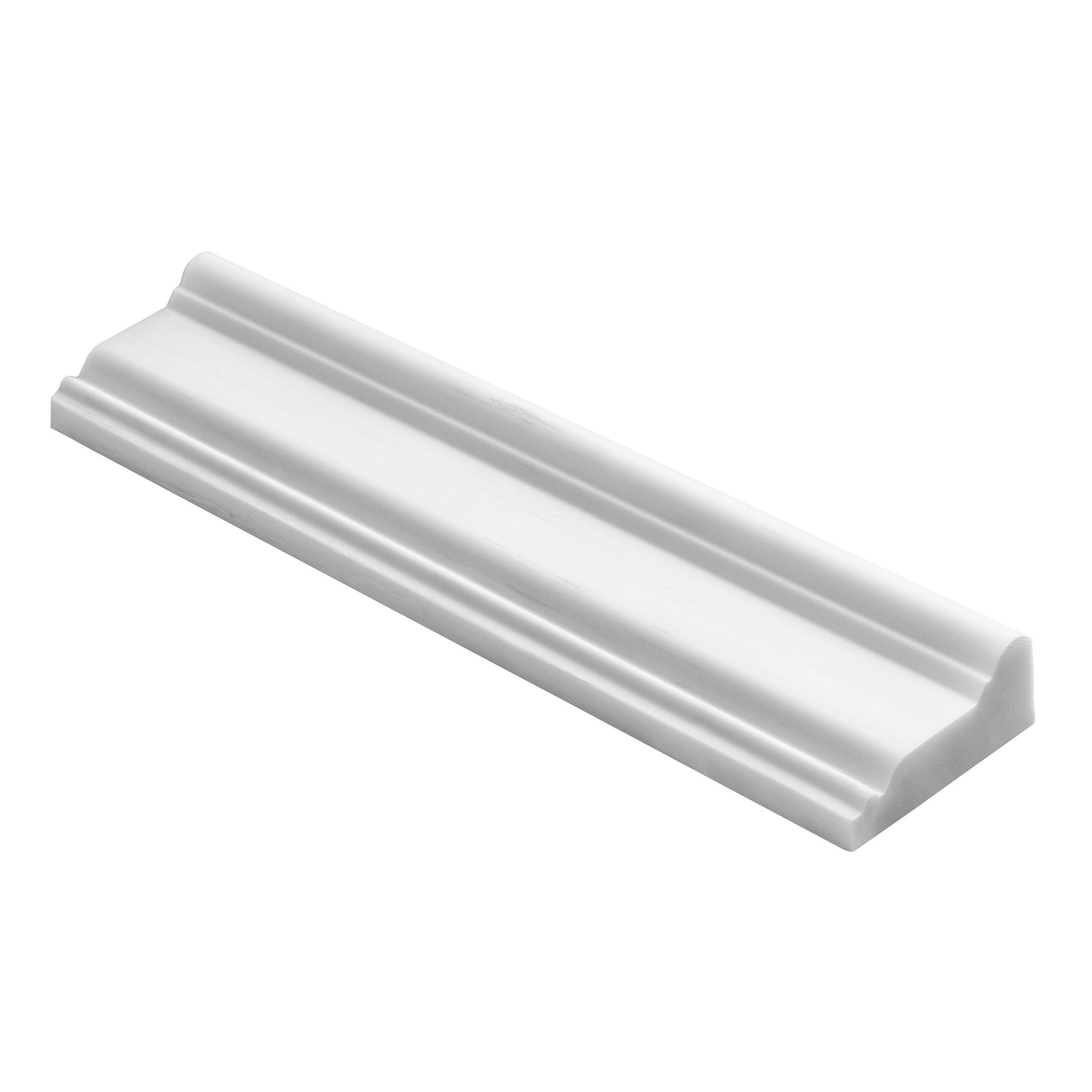 This 2 1/2 x 12 Dolomite Marble Chair Rail in white reflects light and adds depth, and has a polished finish.