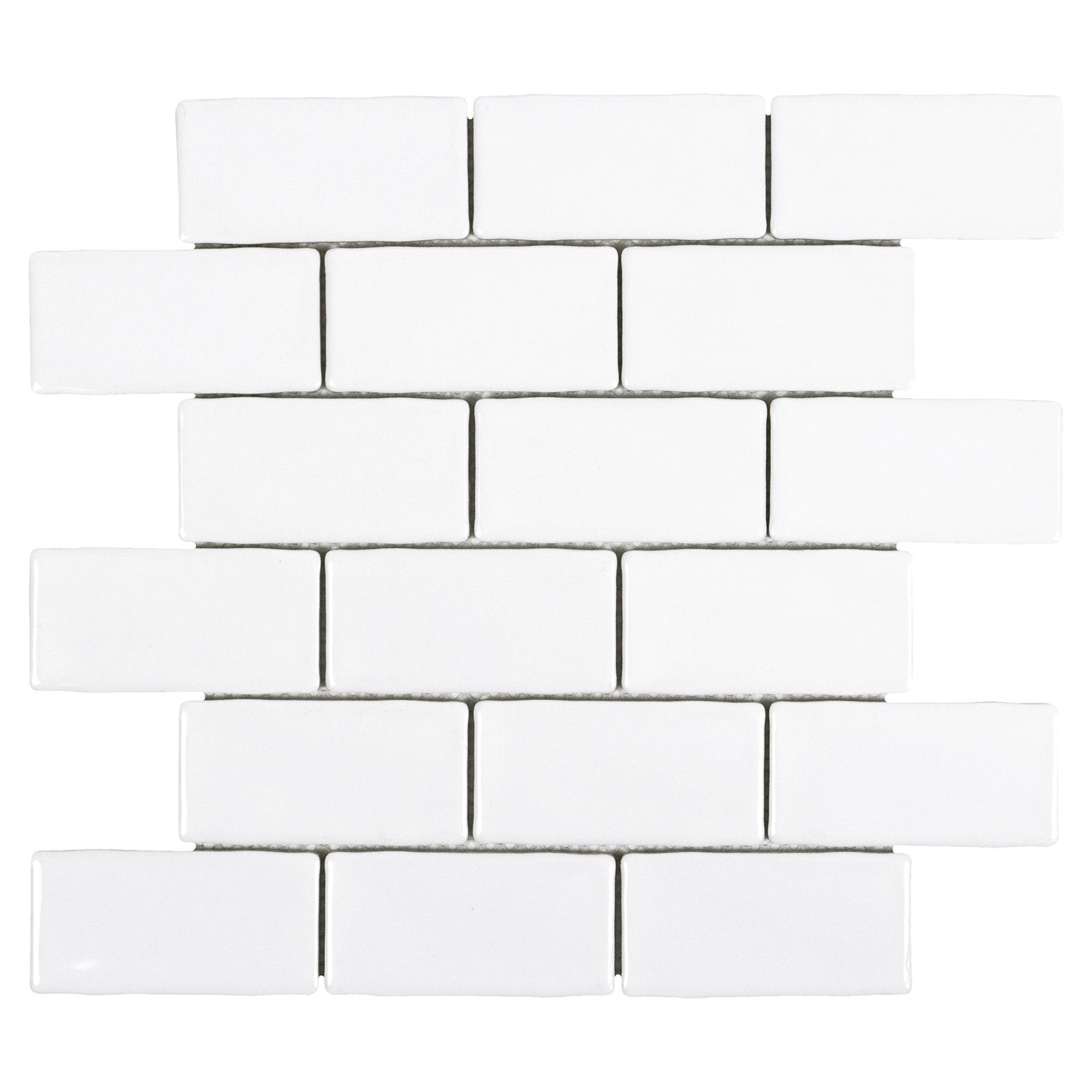 Personalize your space with the 12 x 12 Frost Brick Ceramic Mosaic. This white polished or high gloss finish tile will make a great impact in small areas like the bathroom, den, or other overlooked spaces.