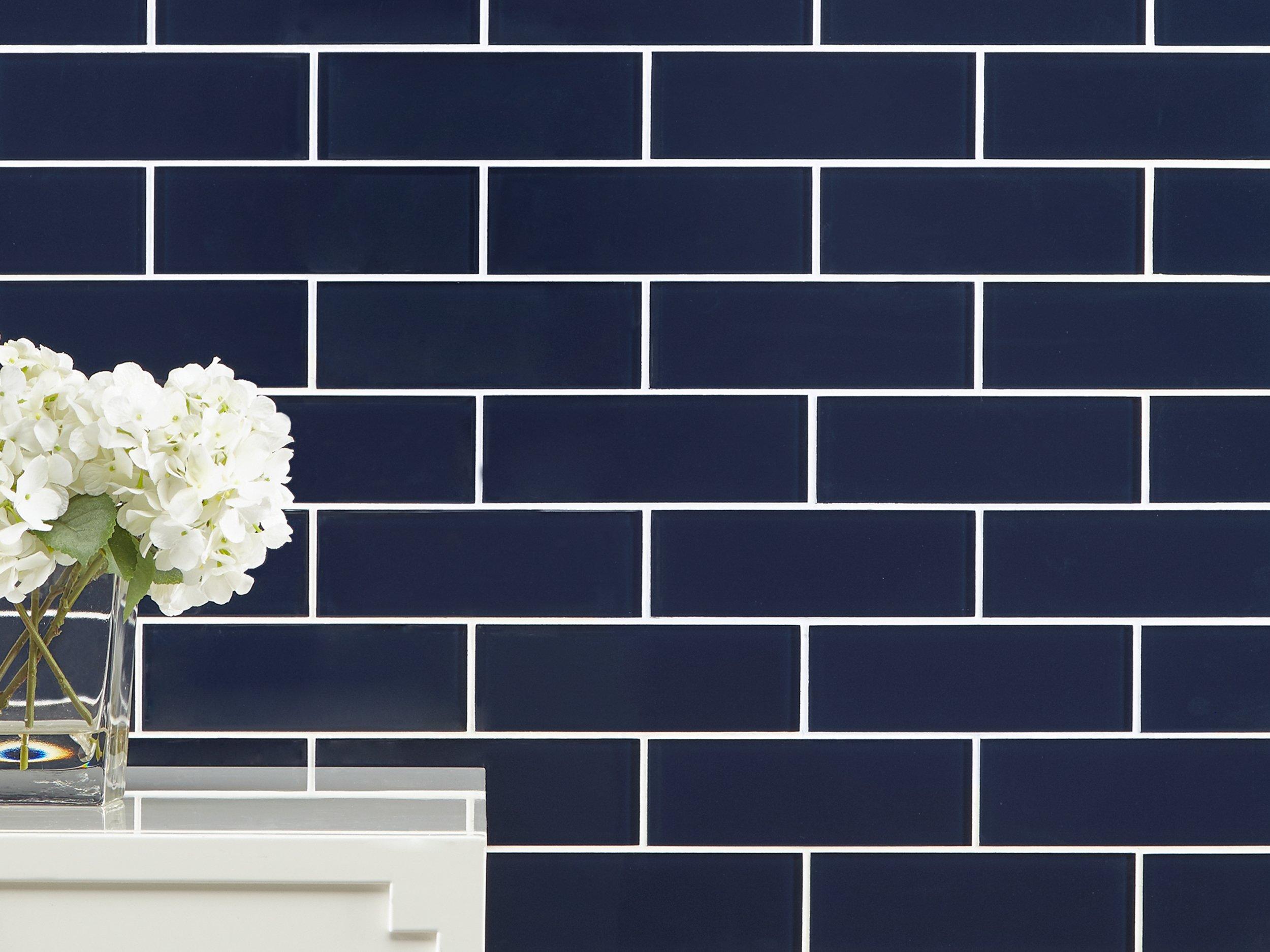 Add an accent to your design with this 3 x 9 rectangle Admiral Glass Tile. The blue color will enhance any space.