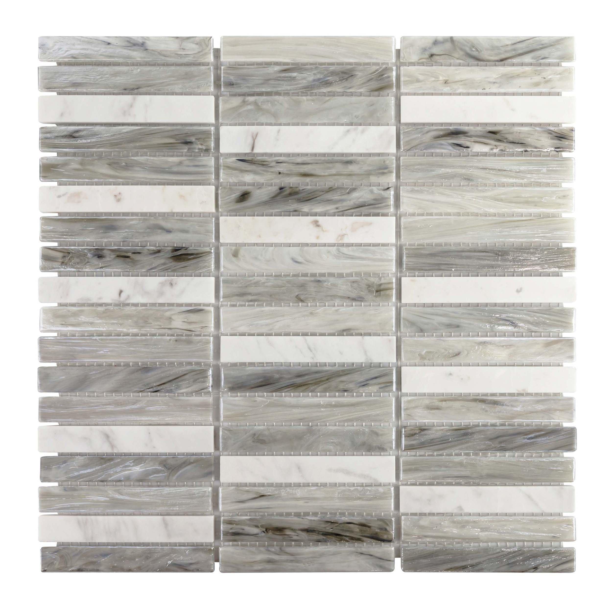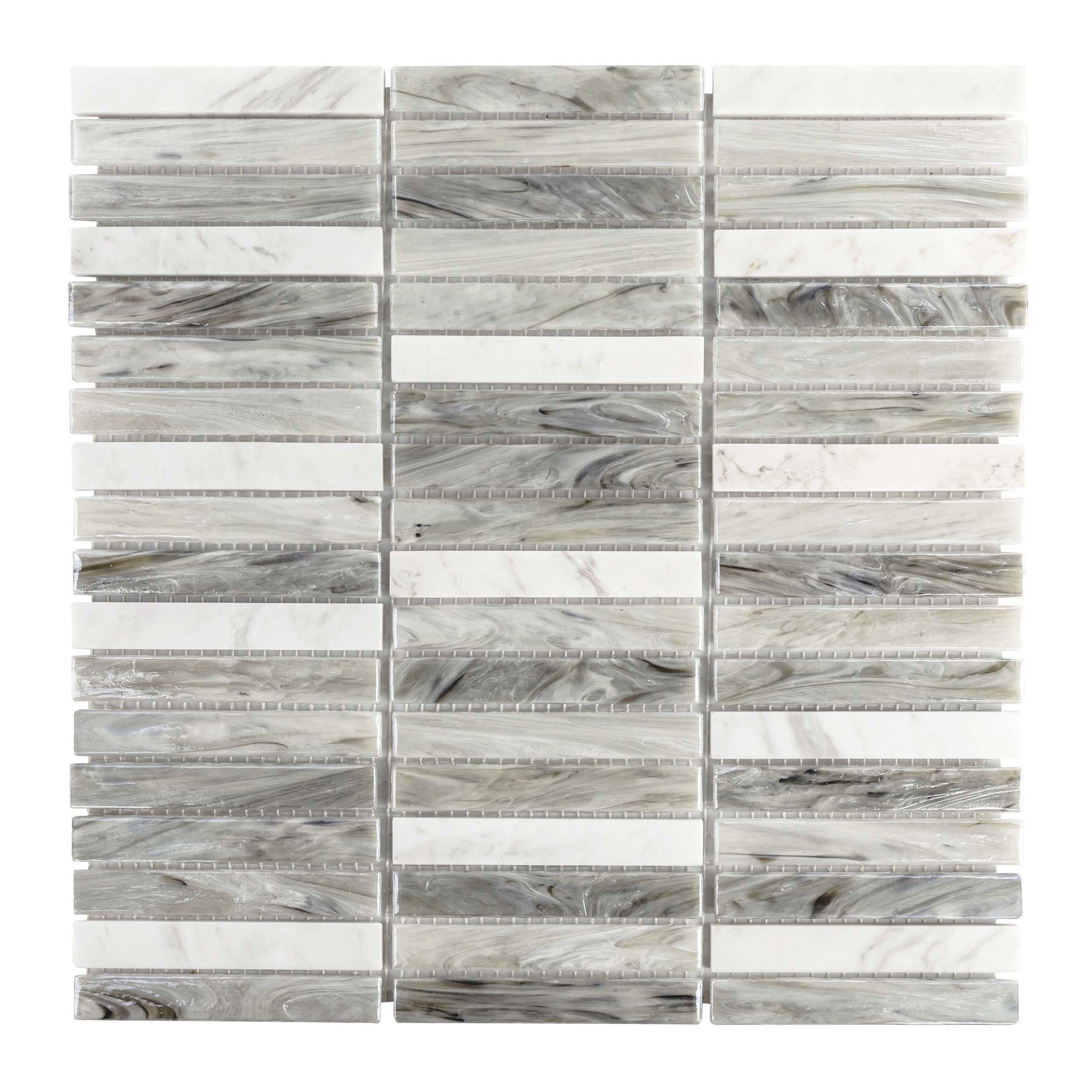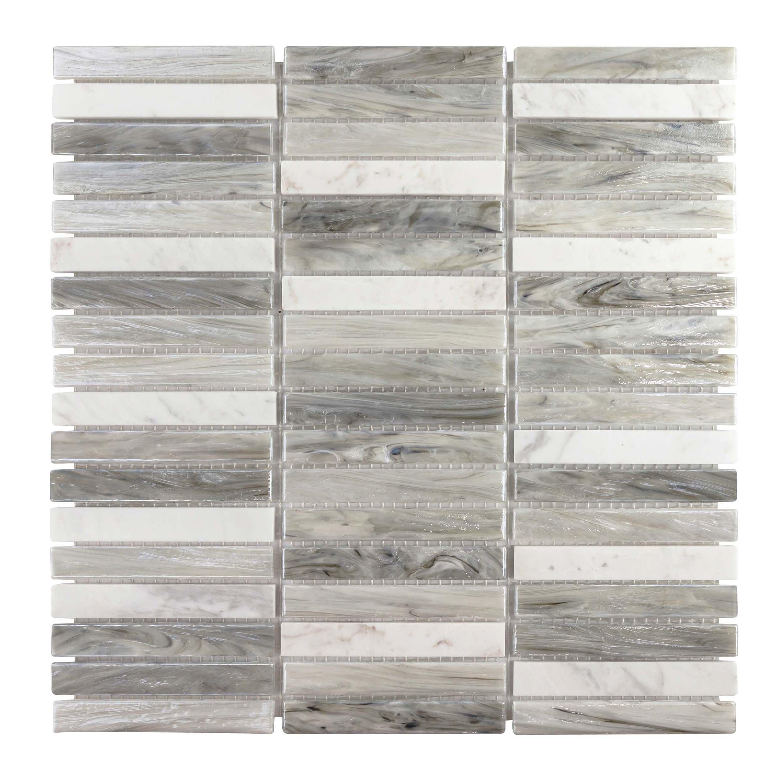 Add an accent to your design with this 12 x 12 stack Iridessa Stack Glass Mosaic. The white color will enhance any space.