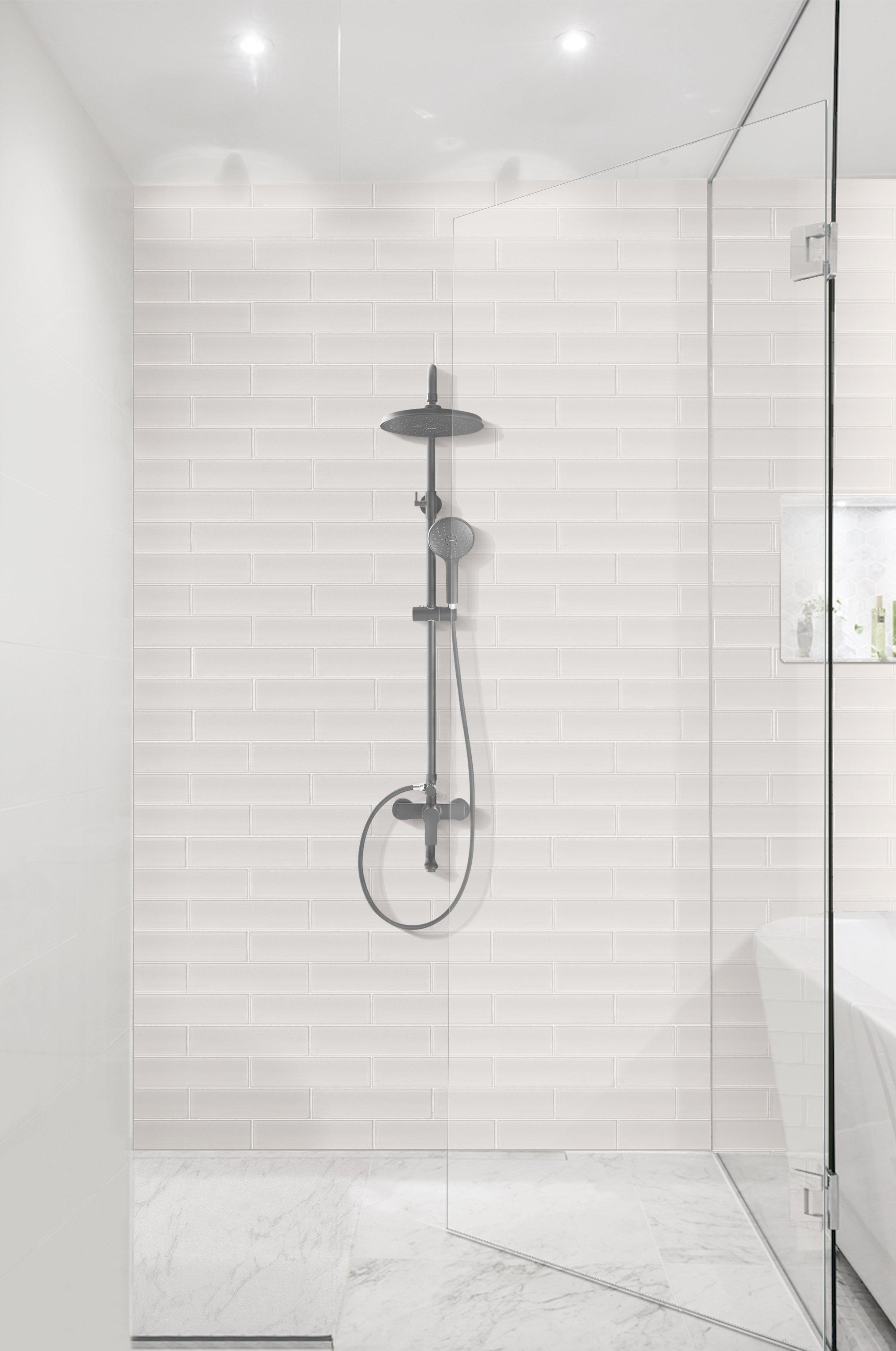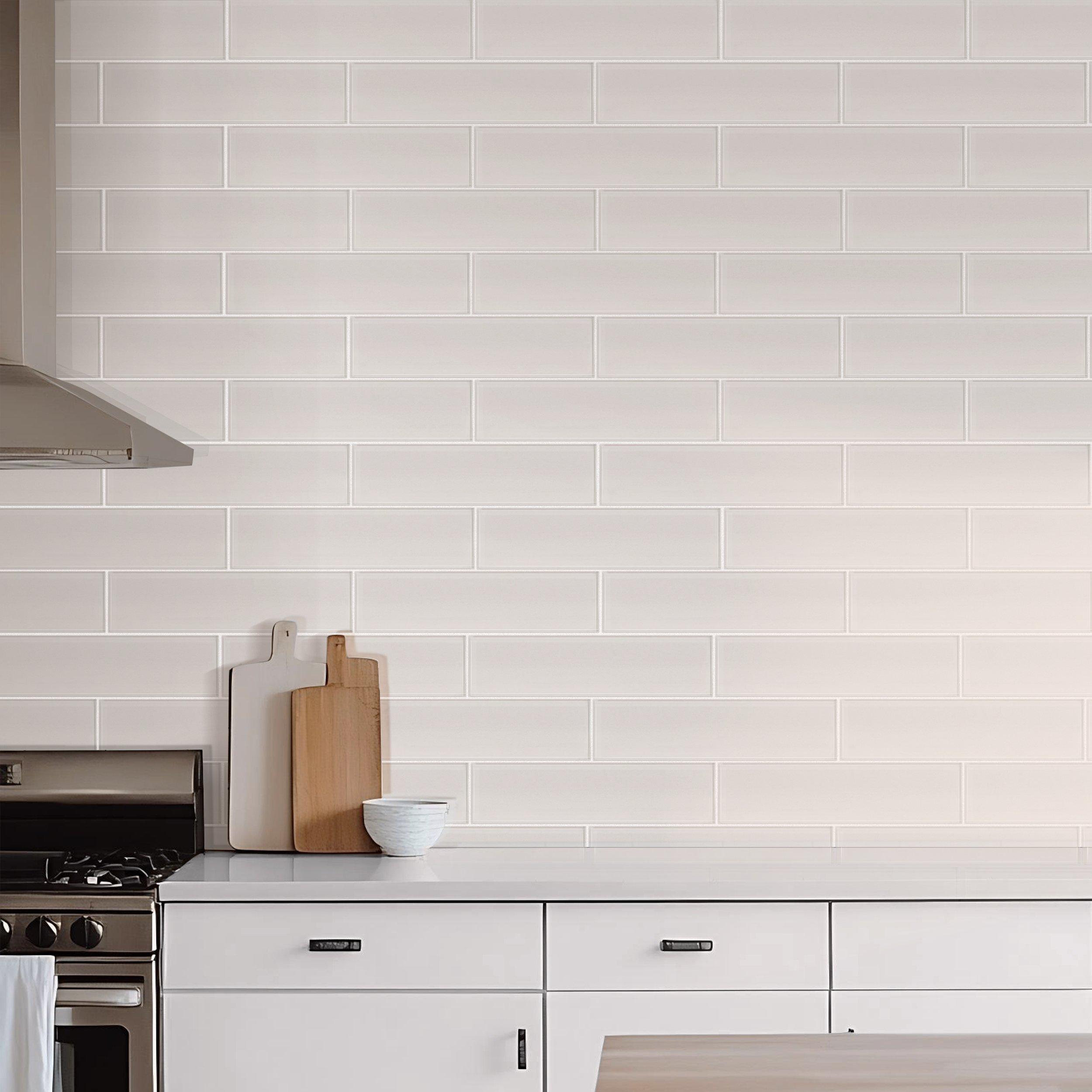 Add an accent to your design with this 3 x 12 rectangle Pure Glass Ivory Tile. The natural color will enhance any space.