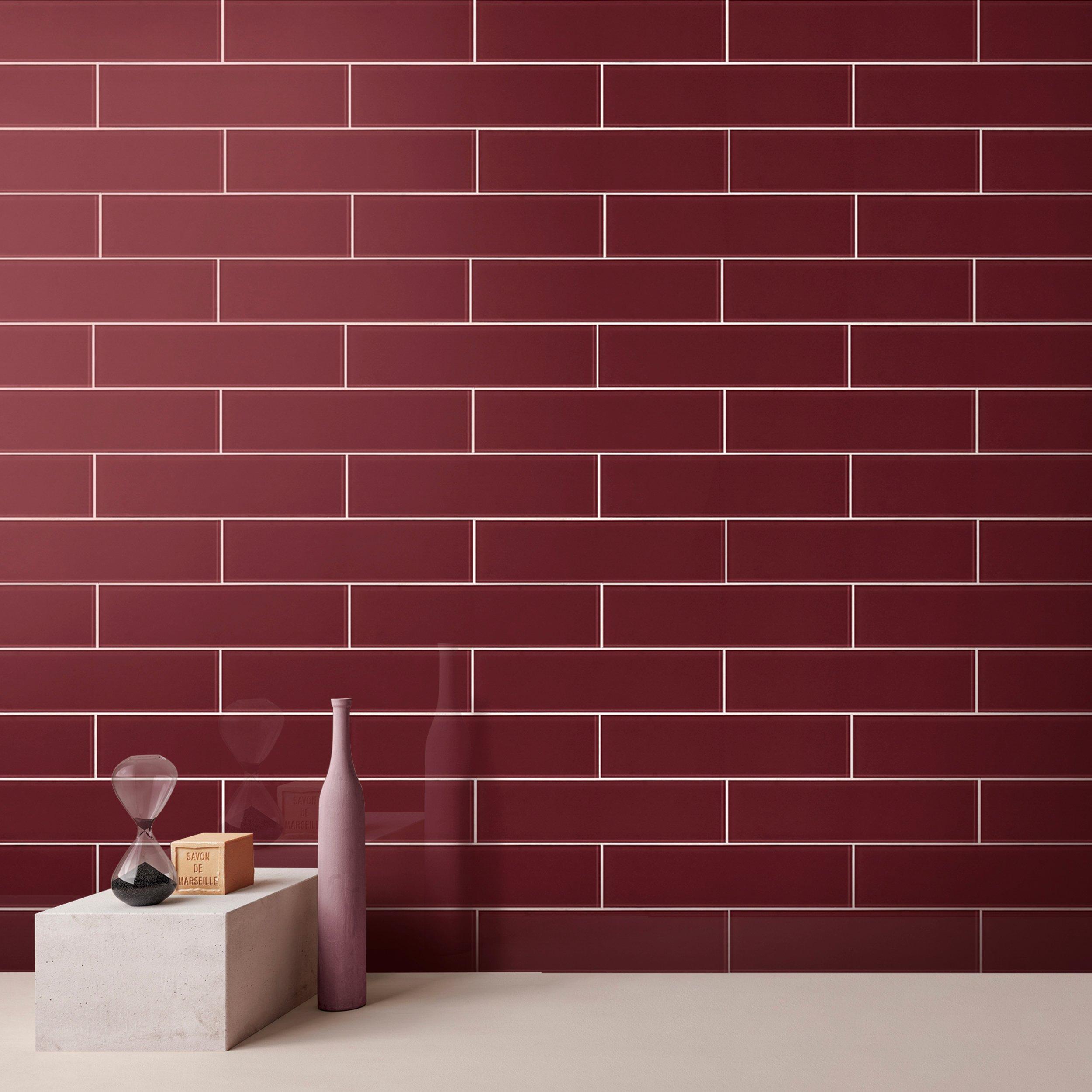 Add an accent to your design with this 3 x 12 rectangle Pure Glass Raspberry Tile. The red/ pink color will enhance any space.