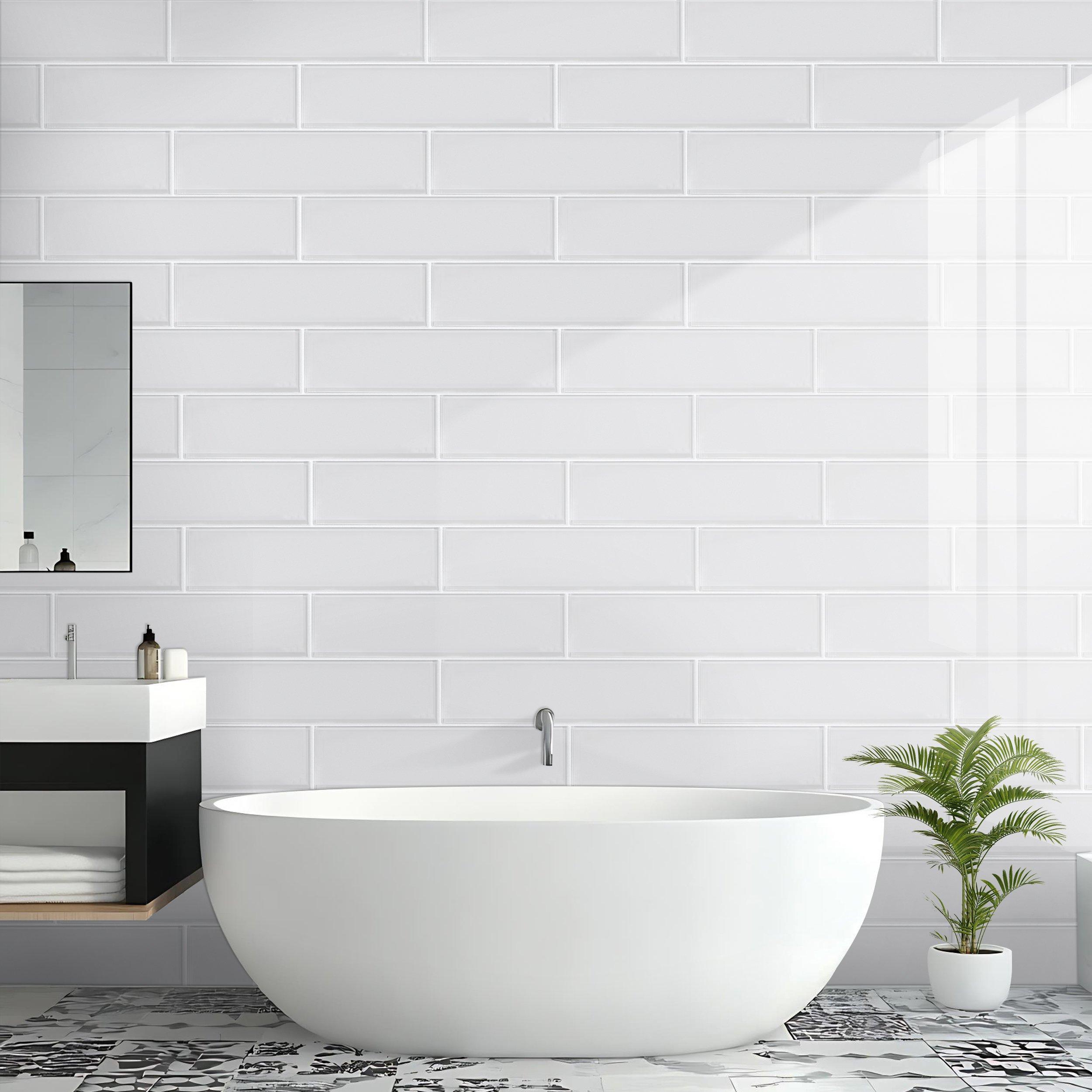 Liven up any room with this rectangle 3 x 12 Pure Glass Snow Tile in white.