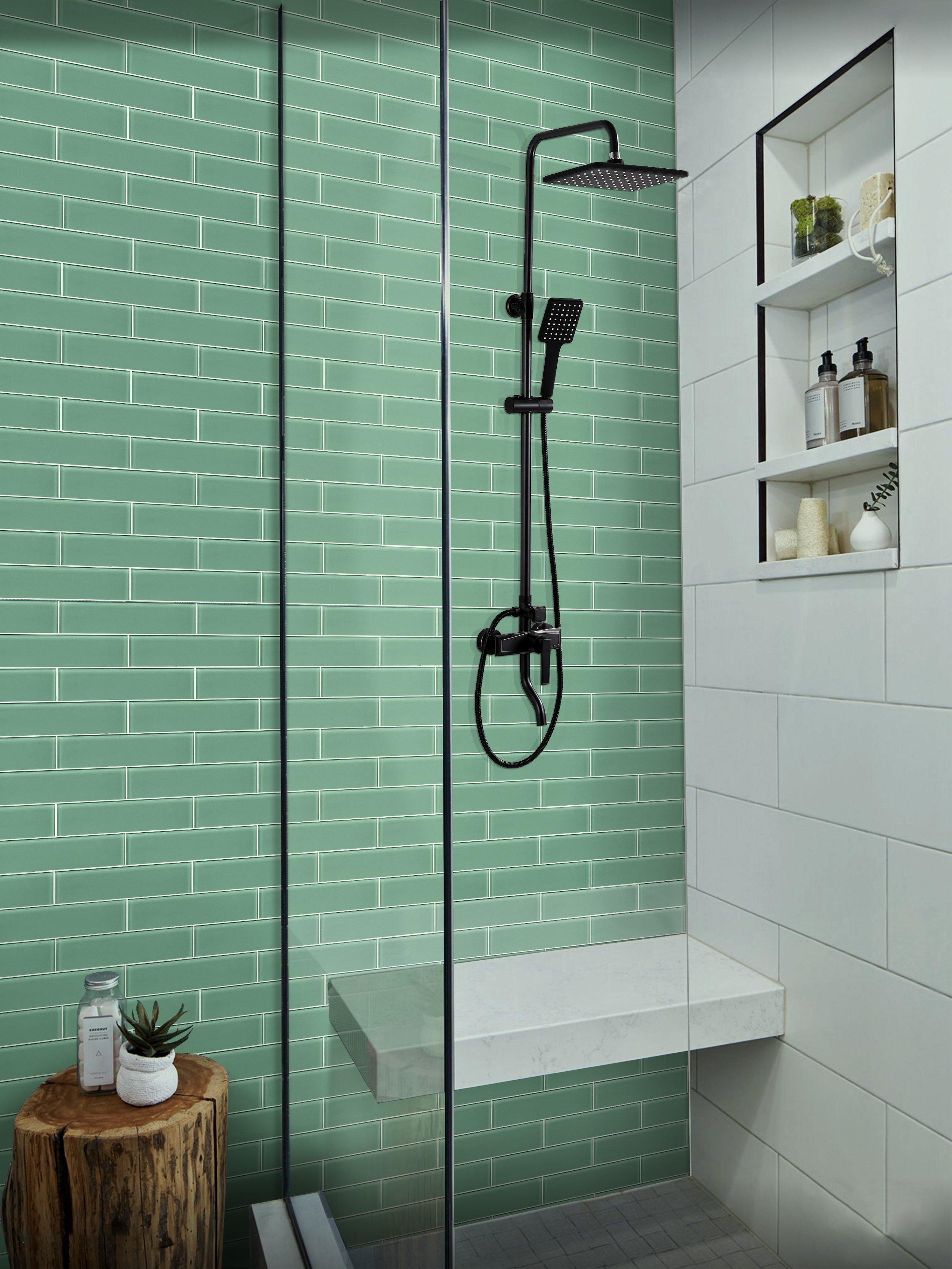 Liven up any room with this rectangle 3 x 12 Pure Seafoam Glass Tile in green.