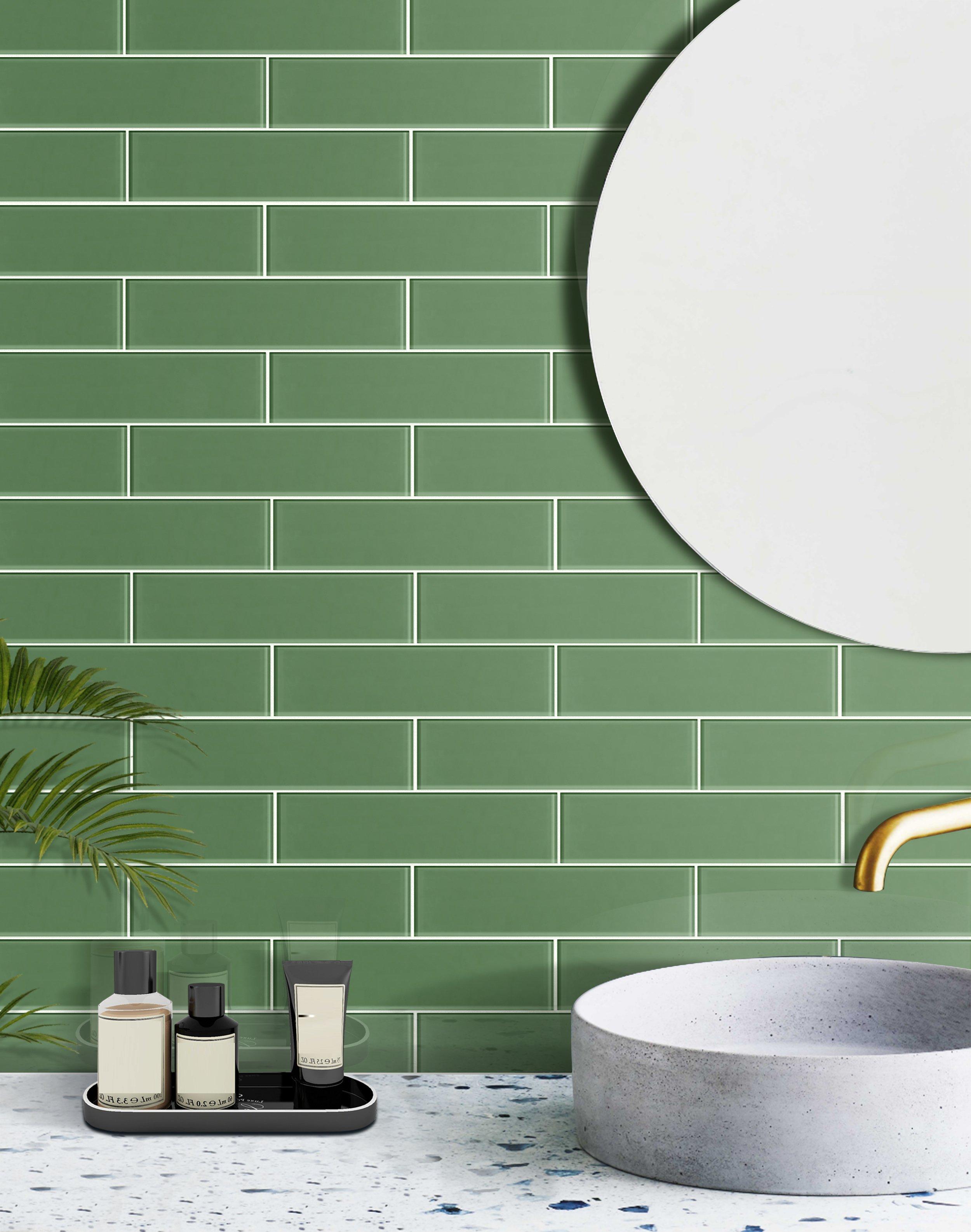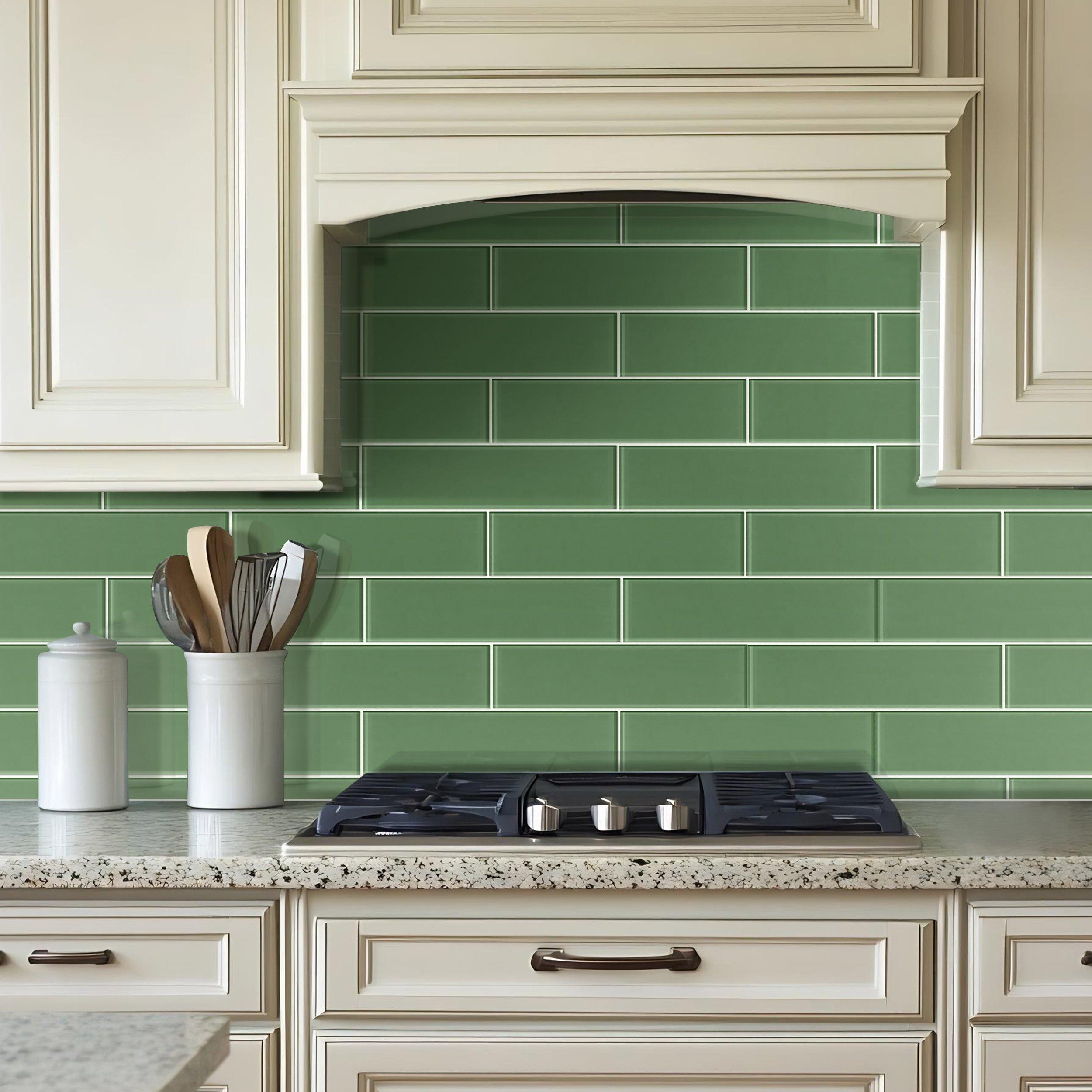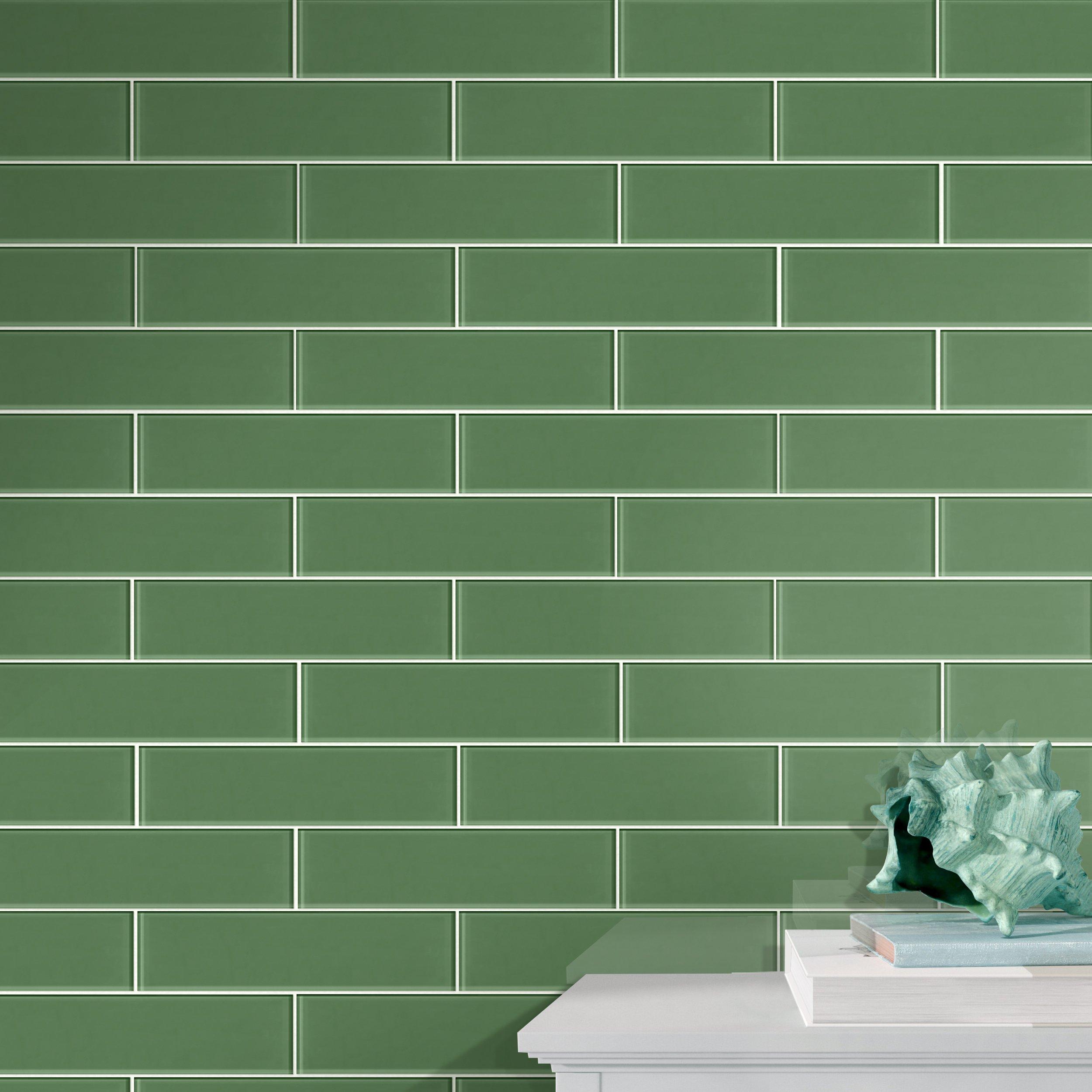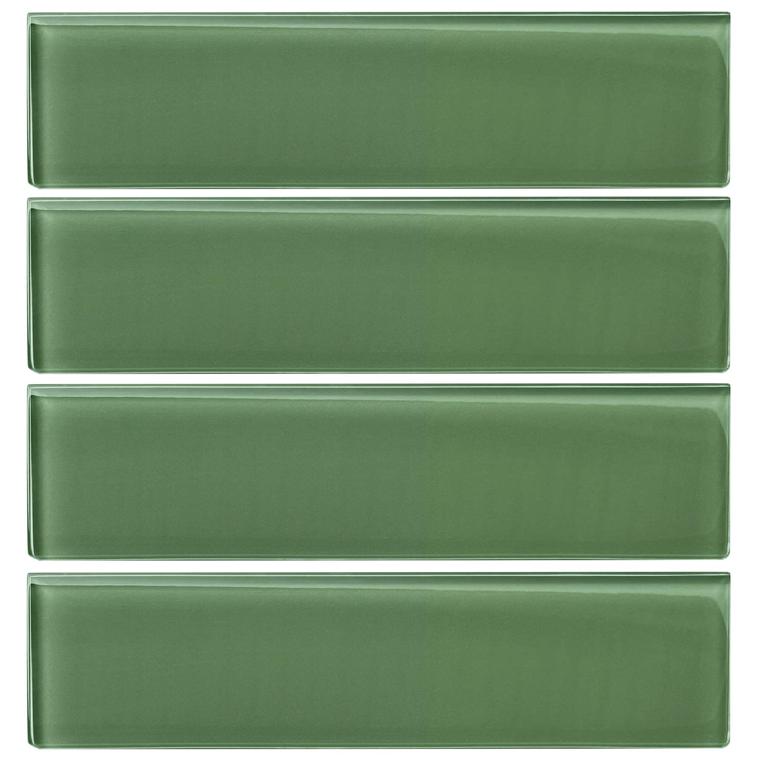 Add an accent to your design with this 3 x 12 rectangle Pure Thyme Glass Tile. The green color will enhance any space.