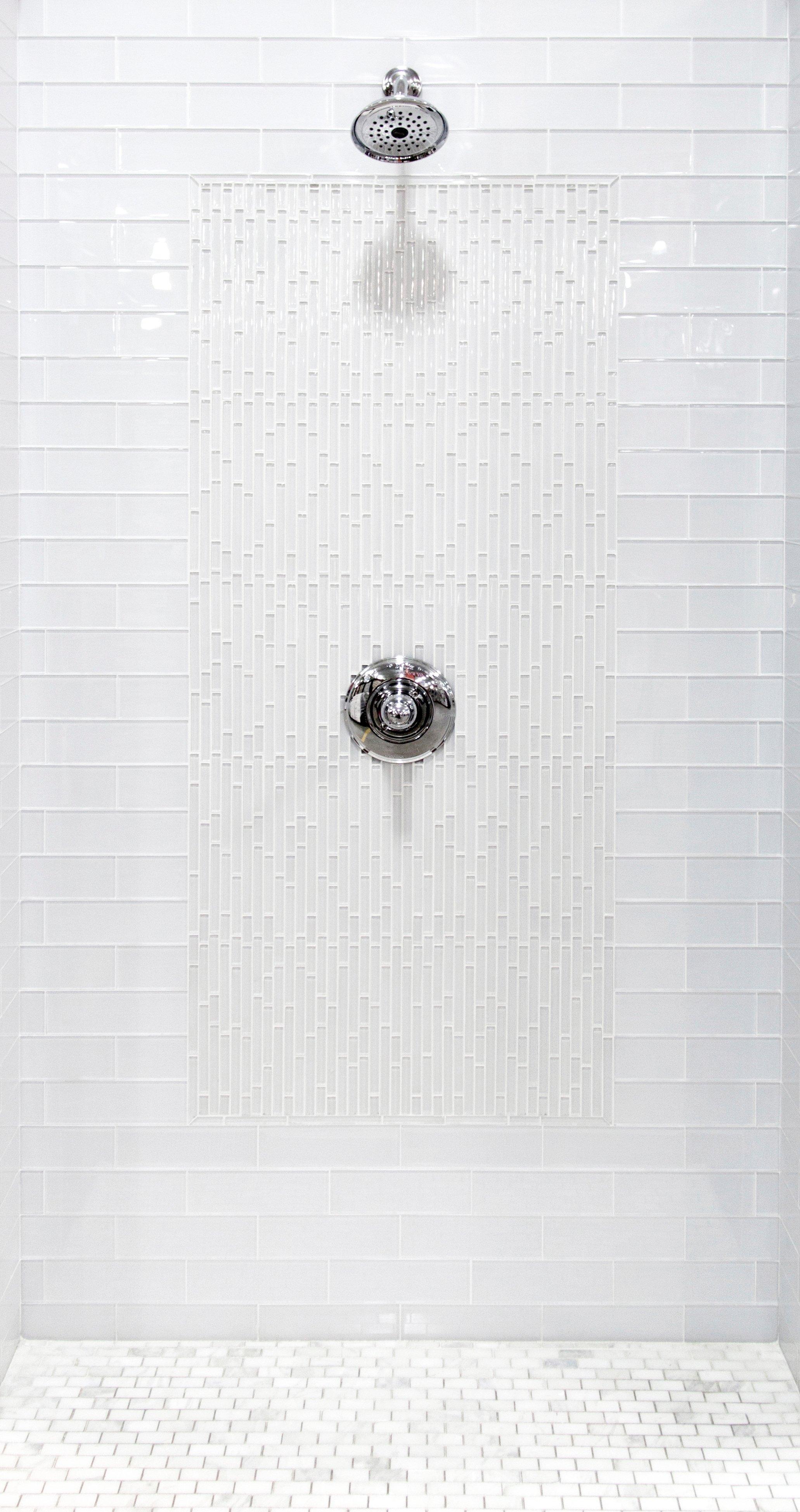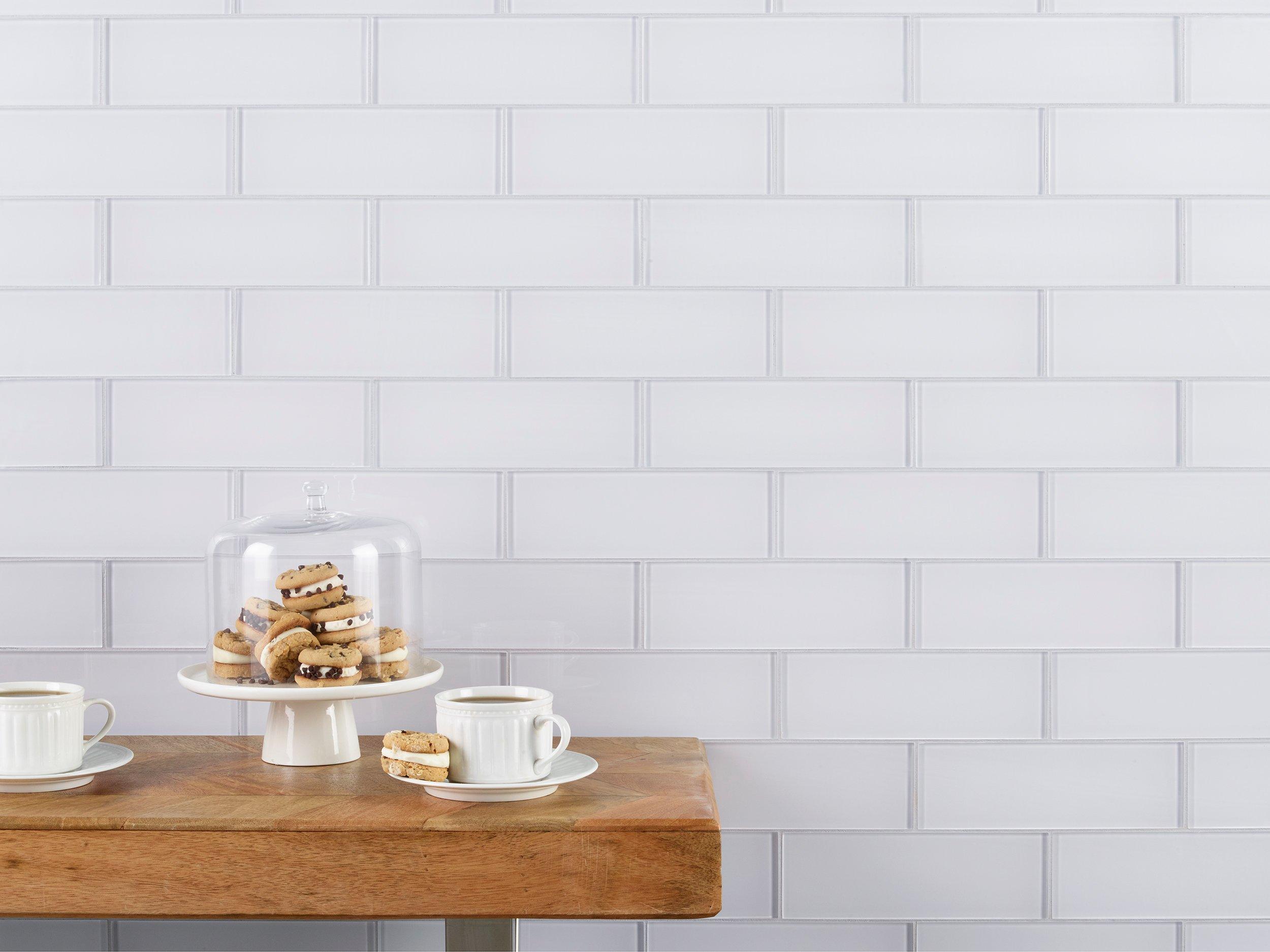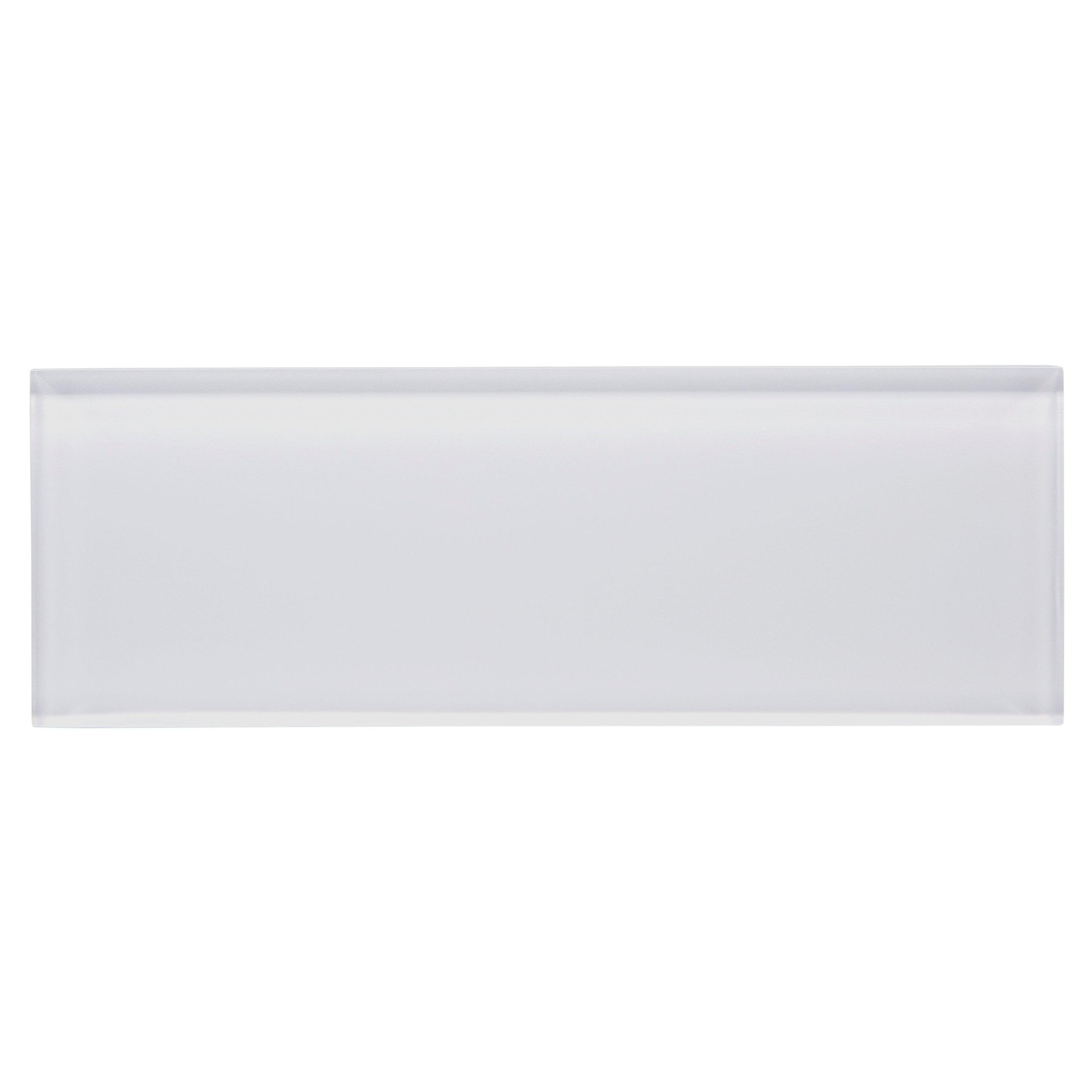 Add an accent to your design with this 3 x 9 rectangle Snow Glass Tile. The white color will enhance any space.