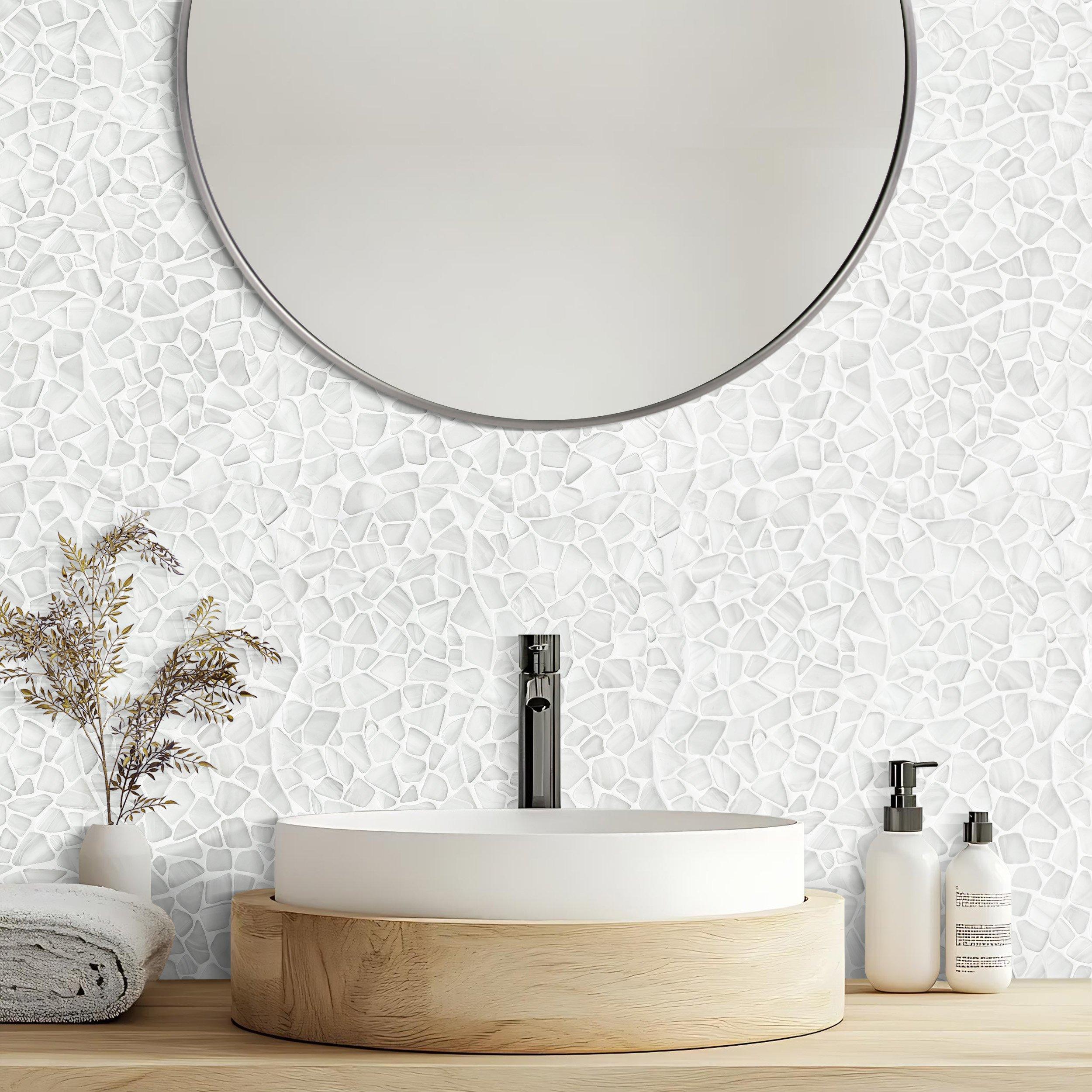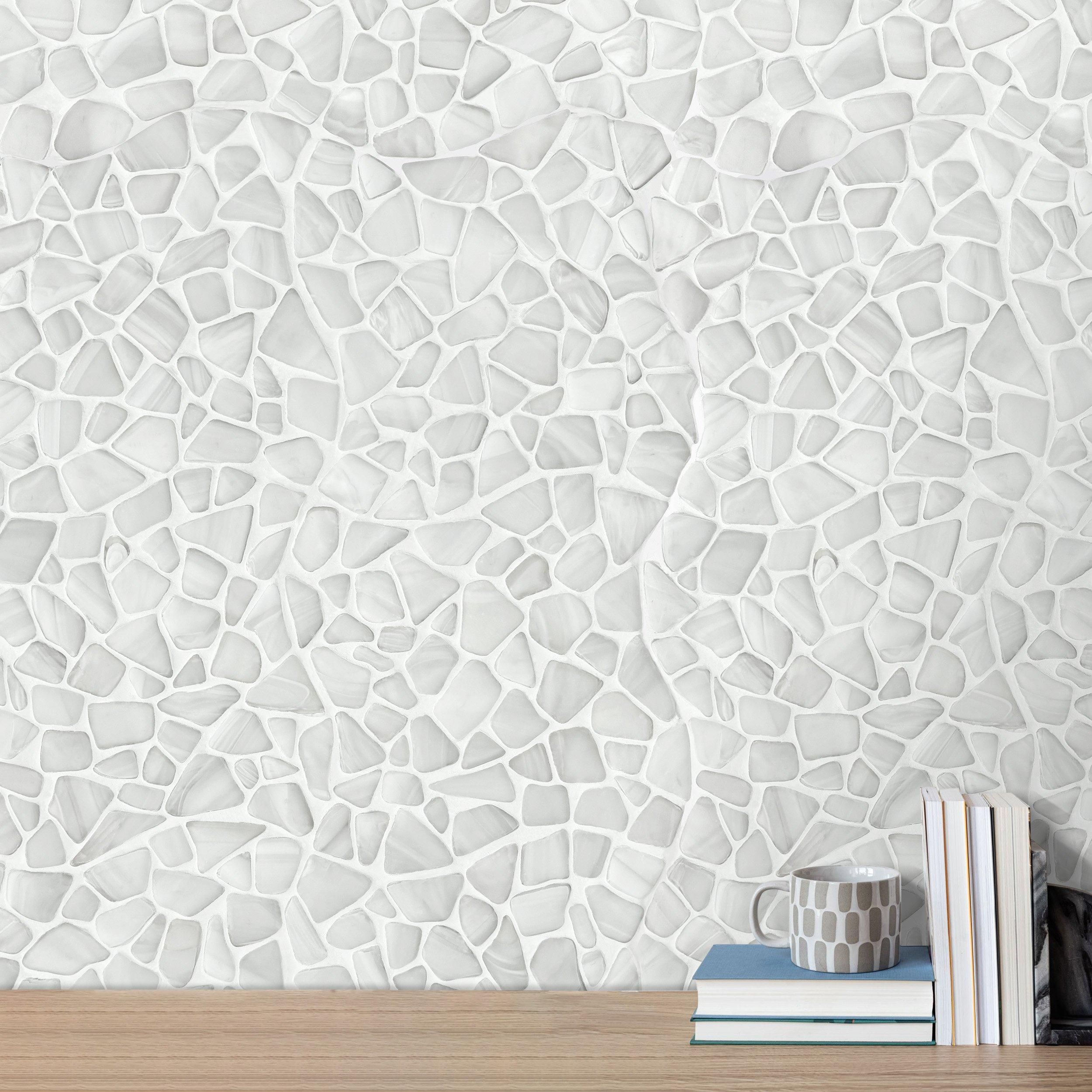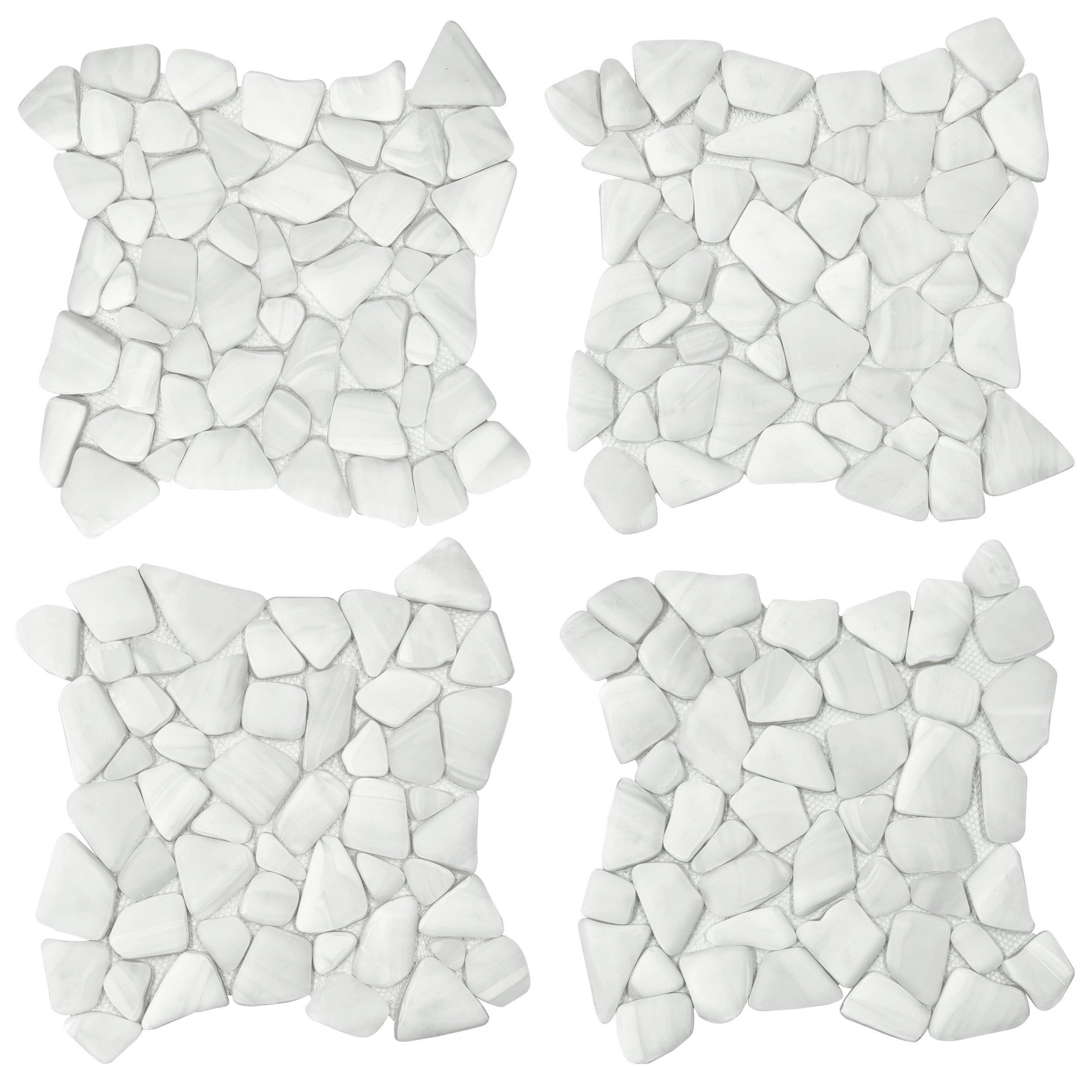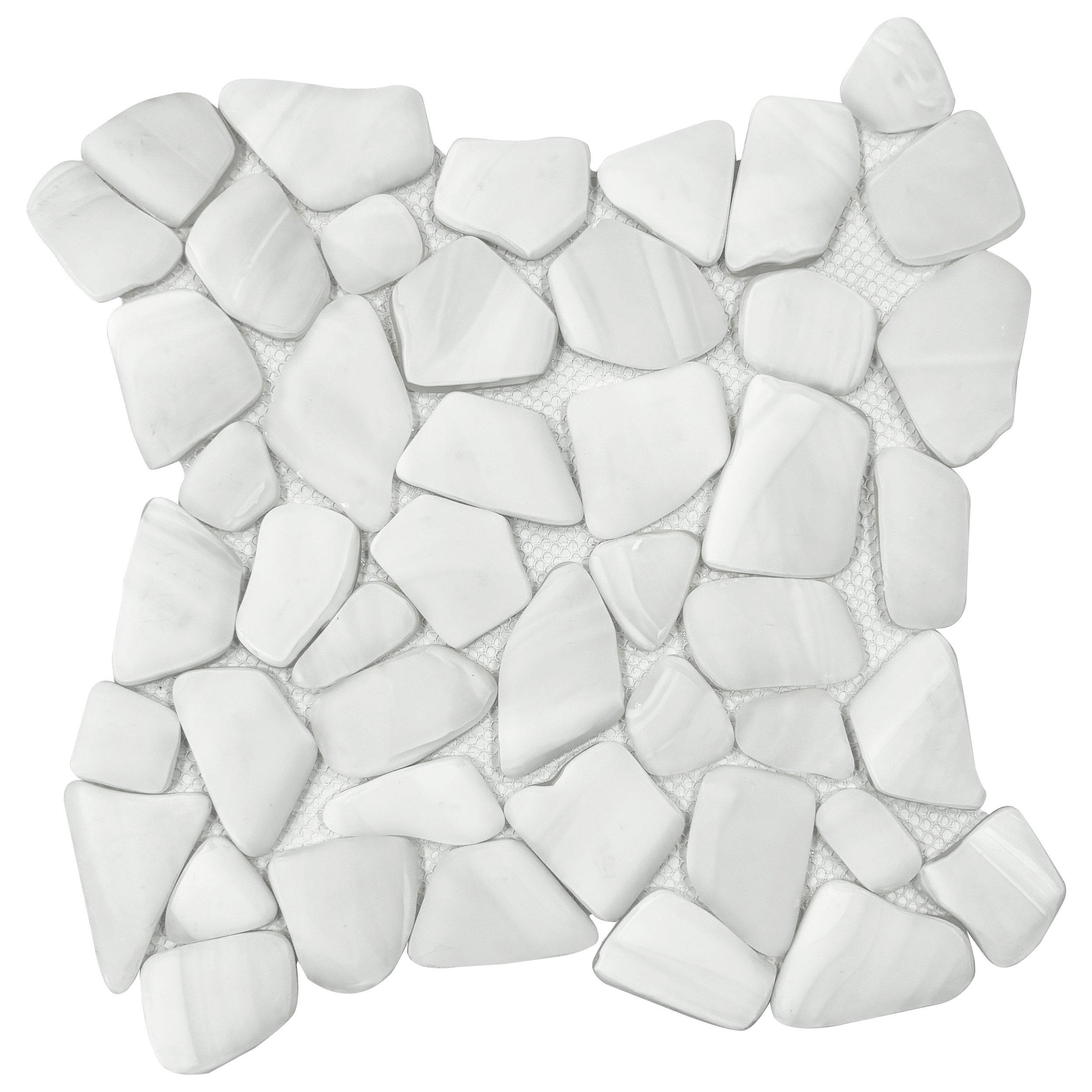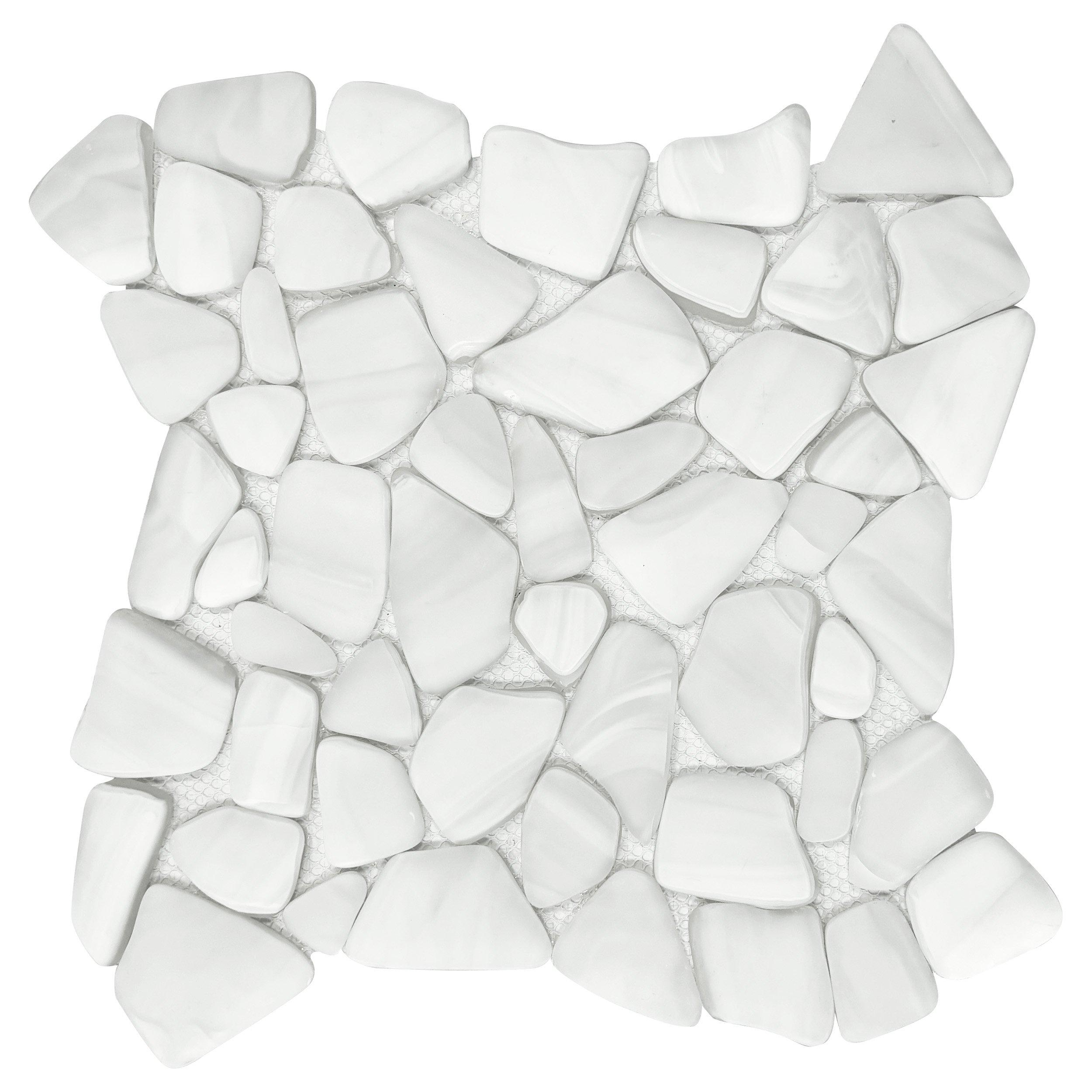 Refresh your home's design with this 12 x 12 pebble Bora Bora Pebble Frosted Glass Mosaic in white.