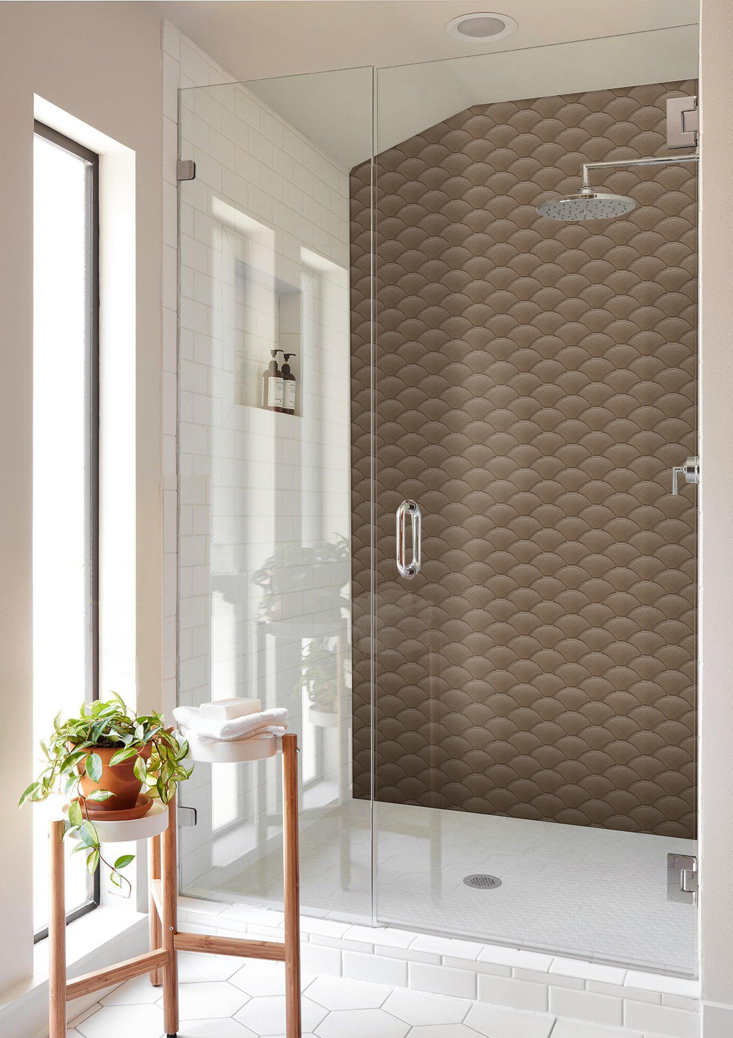 Add an accent to your design with this 12 x 13 fan Bronze Glass Recycled Fan Polished Mosaic. The brown color will enhance any space.