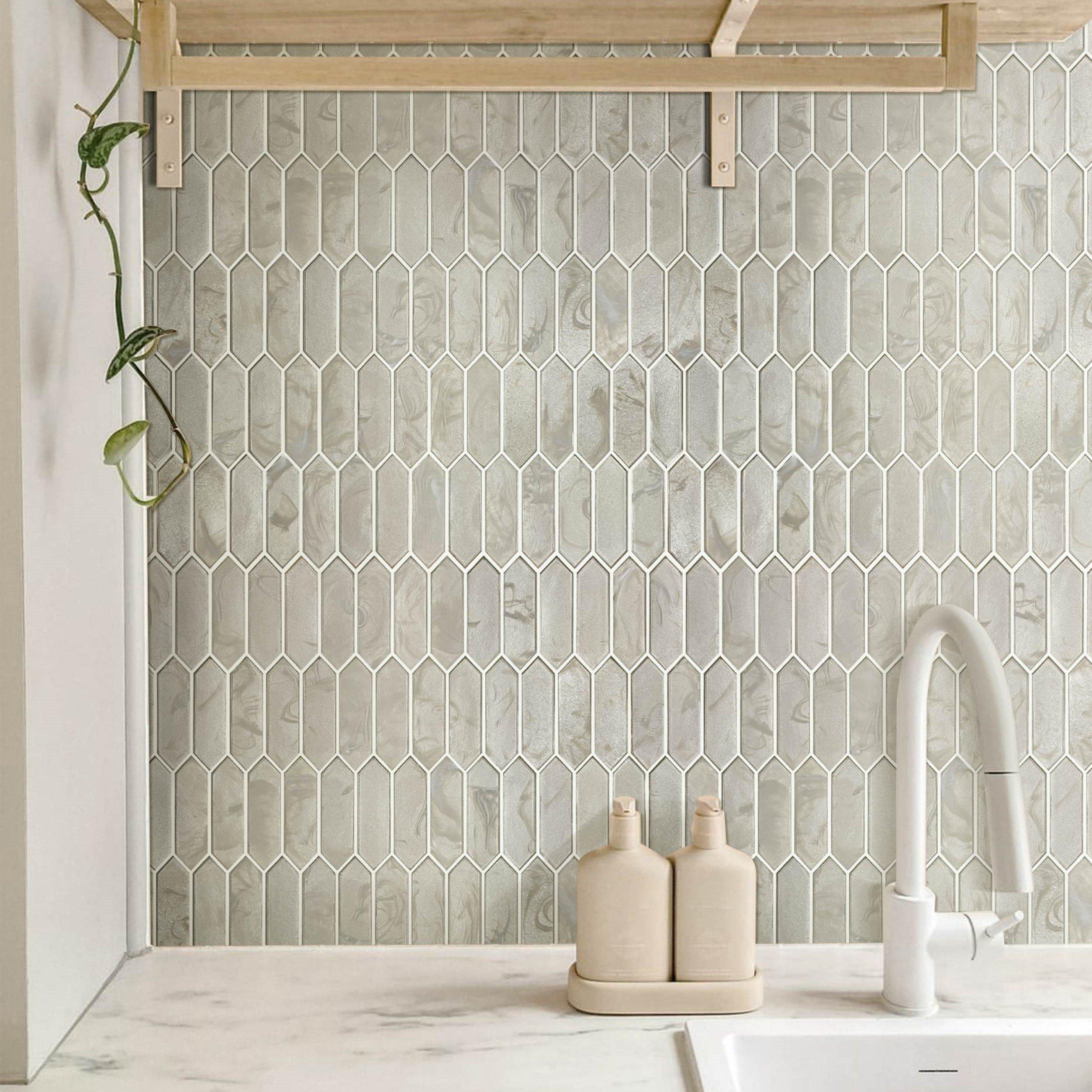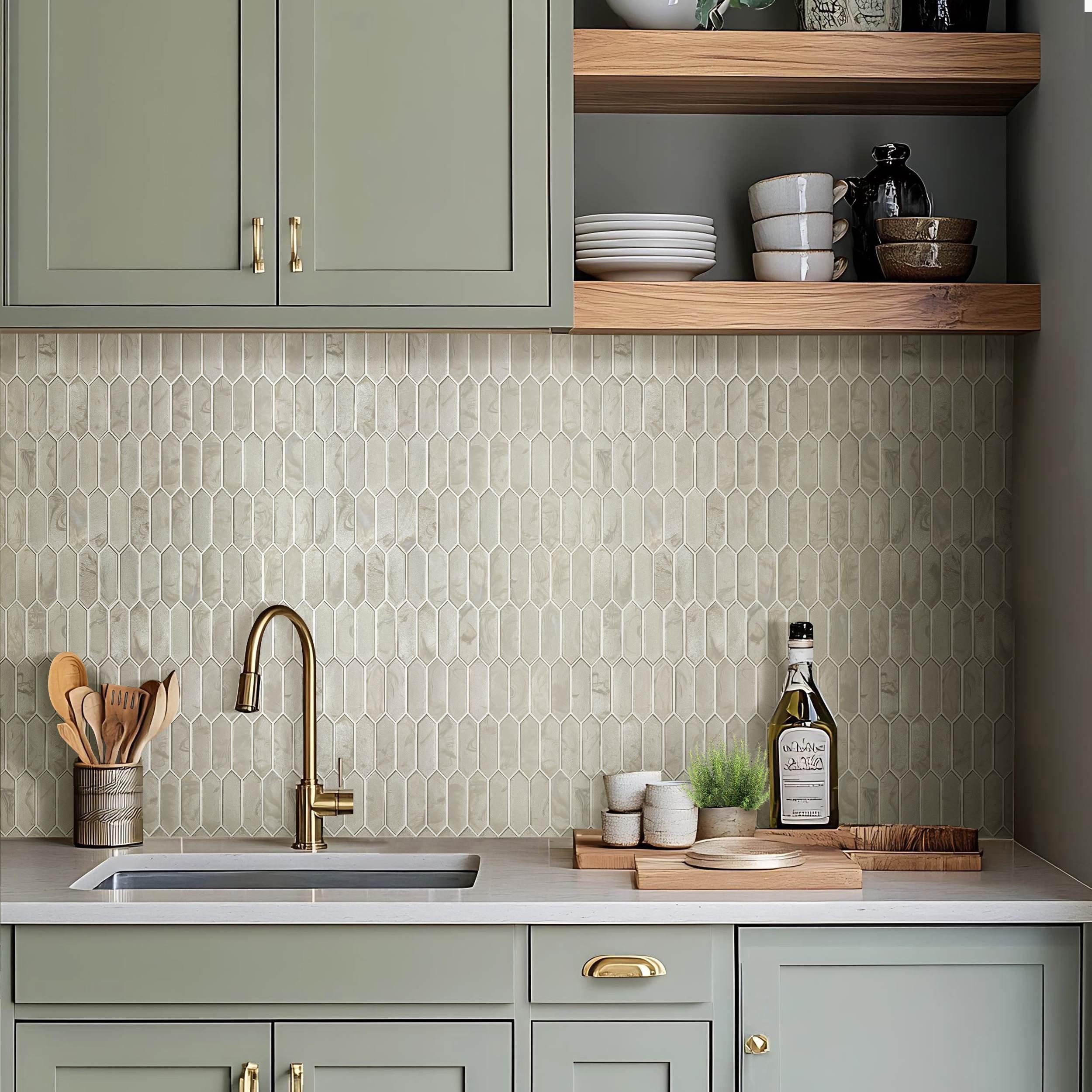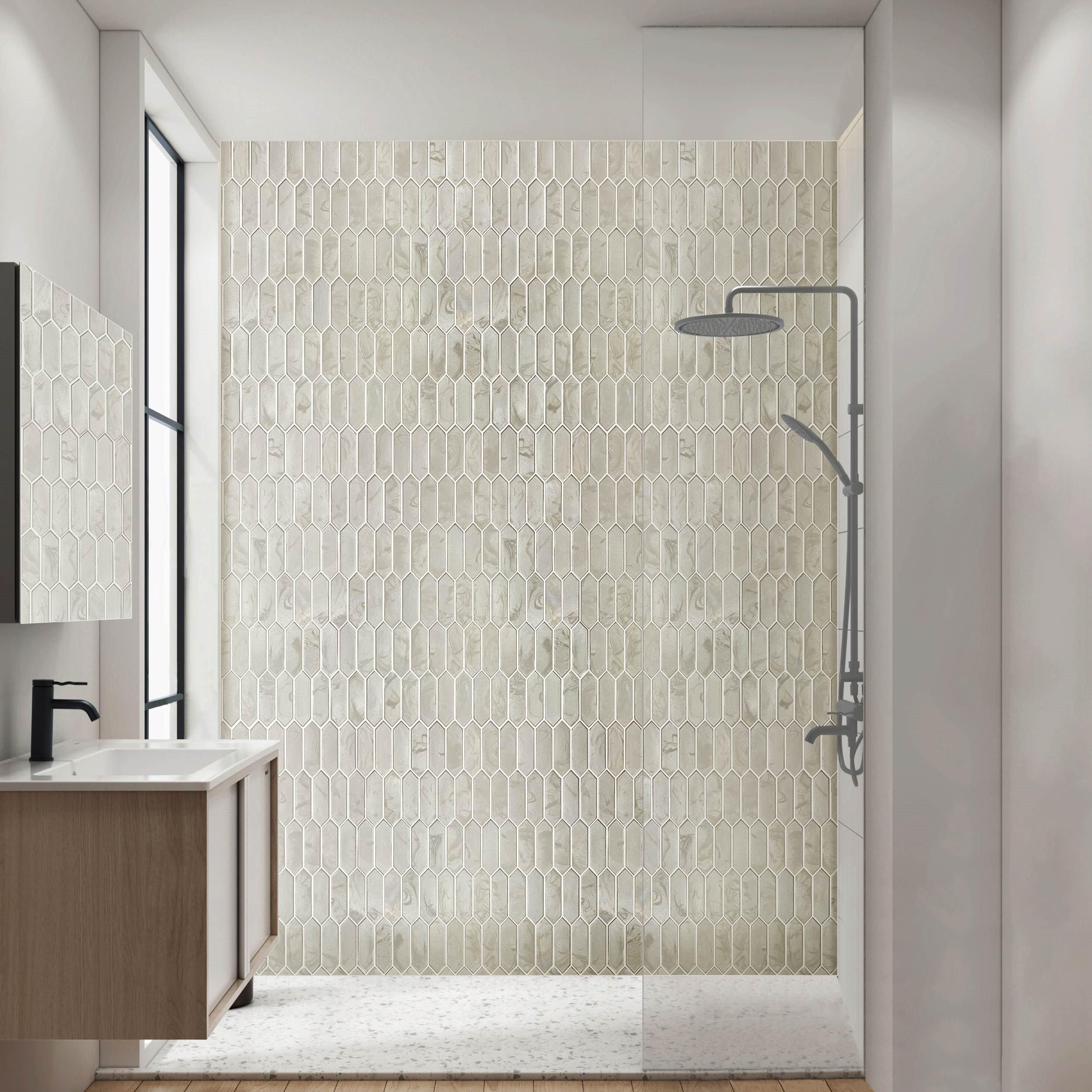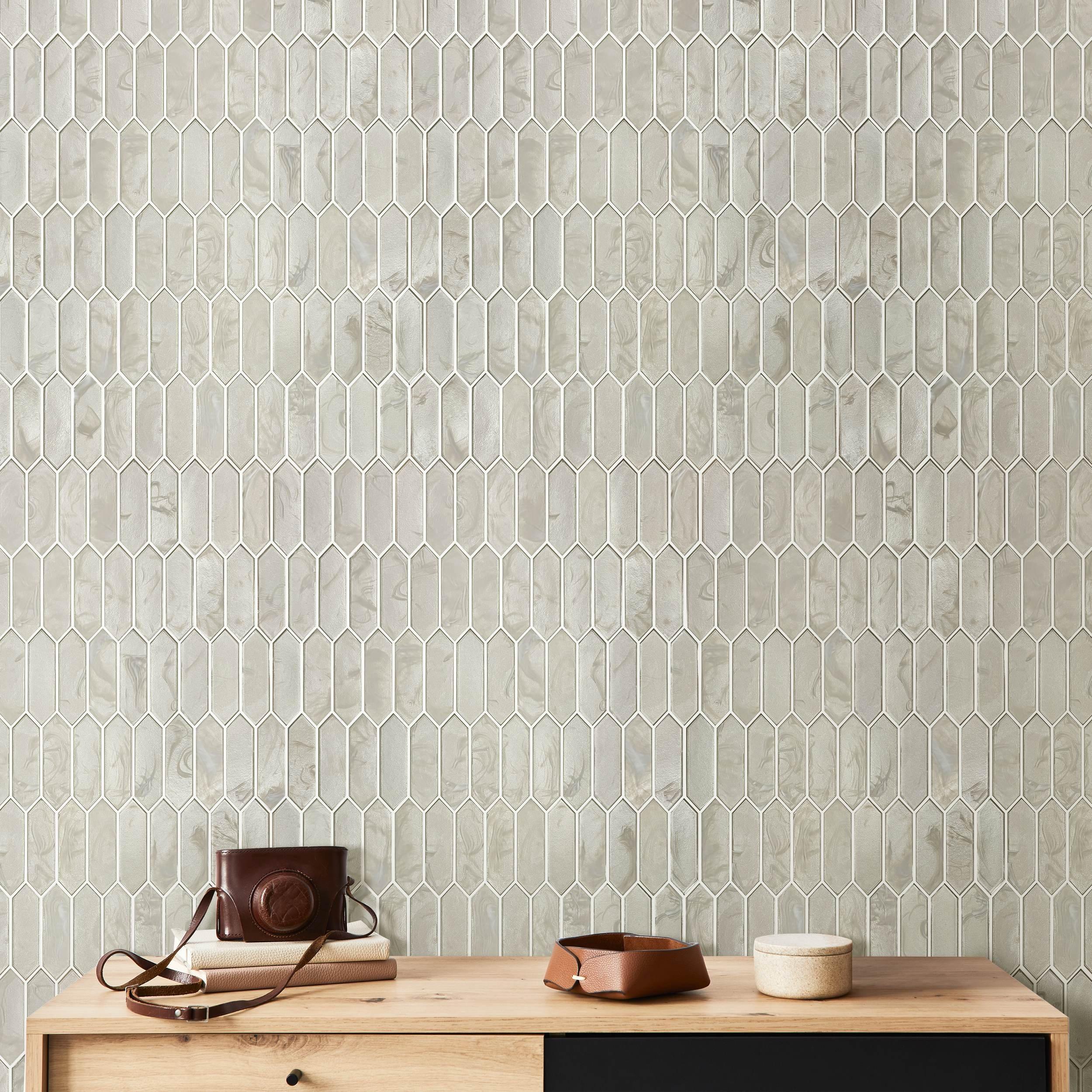 Refresh your home's design with this 10 x 12 picket Charlotte Picket Hot Glass Tile in beige.