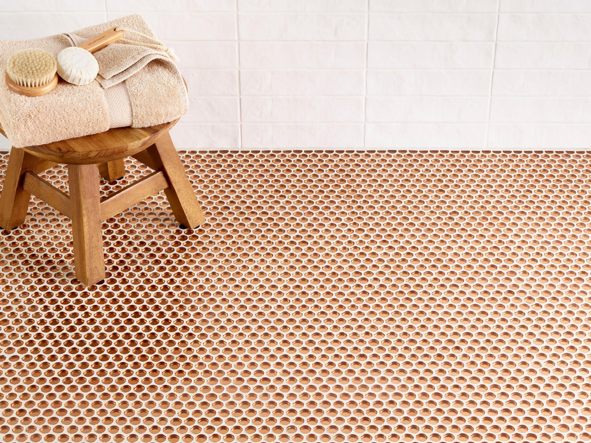 Refresh your home's design with this 12 x 12 circle Copper Penny Glass Mosaic in rust/ orange.