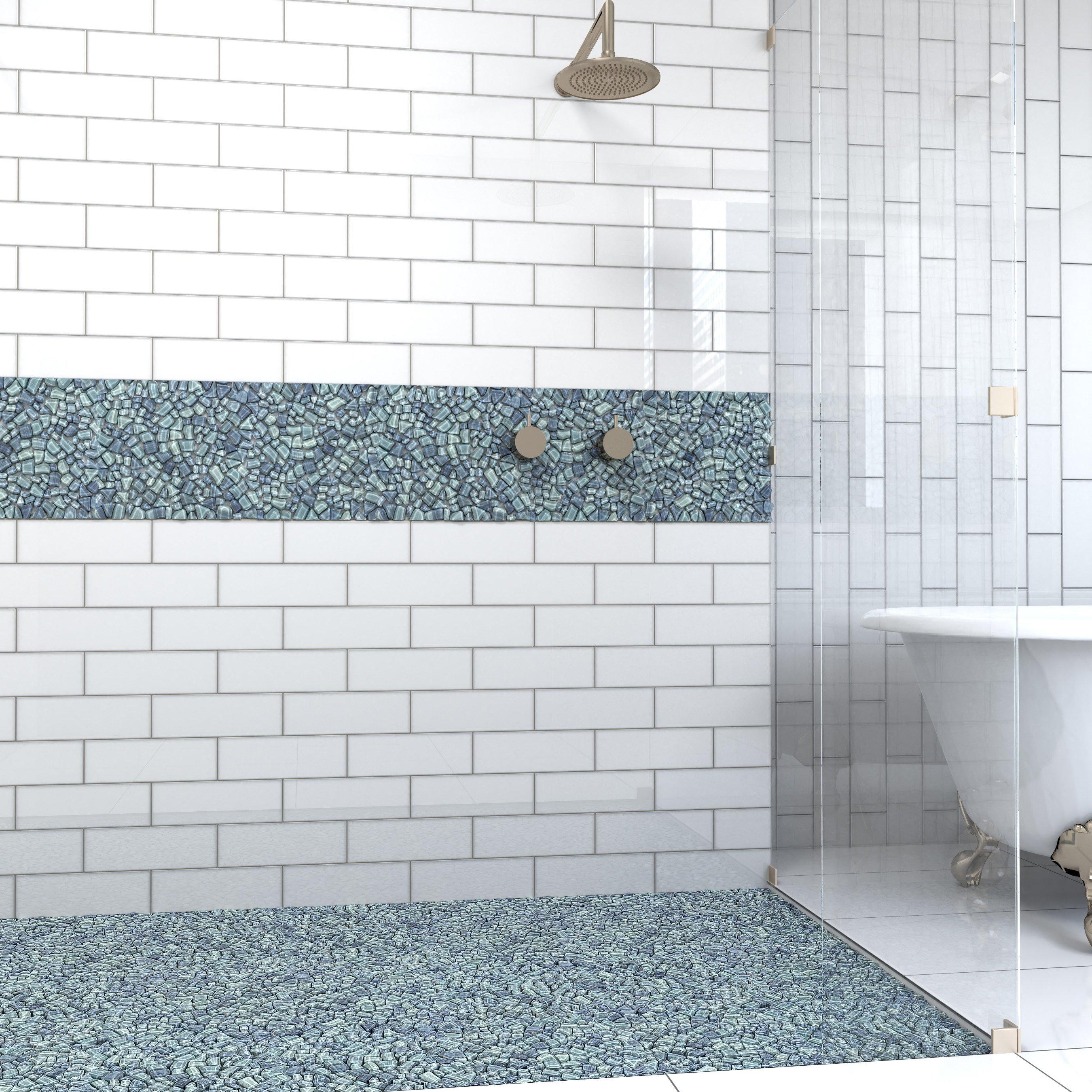 Liven up any room with this pebble 12 x 12 Crystal Cove Glass Pebble Mosaic in blue.