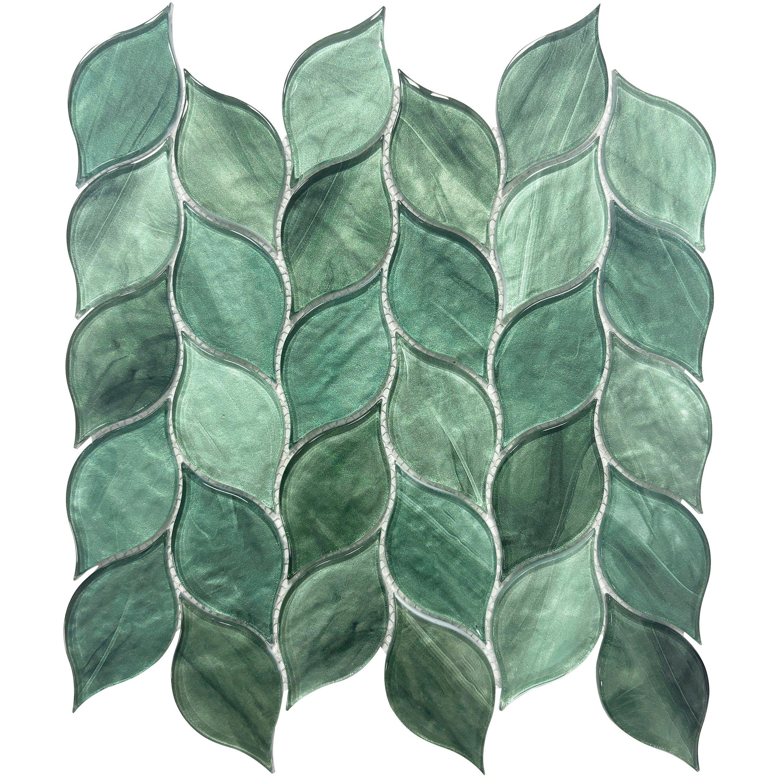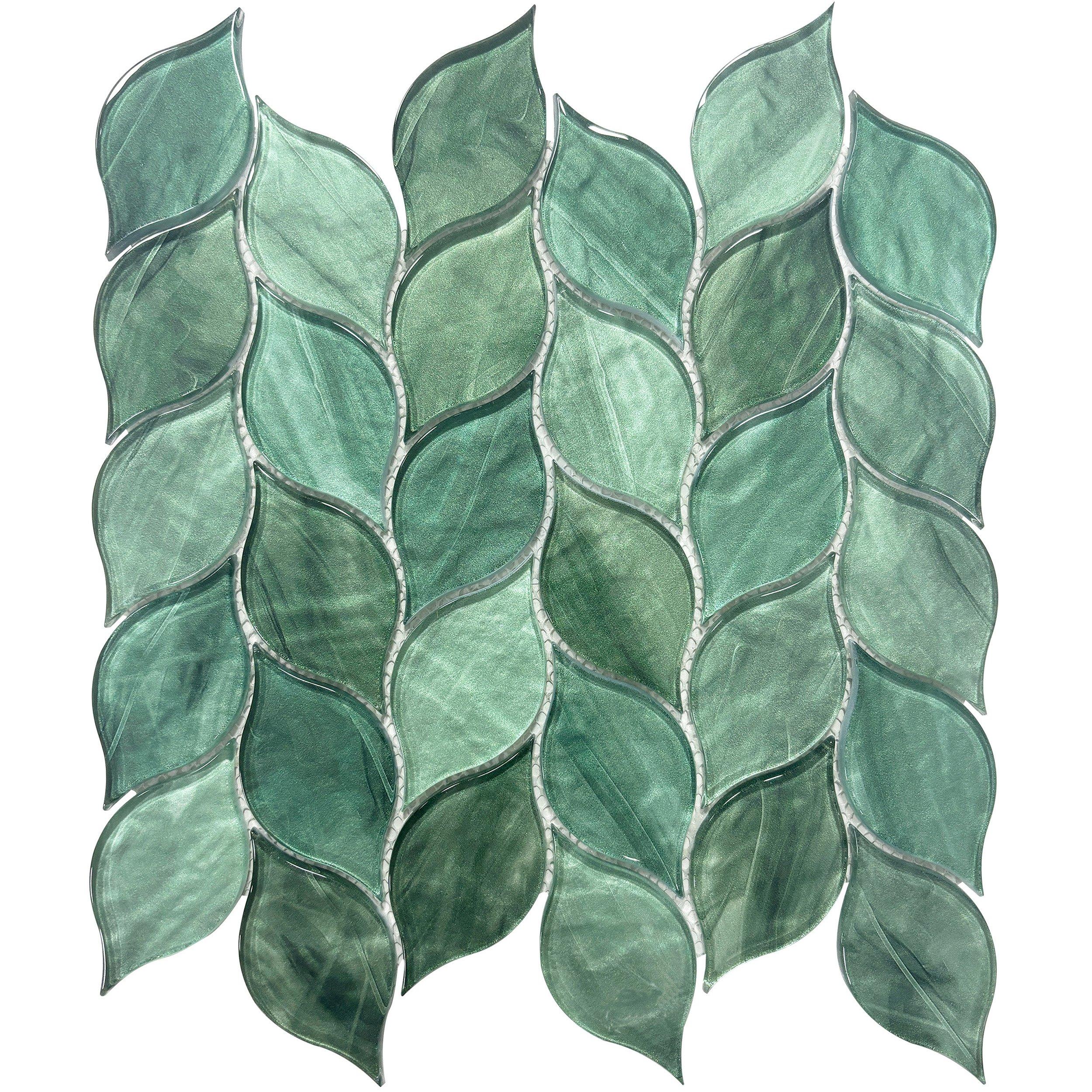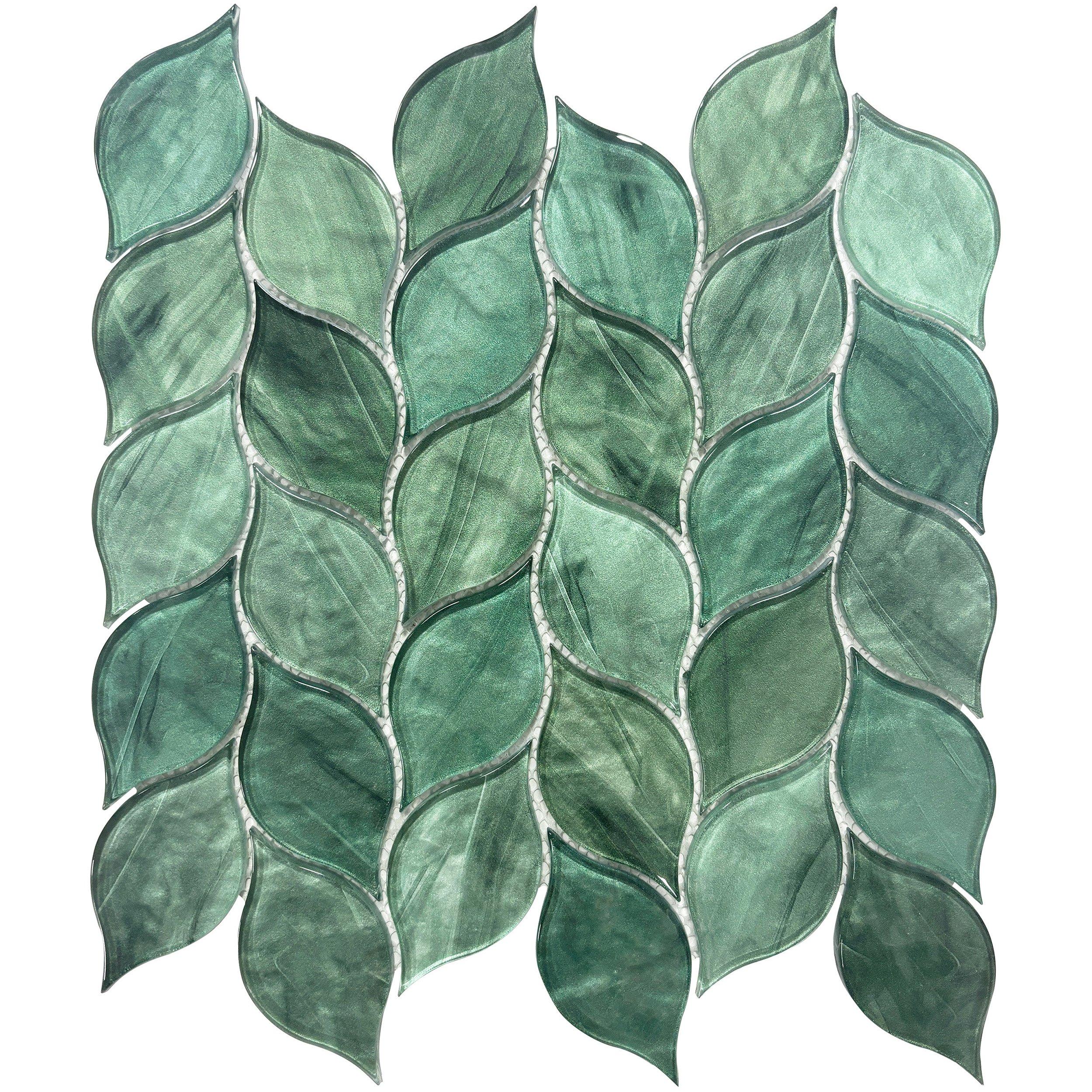 Refresh your home's design with this 12 x 12 flower Evergreen Ivy Glass Mosaic in green.