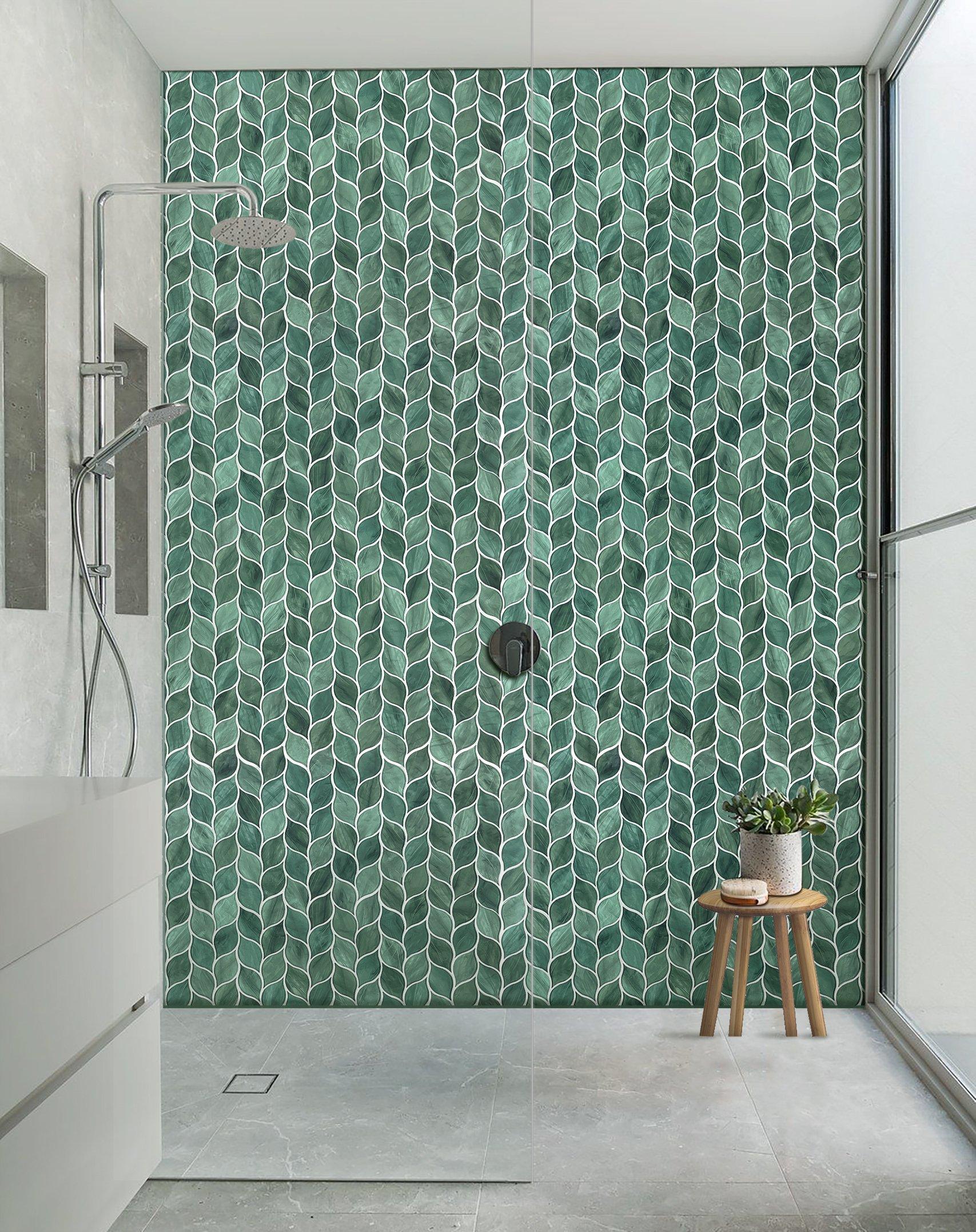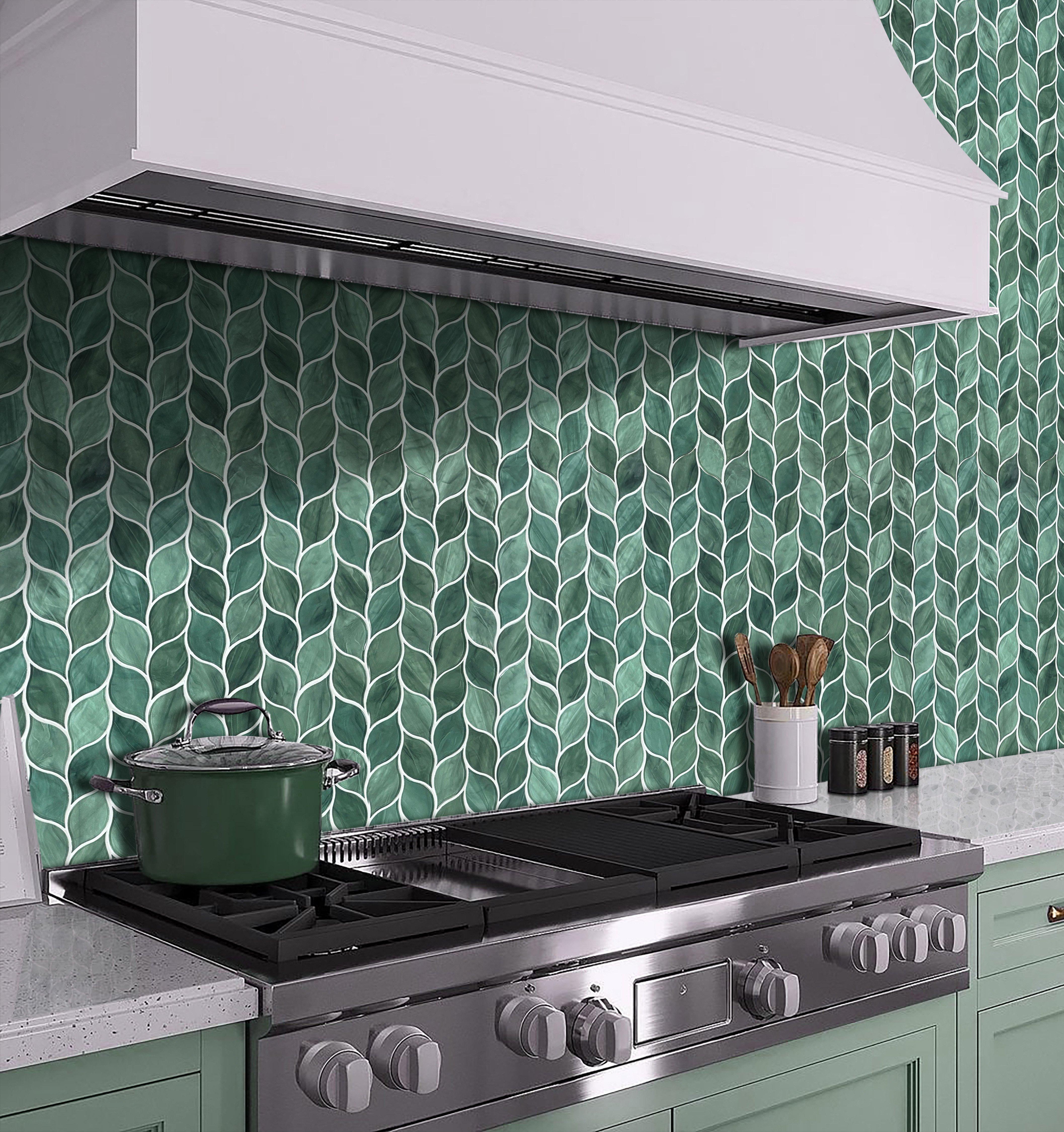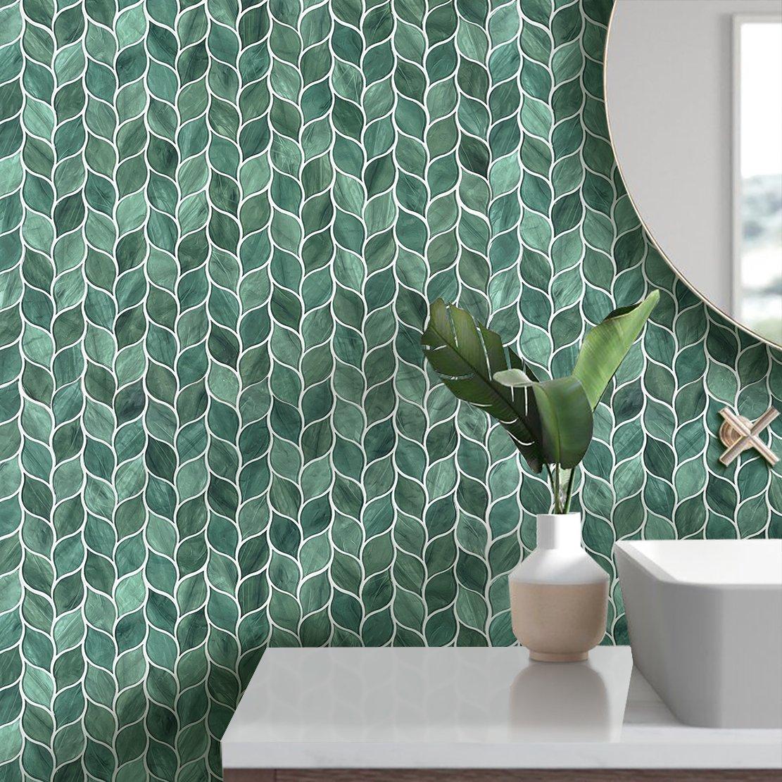 Refresh your home's design with this 12 x 12 flower Evergreen Ivy Glass Mosaic in green.