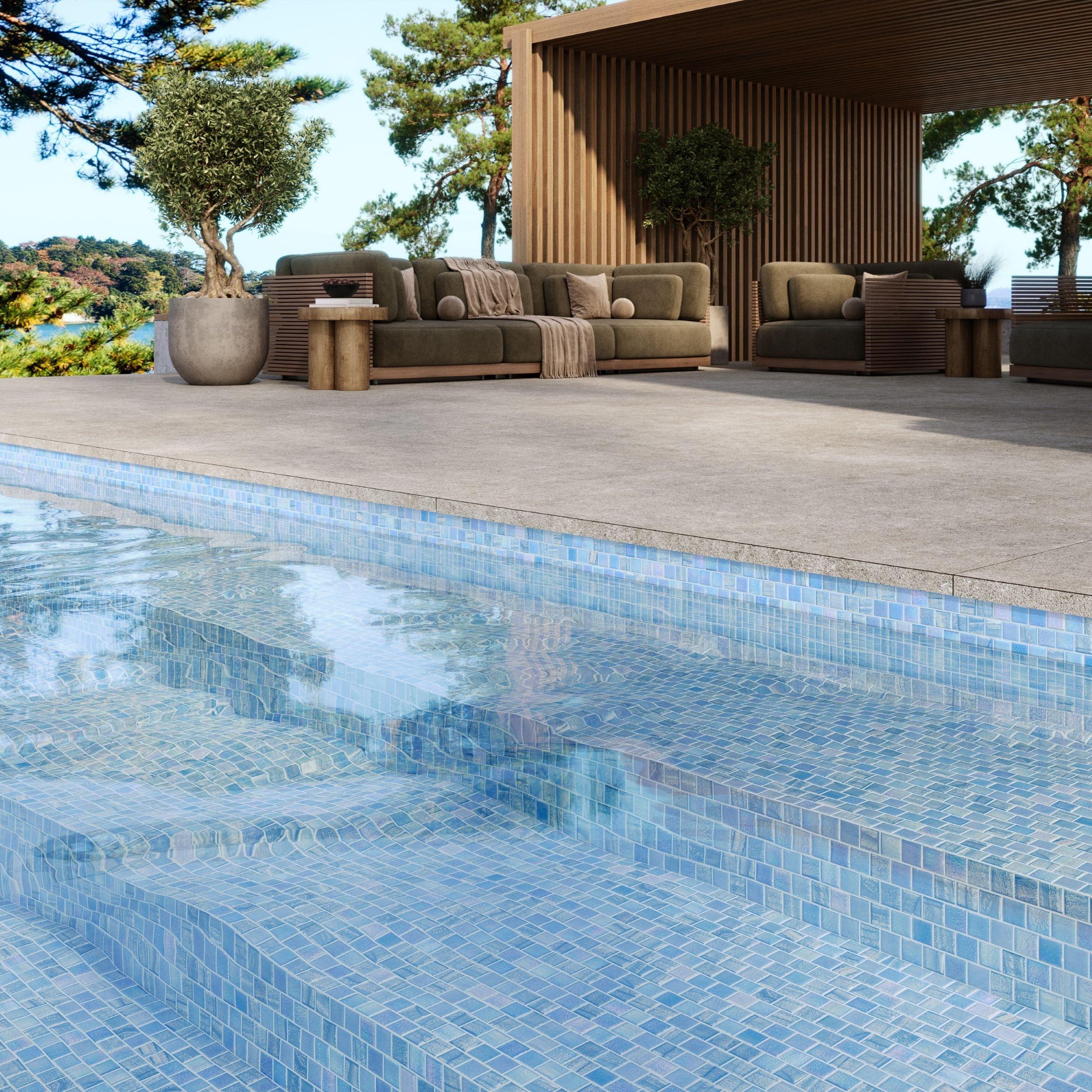 Fusion Light Blue Square Glass Mosaic is perfect for adding a pop of color to your indoor or outdoor spaces. Its blue hue makes it an attractive choice for modern and classic designs alike.