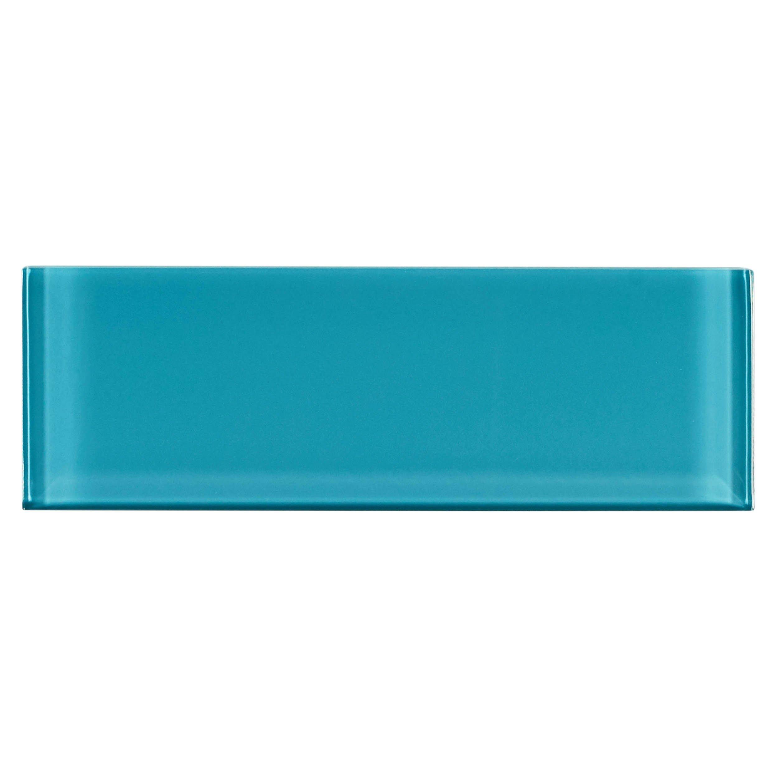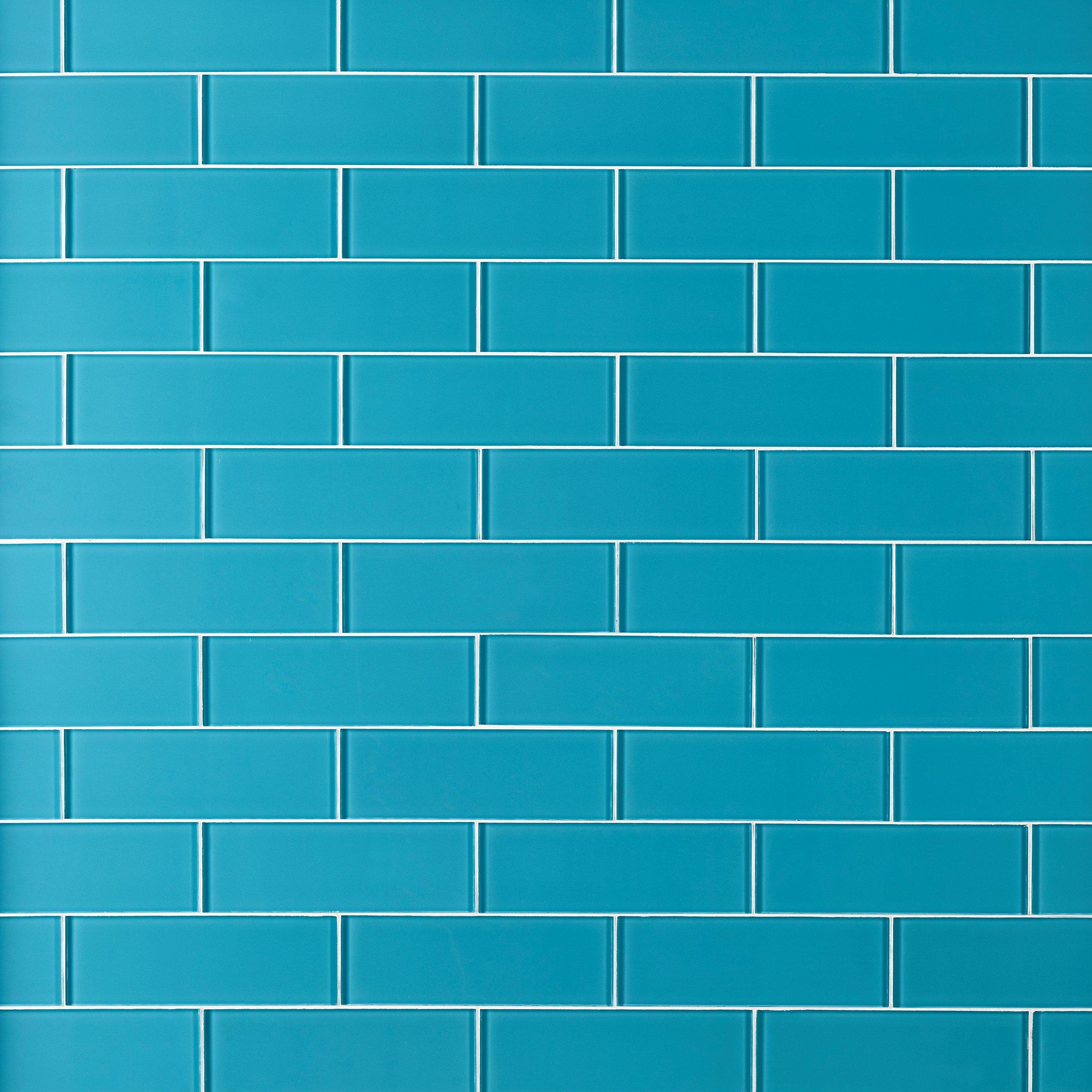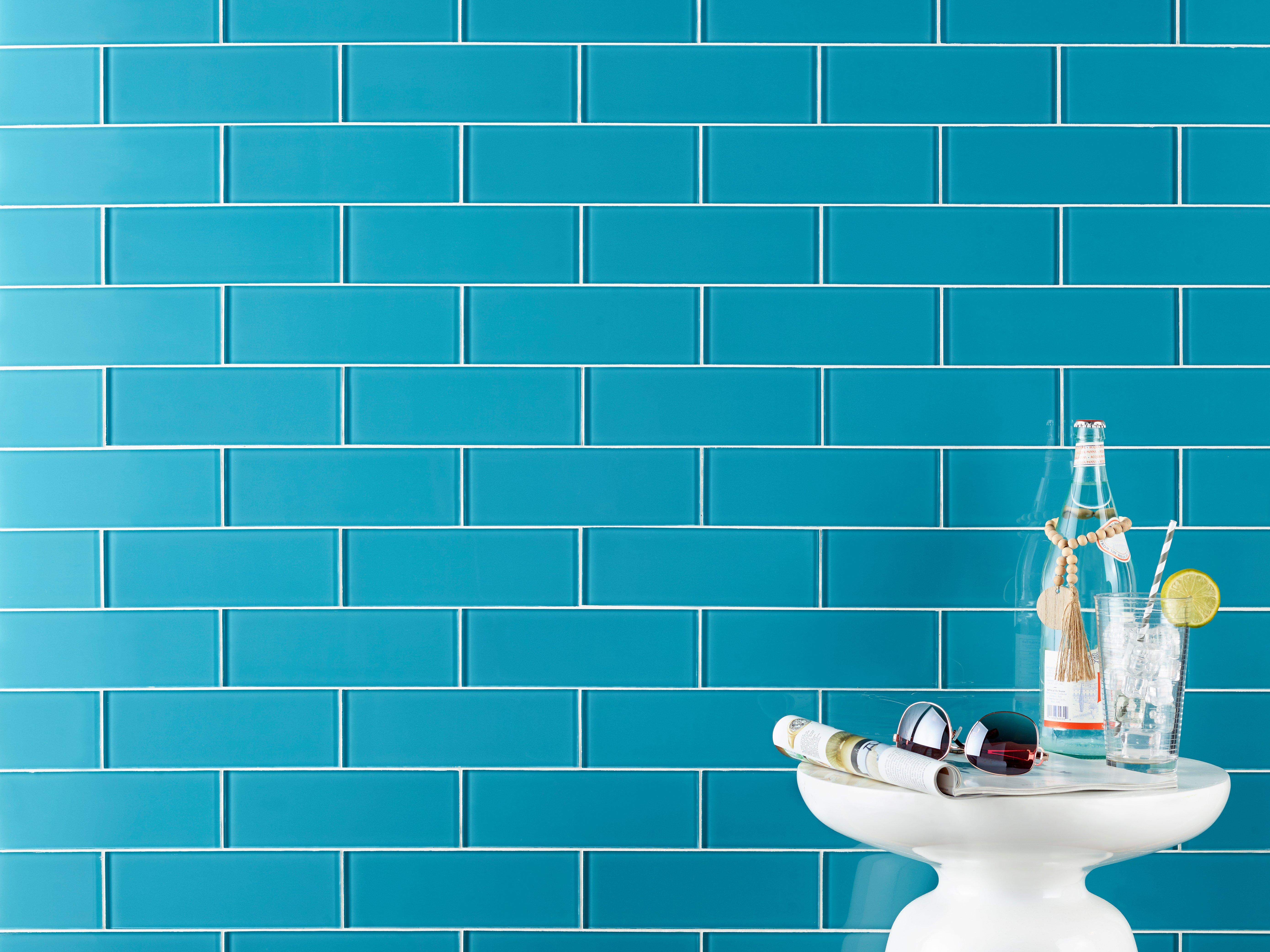 Liven up any room with this rectangle 3 x 9 Lagoon Glass Tile in blue.