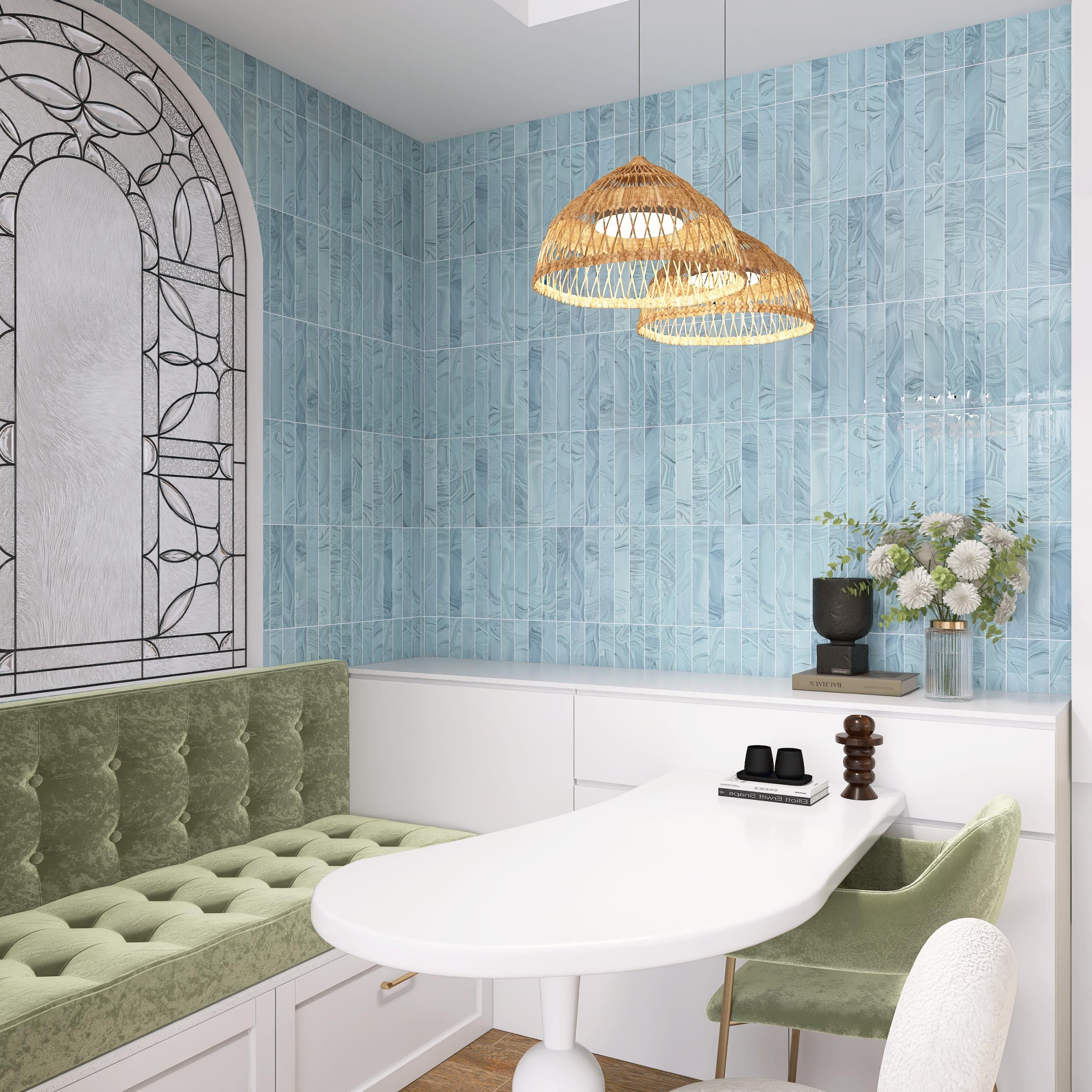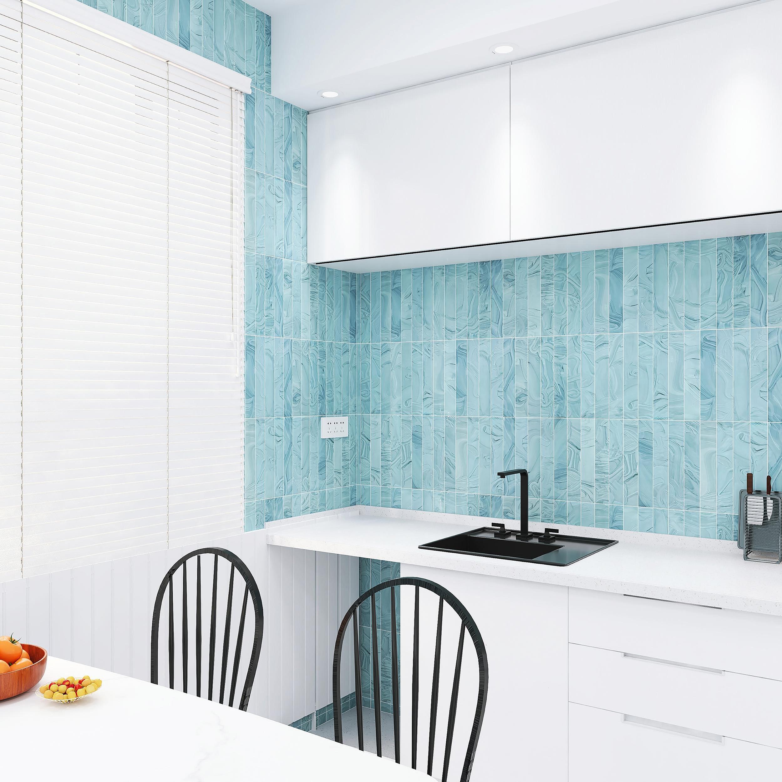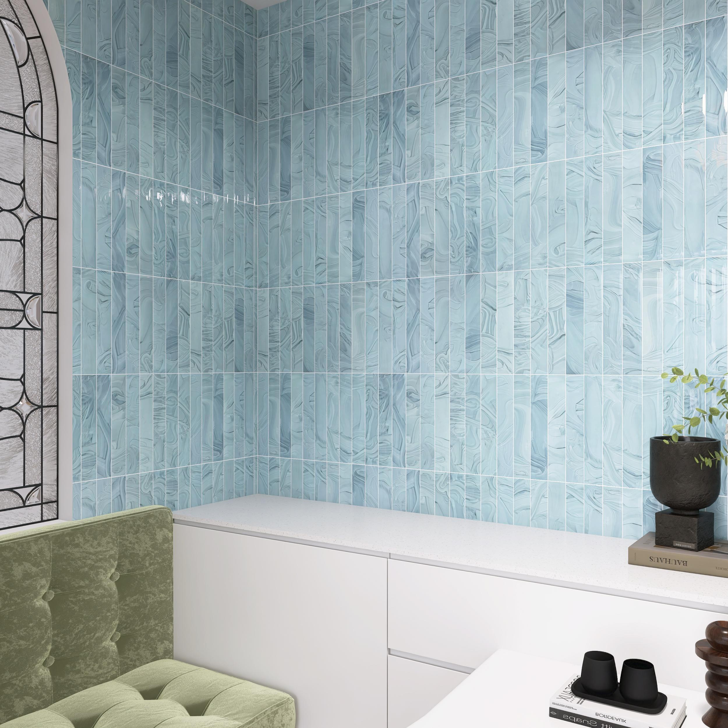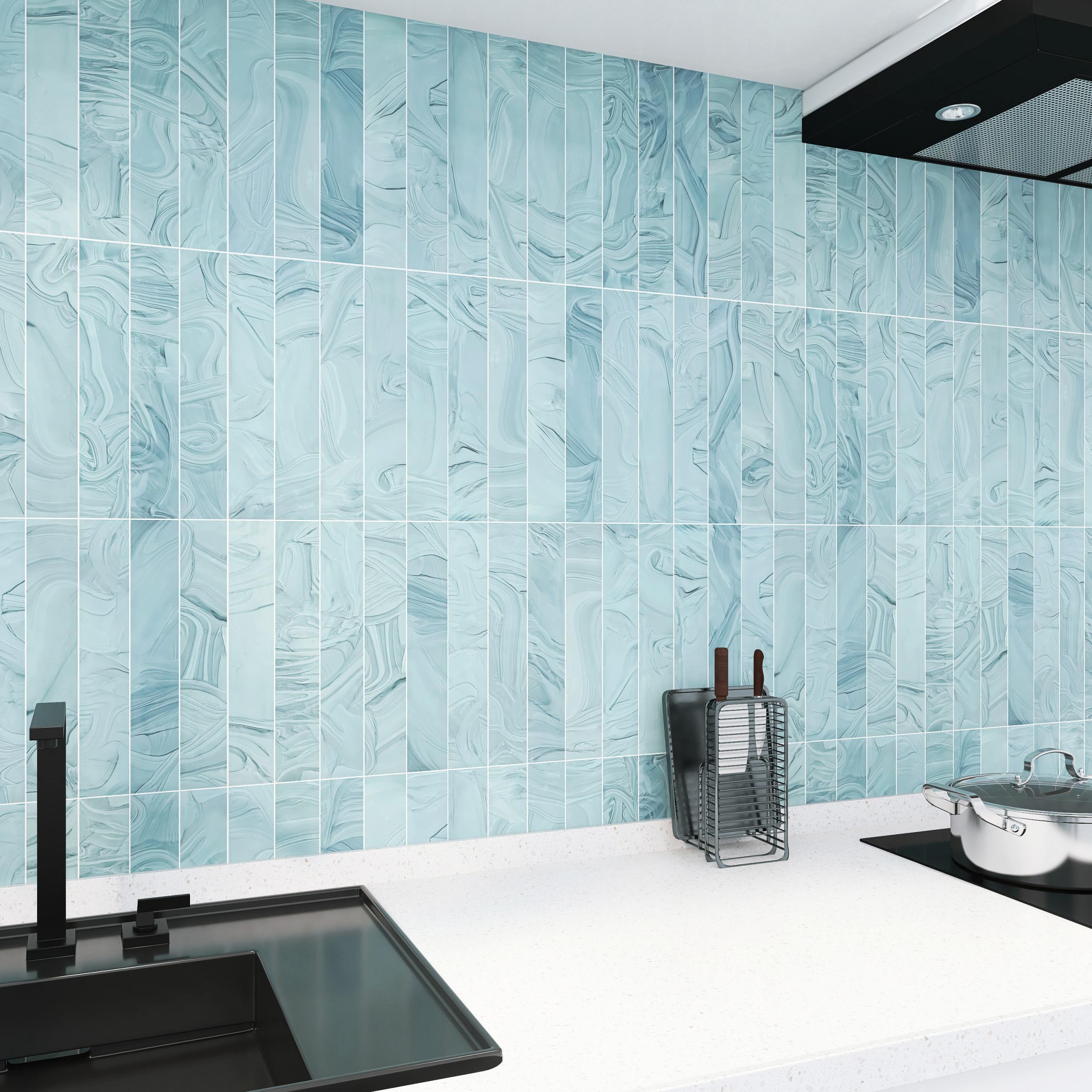 Liven up any room with this rectangle 2 x 12 Nimbus Azul Glass Tile in blue.