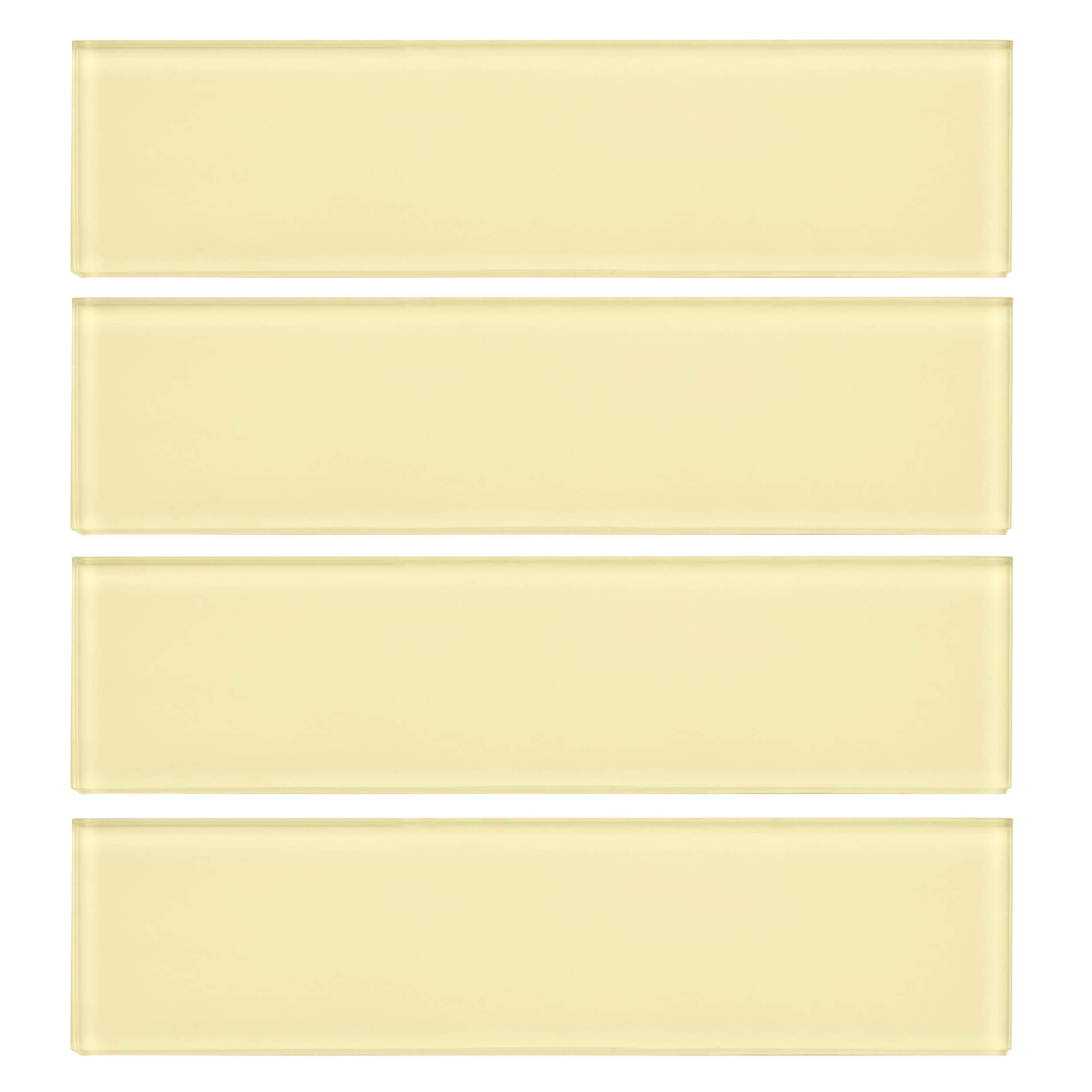 Refresh your home's design with this 3 x 12 rectangle Pure Glass Buttercup Tile in gold/ yellow.
