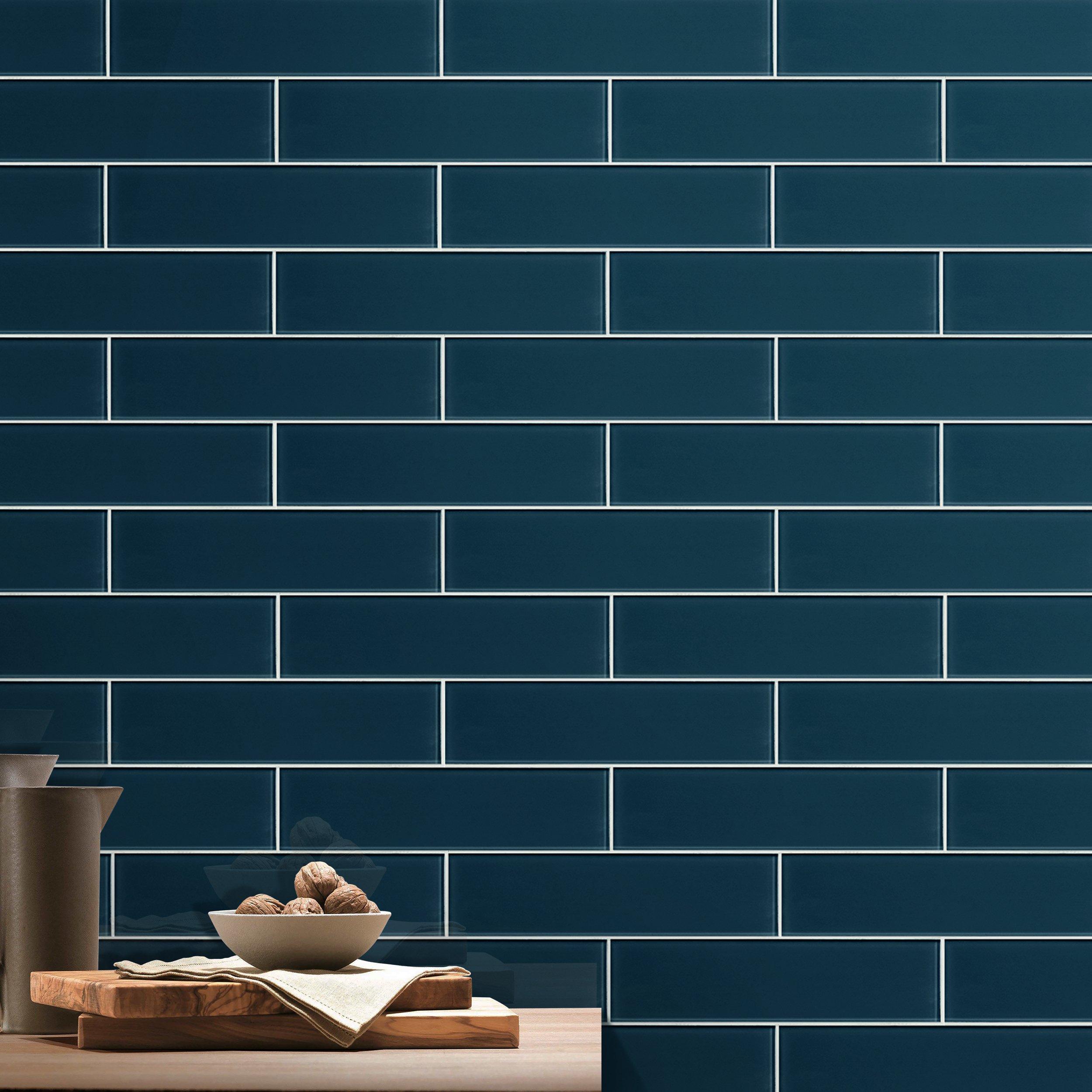 Add an accent to your design with this 3 x 12 rectangle Pure Glass Cobalt Tile. The blue color will enhance any space.