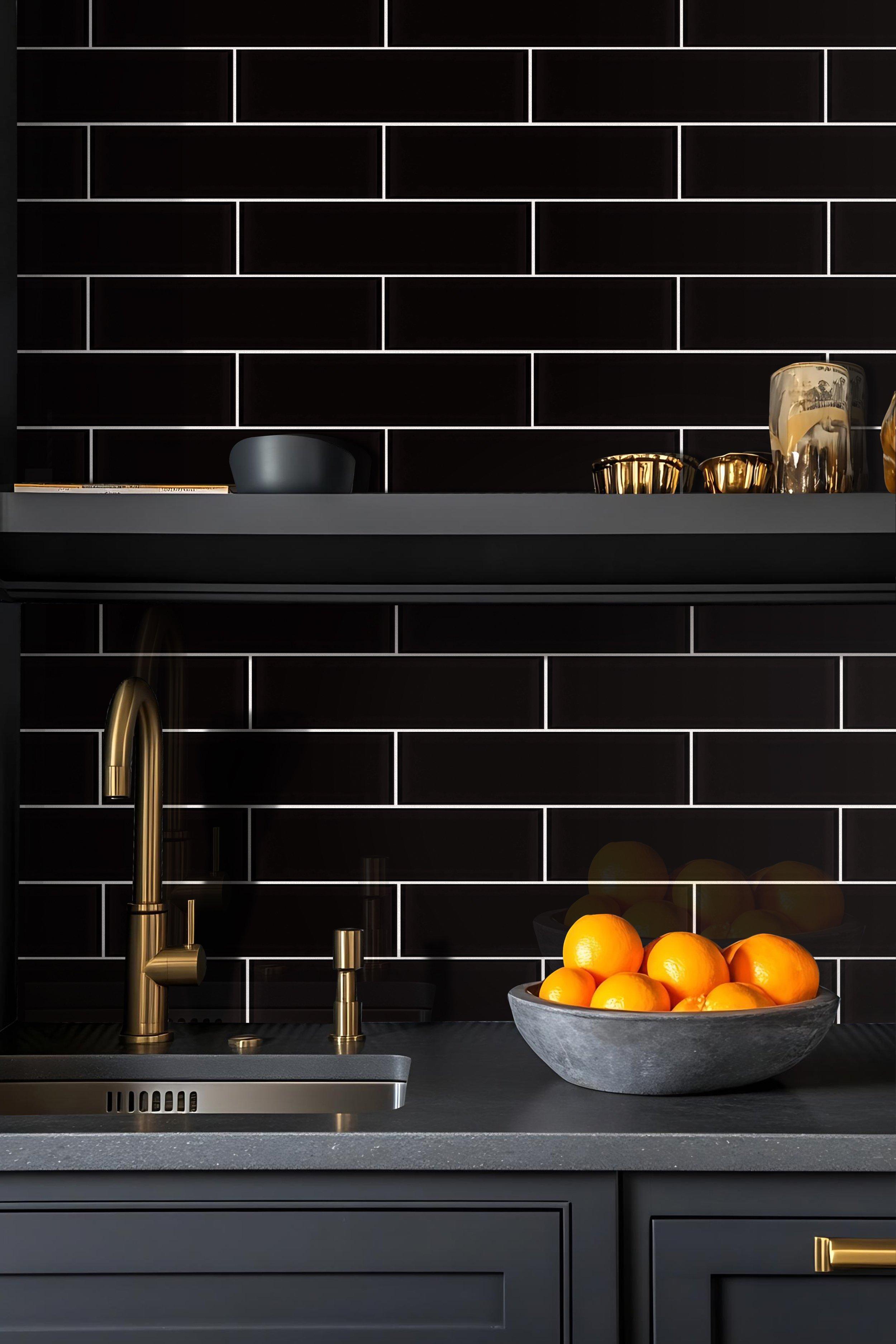 Add an accent to your design with this 3 x 12 rectangle Pure Glass Onyx Tile. The black color will enhance any space.
