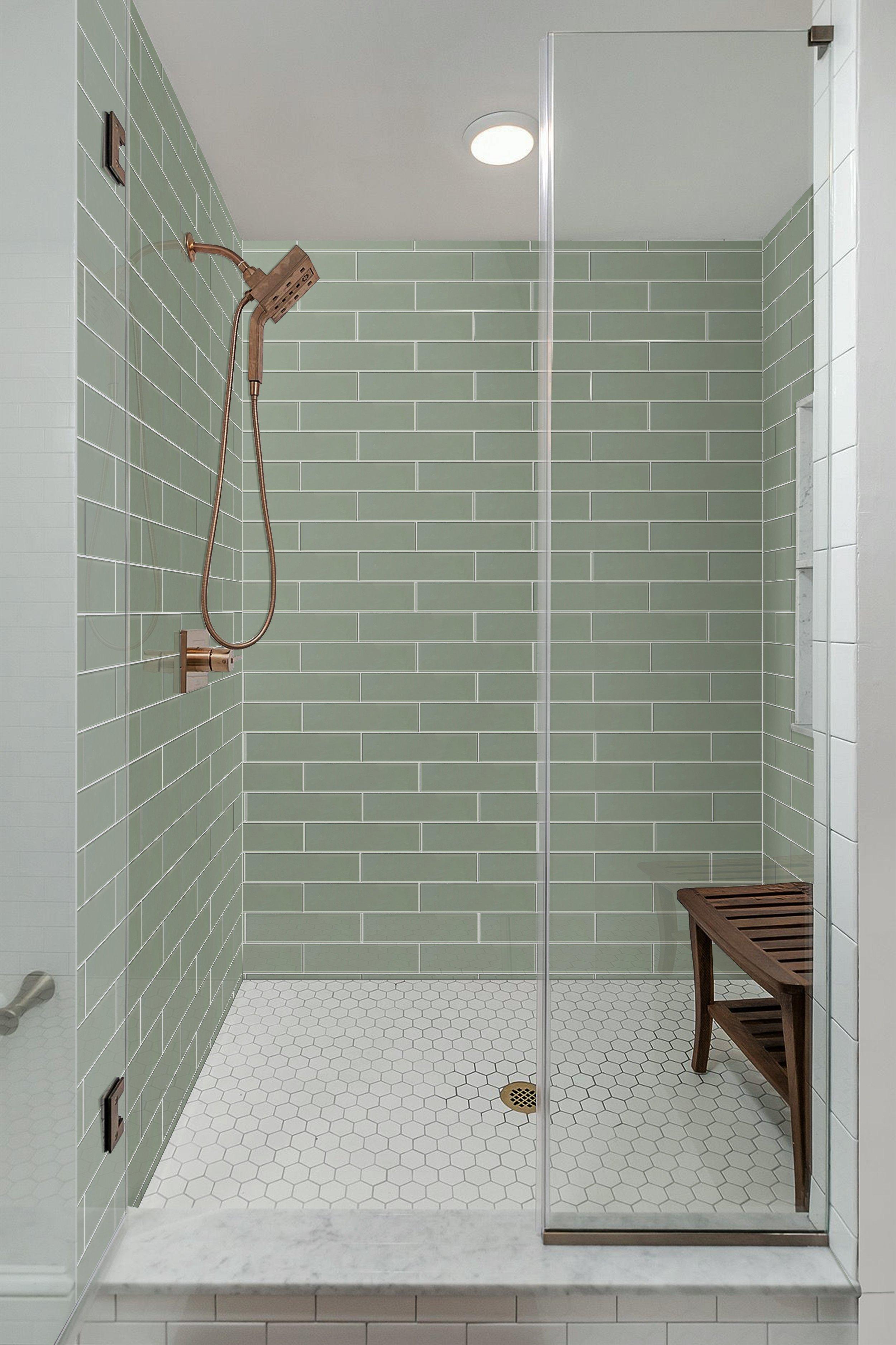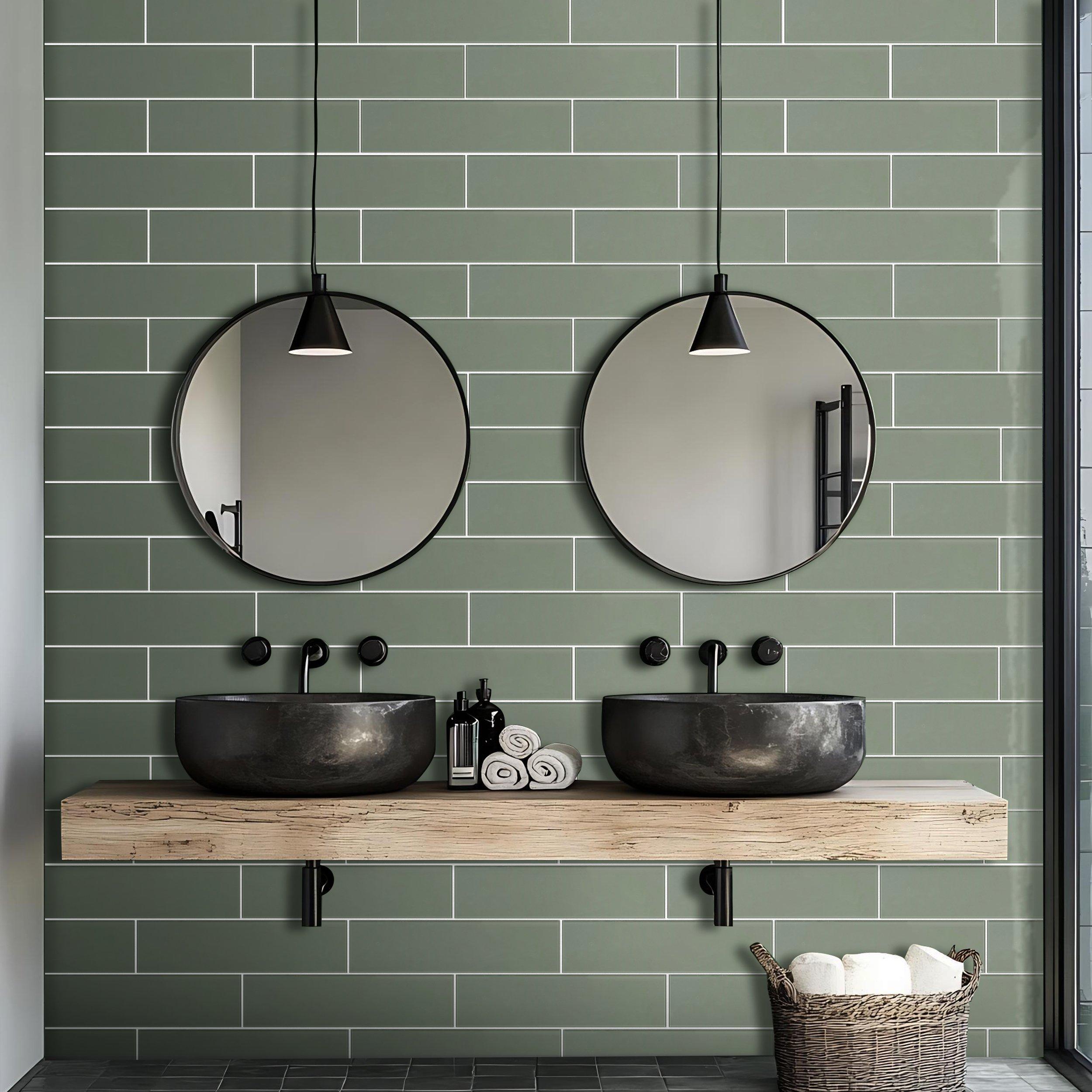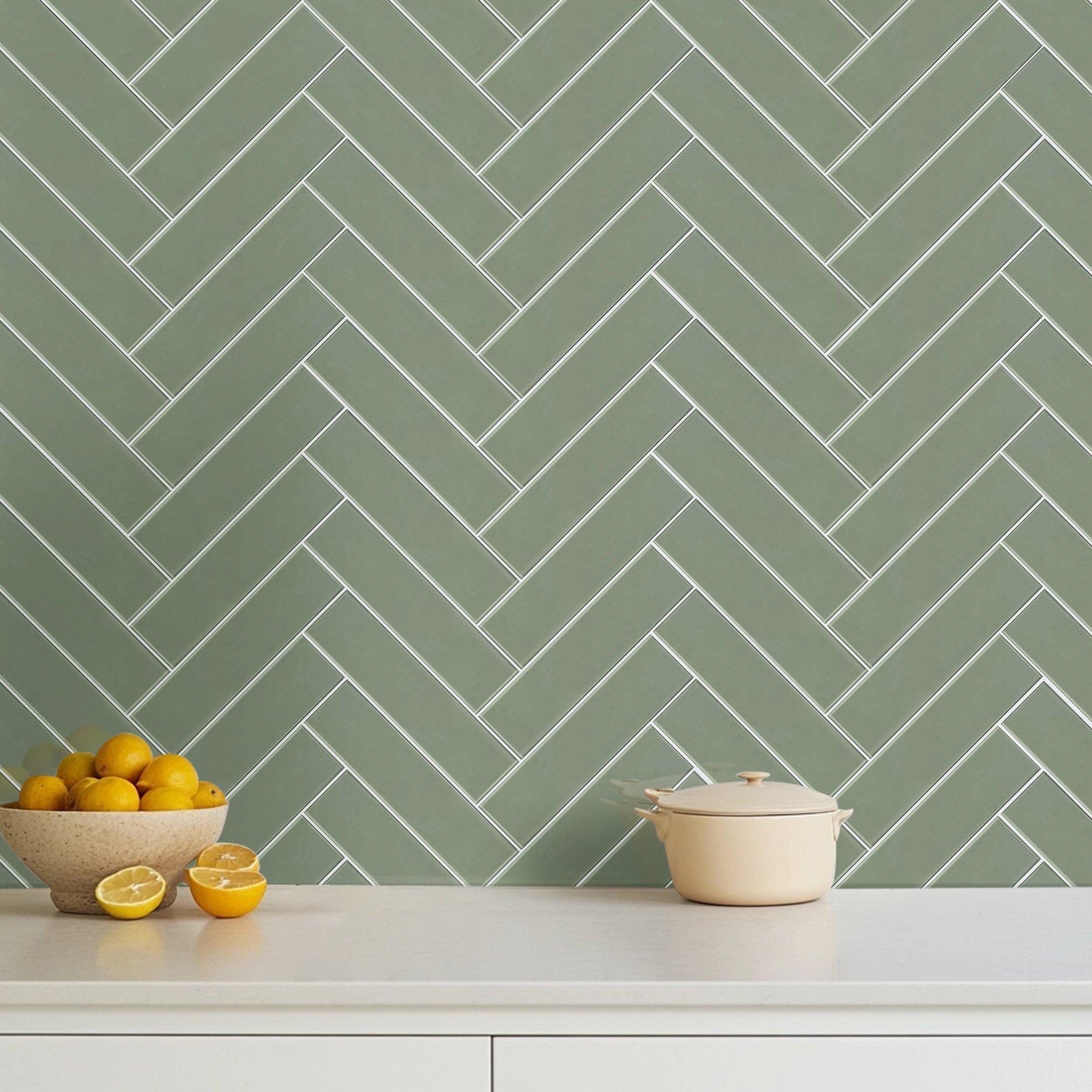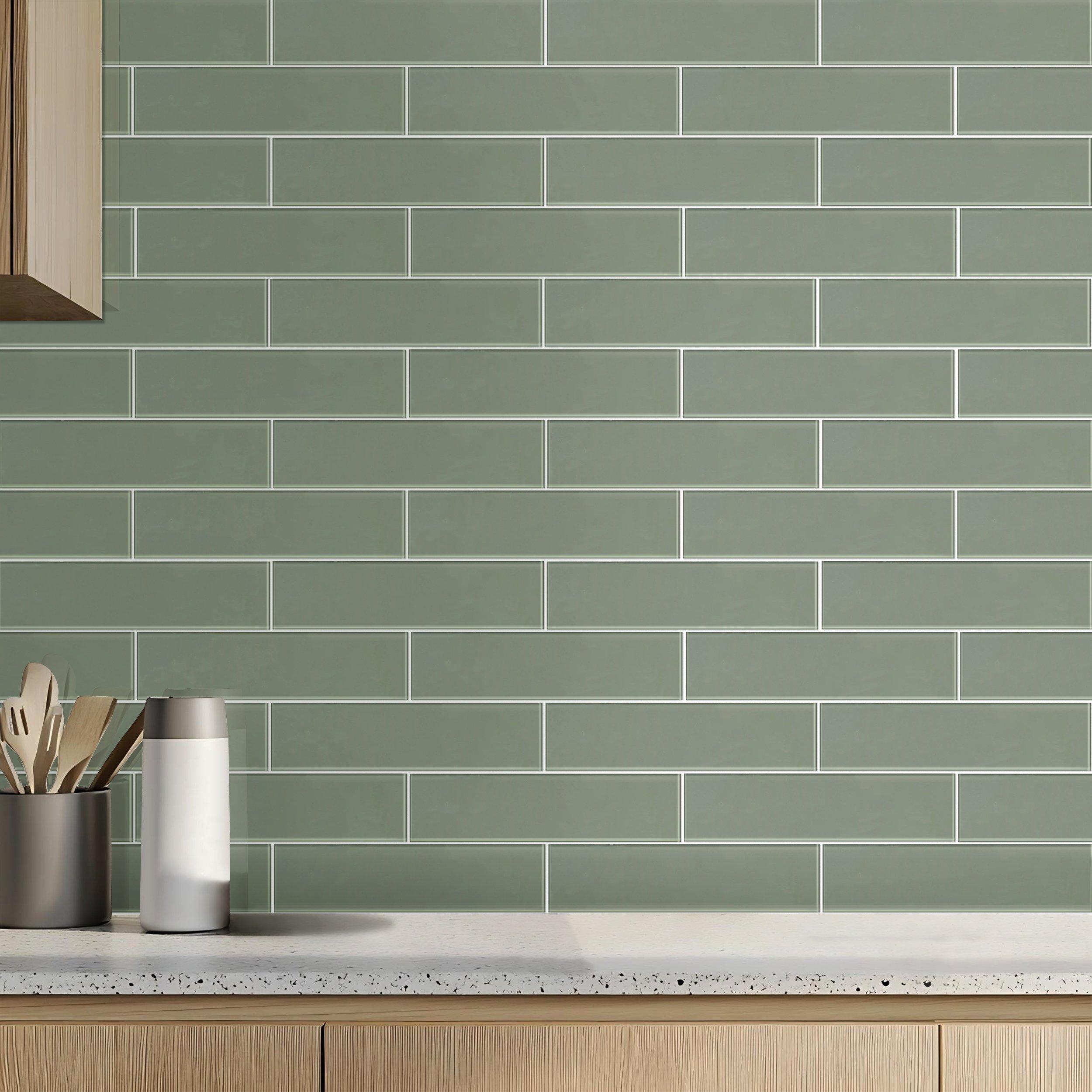 Liven up any room with this rectangle 3 x 12 Pure Sage Glass Tile in green.