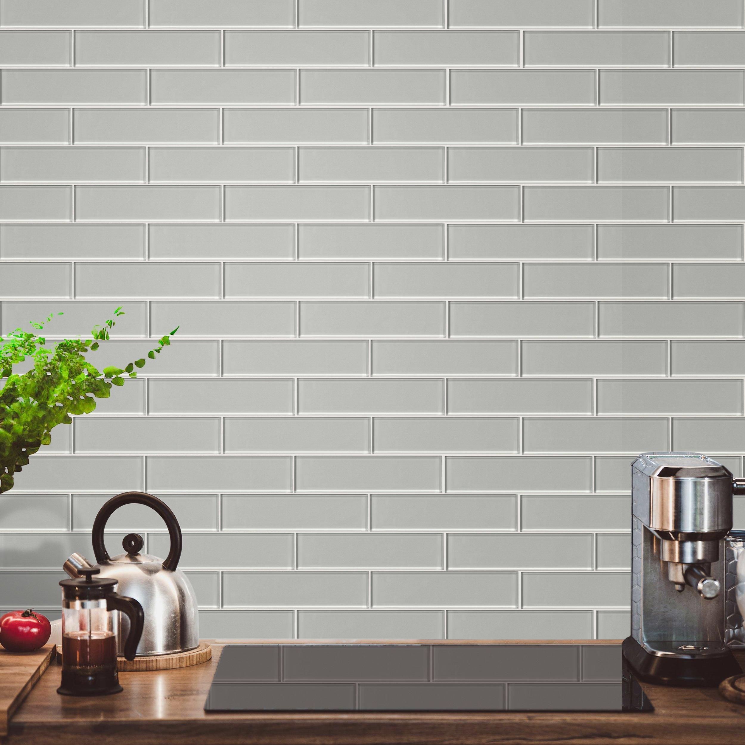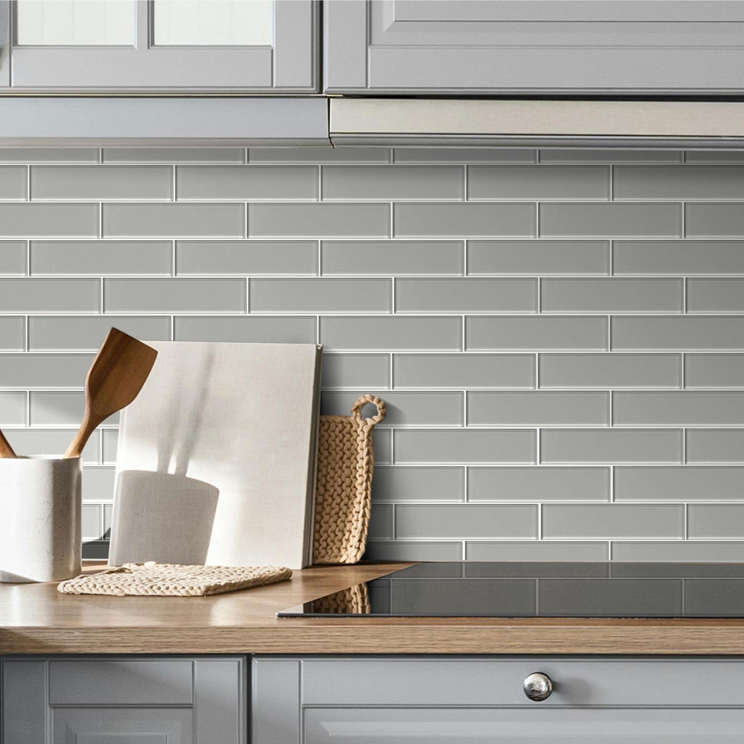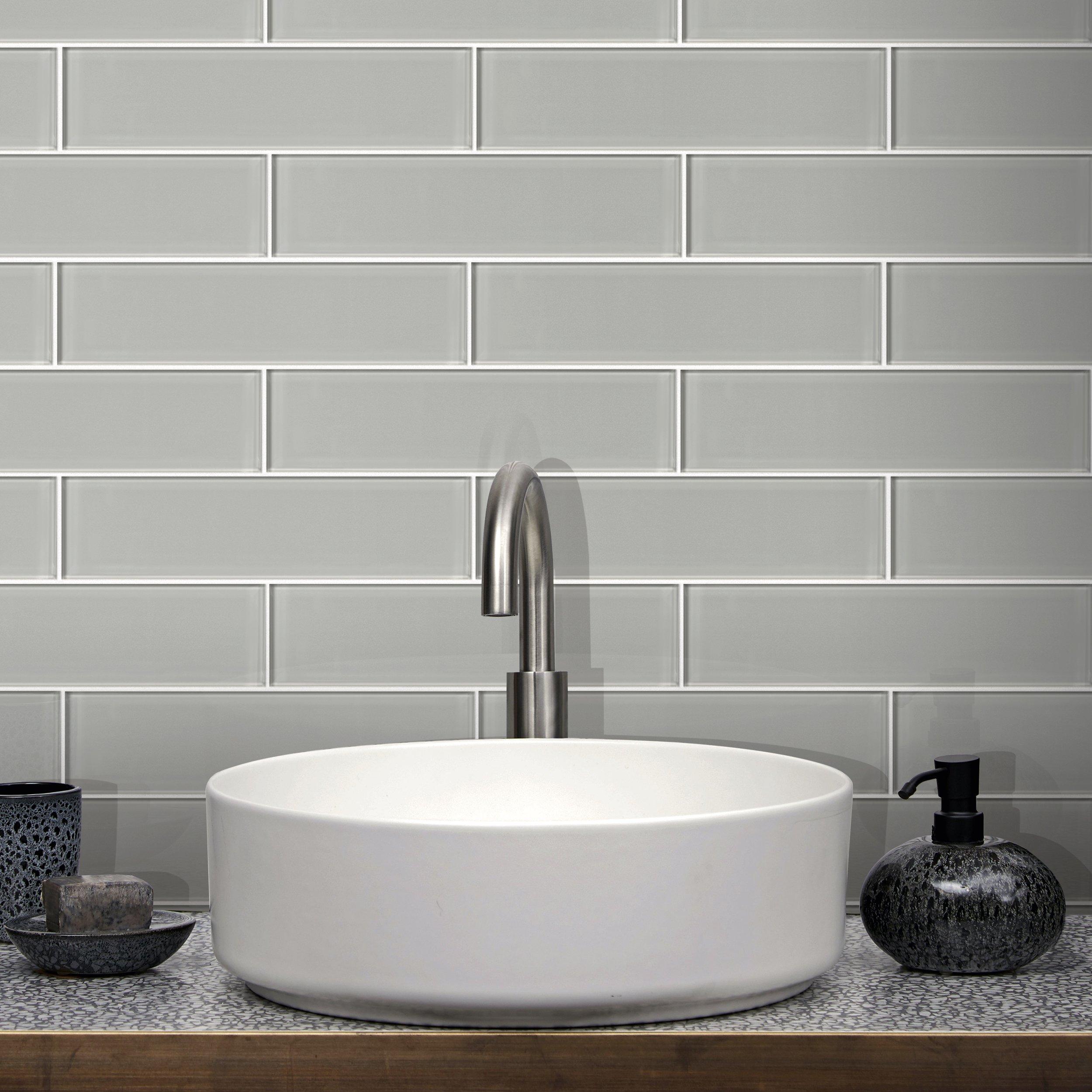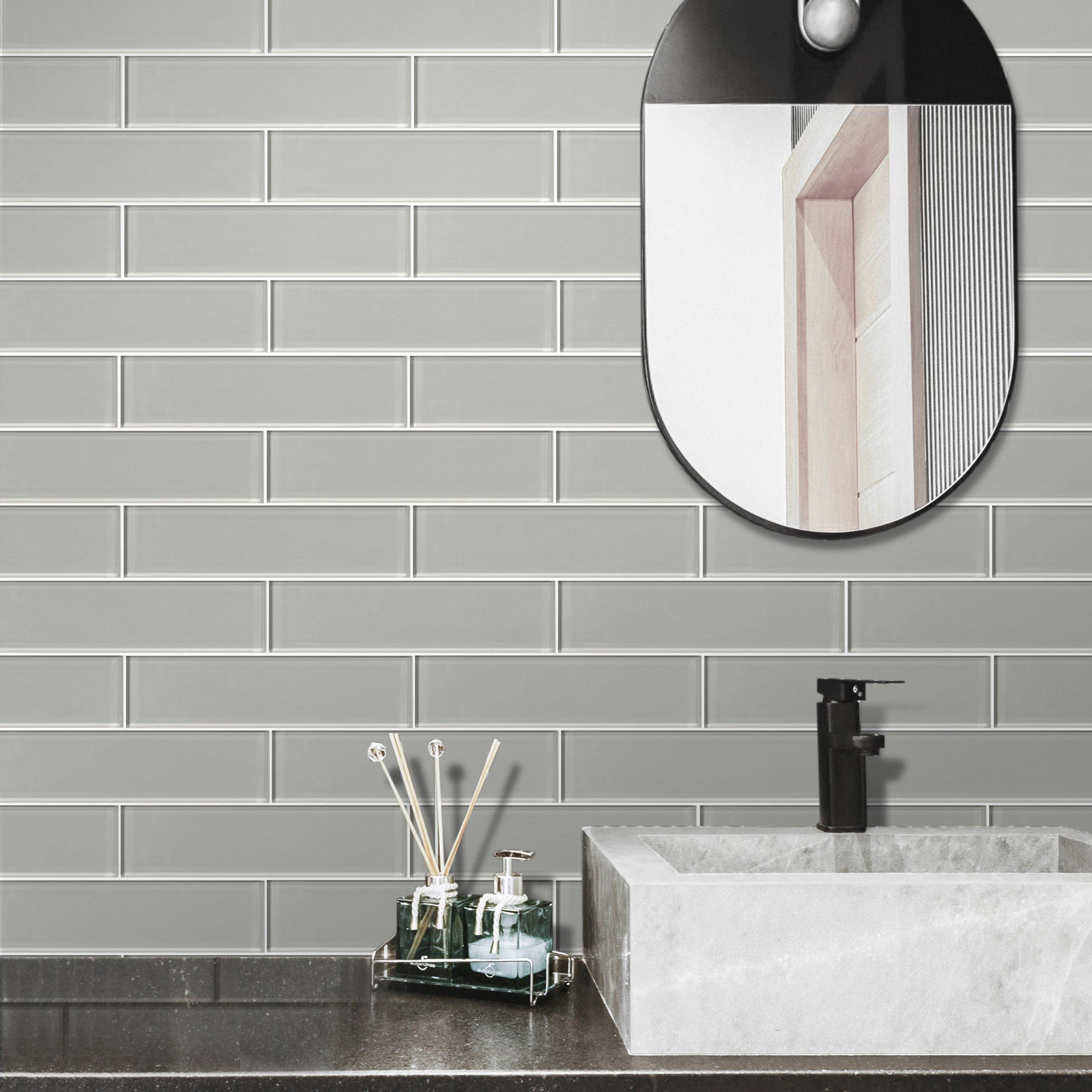 Liven up any room with this rectangle 3 x 12 Pure Glass Shadow Tile in gray.