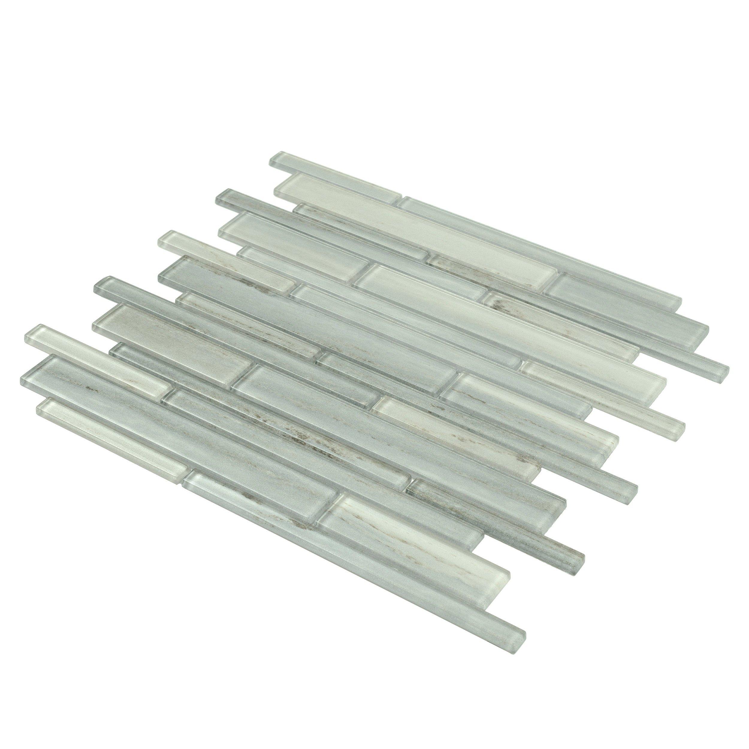 Add an accent to your design with this 12 x 12 linear Uptown Grigio Linear Glass Mosaic. The gray color will enhance any space.