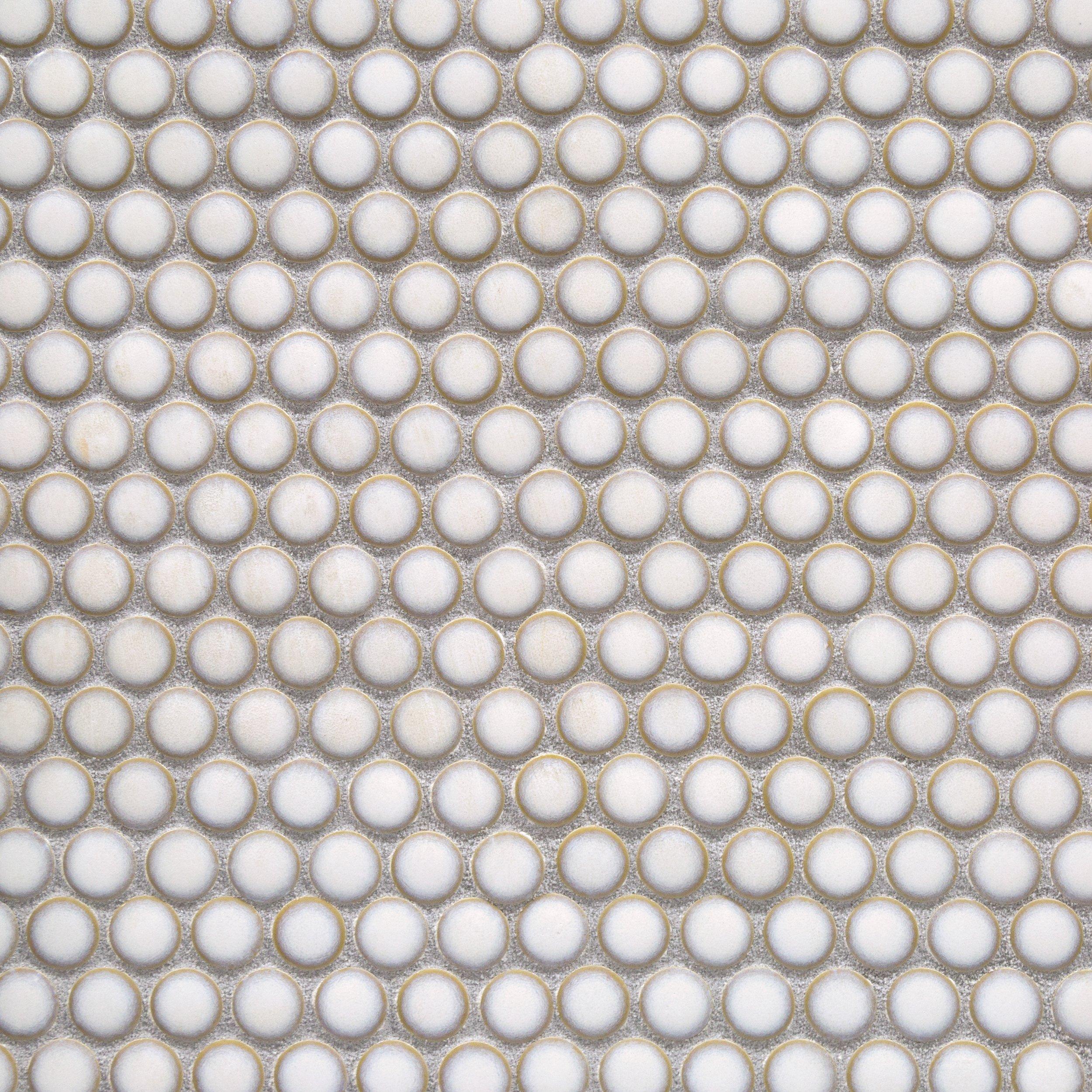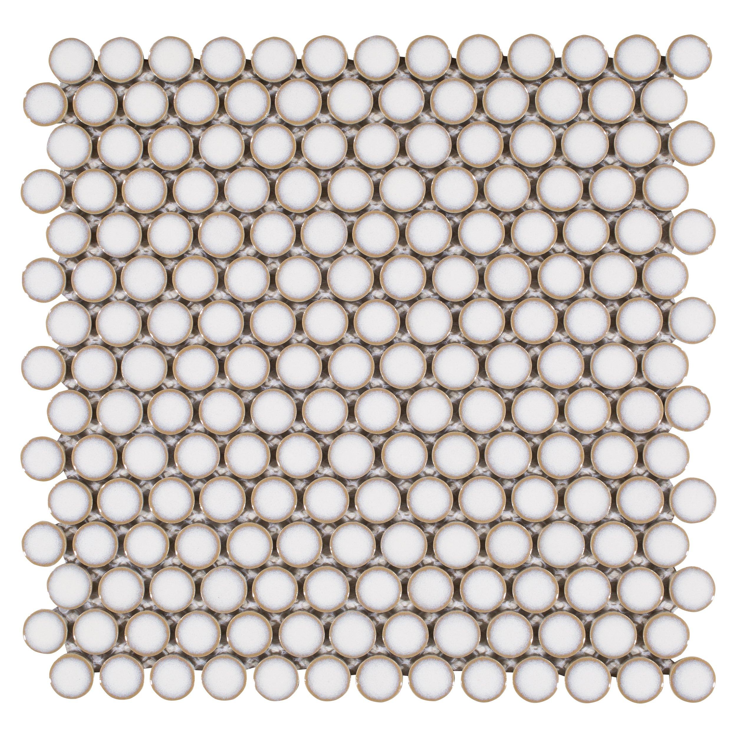 YesPersonalize your space with the 10 x 12 Glazed White Penny Porcelain Mosaic. This white polished or high gloss finish tile will make a great impact in small areas like the bathroom, den, or other overlooked spaces.
