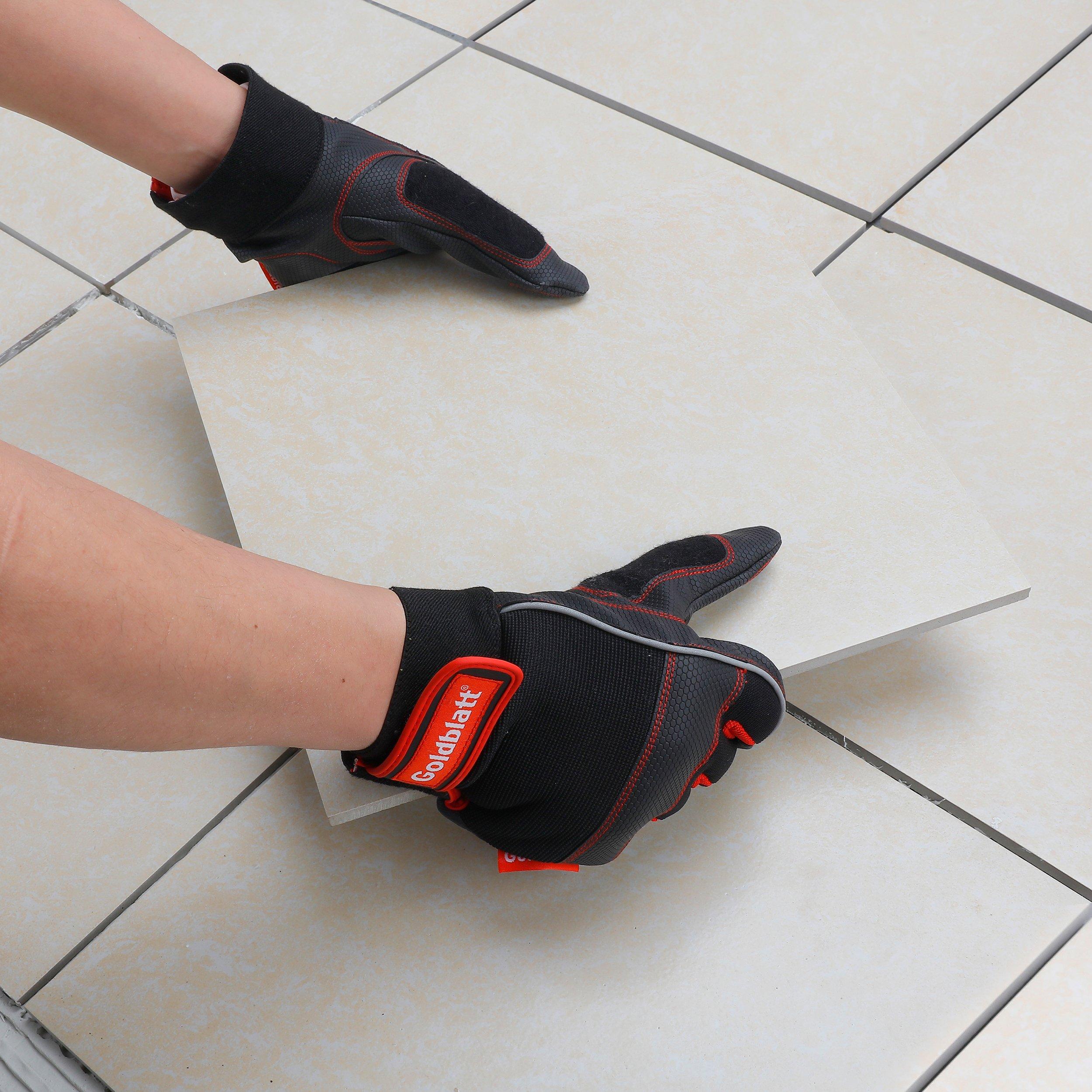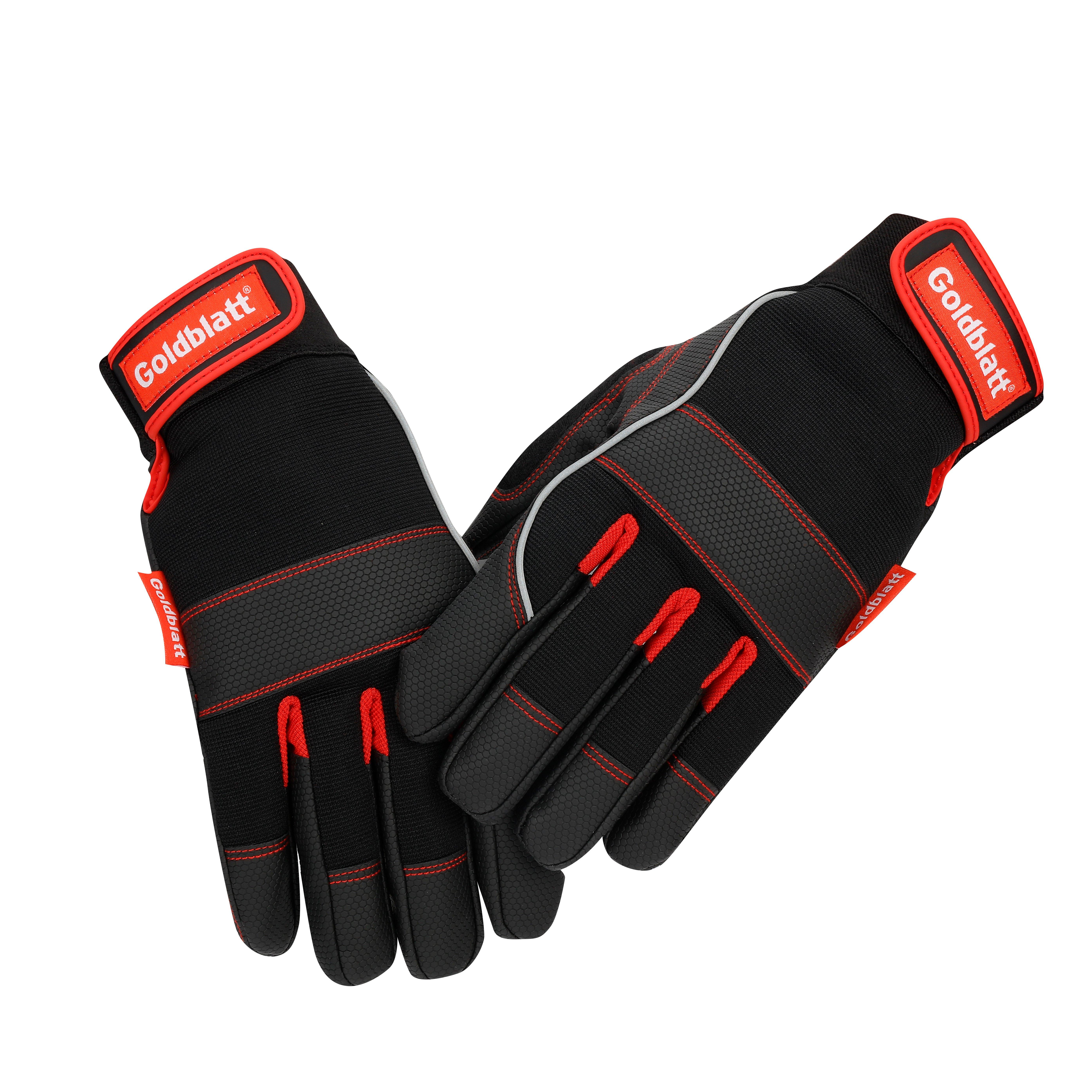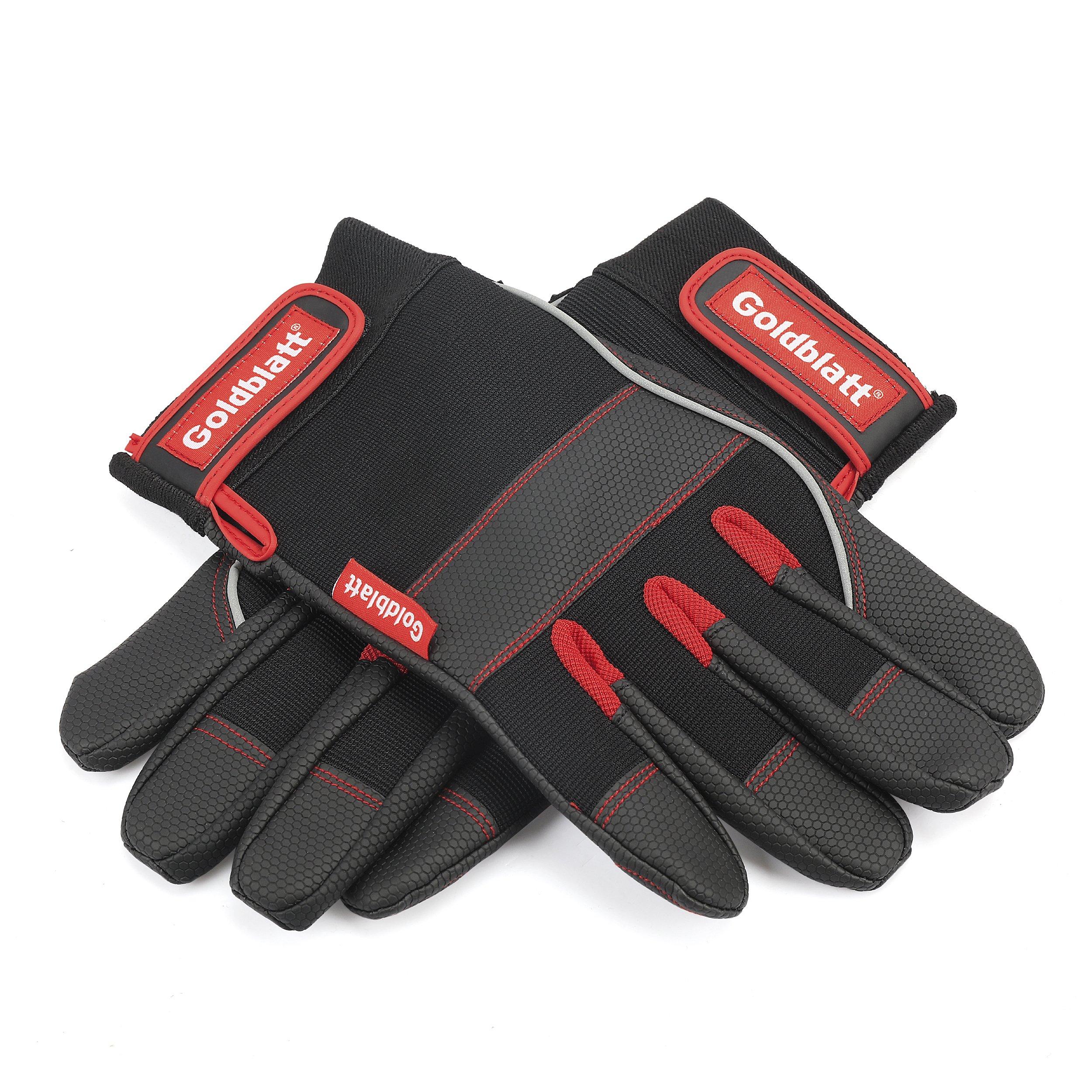 Lifetime LimitedThe Goldblatt® demolition glove is lightweight yet durable general purpose work gloves. Great for construction and many other applications. Form-fitted for added dexterity and reduced fatigue, helping you finish the job with ease. Comfortable wing closing strap for a secure fit. Breathable spandex back with padded knuckles and added padded thumb to provides ultimate comfort and fit. Size-L.