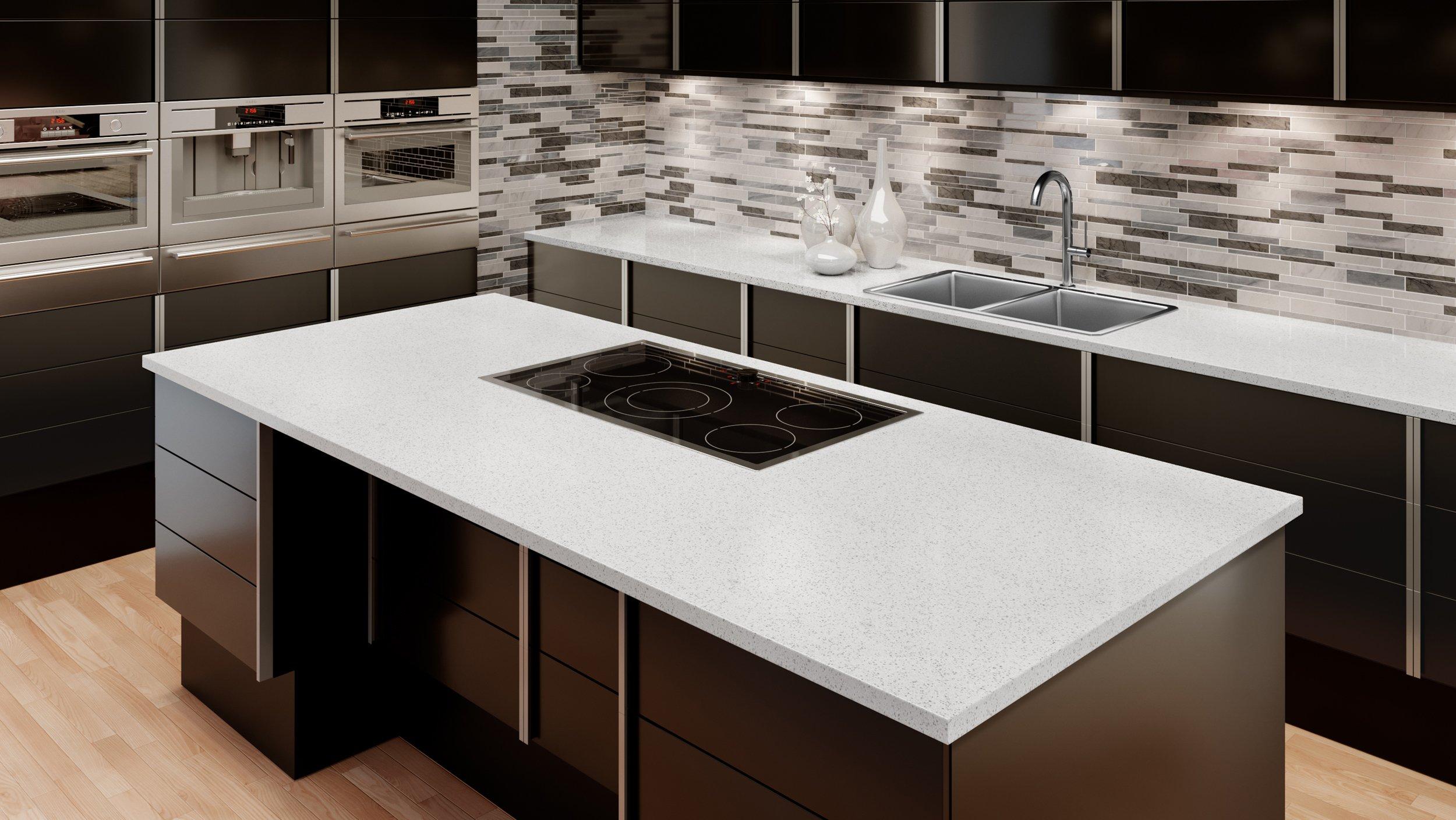 Quartz countertops are manufactured using both Quartz and resins that make the material heat, scratch and stain-resistant. Quartz has a great impact resistance, so it won’t chip or crack, and sealing or polishing is not required. The non-porous quality of Quartz also makes it highly resistant to germs and bacteria. The consistency of the pattern and colors in this engineered countertop makes it a great alternative to natural stone options, providing a Granite or Marble look without the color and pattern variation.