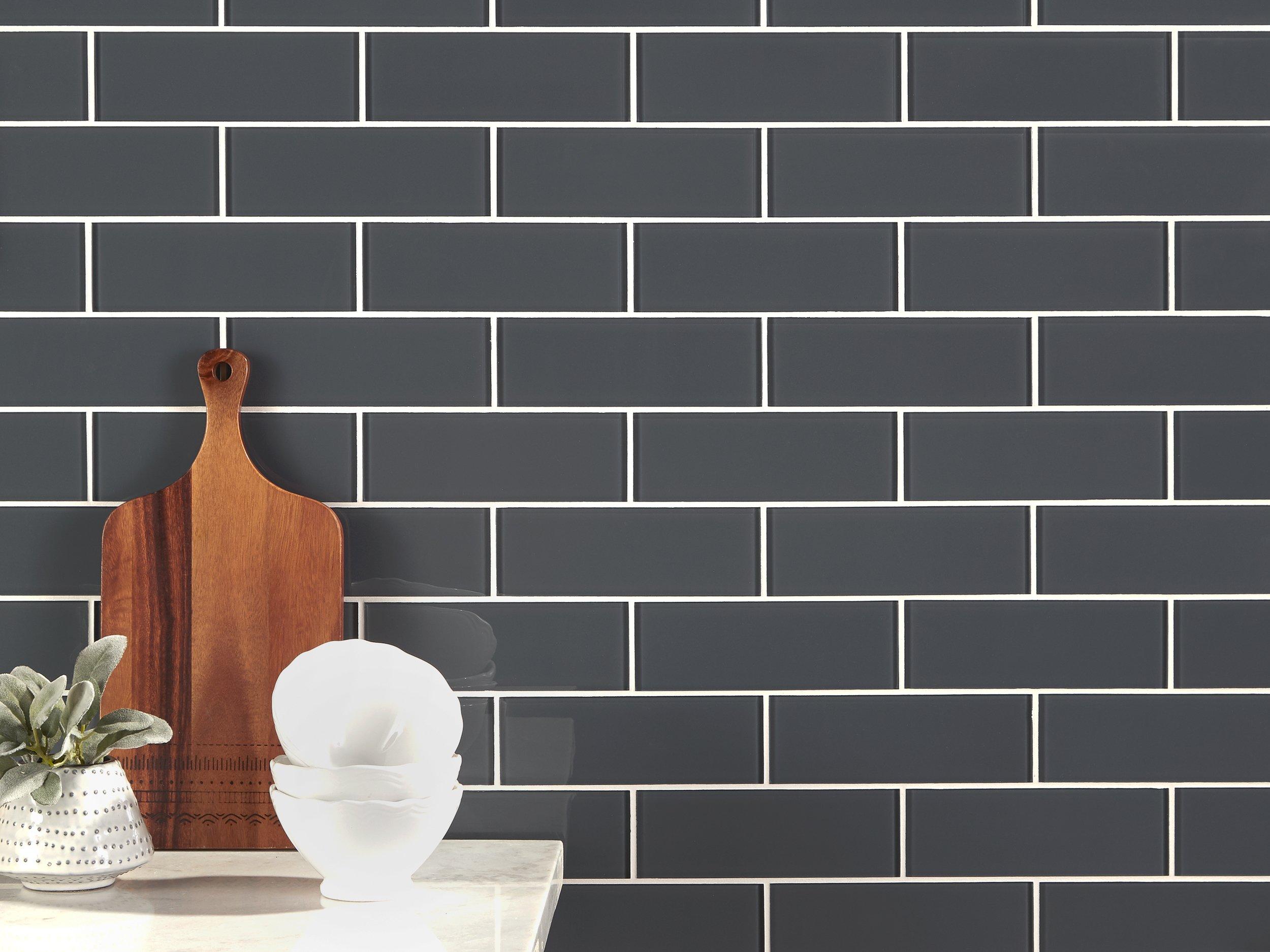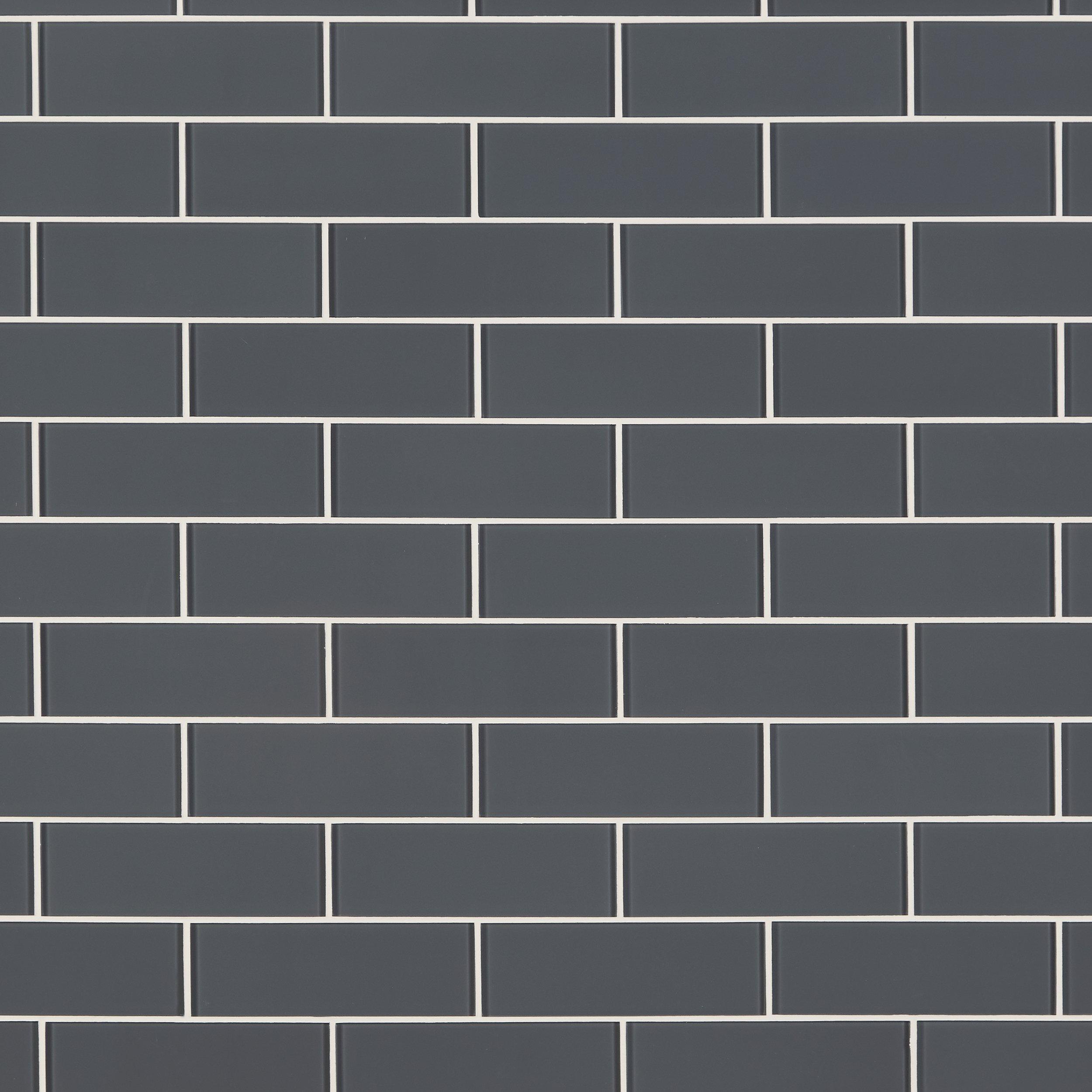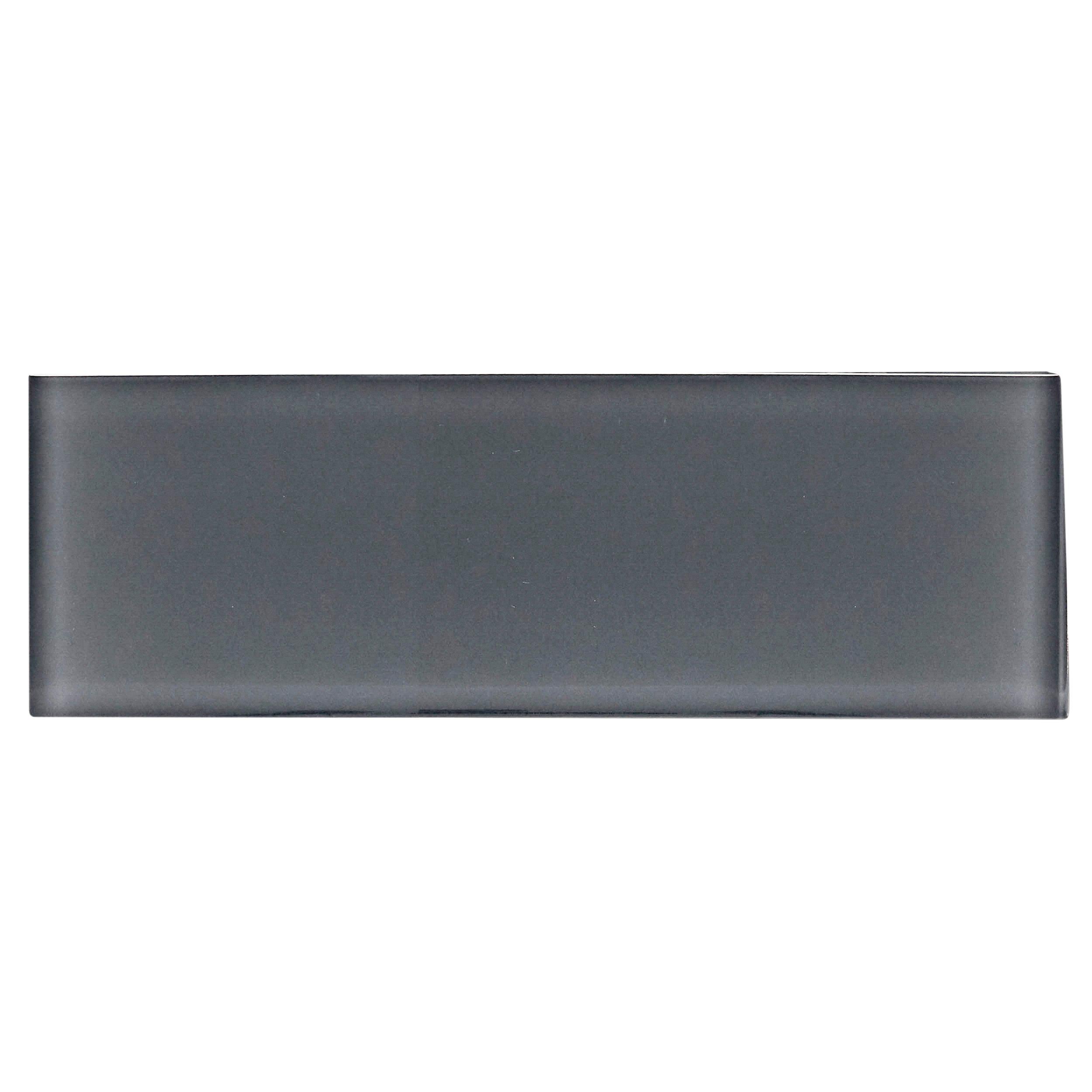 Liven up any room with this rectangle 3 x 9 Graphite Glass Tile in gray.