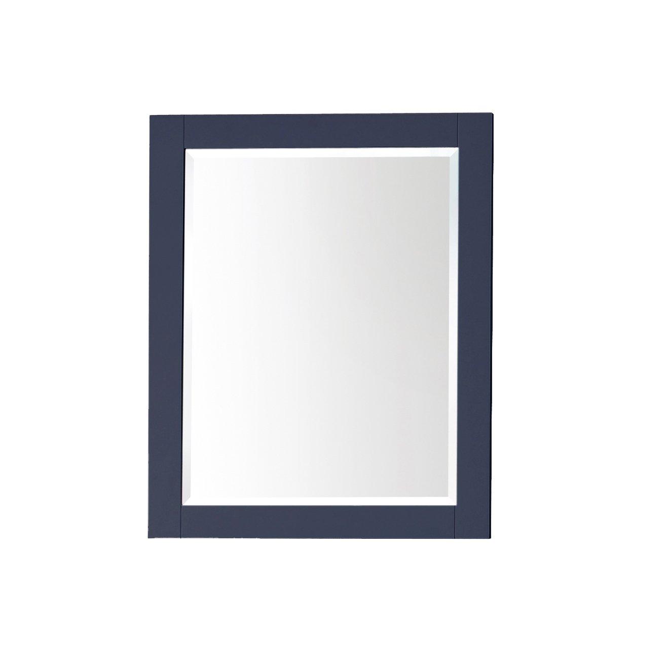 The Hampton 24 in. Navy Blue Mirror features a contemporary navy blue finish and a simple clean design. The mirror hangs horizontally and vertically.•24W x 1.3D x 30H inches•Navy Blue finish•Beveled mirror•Cordinates with vanity collection•Wood cleat for easy hanging and leveling