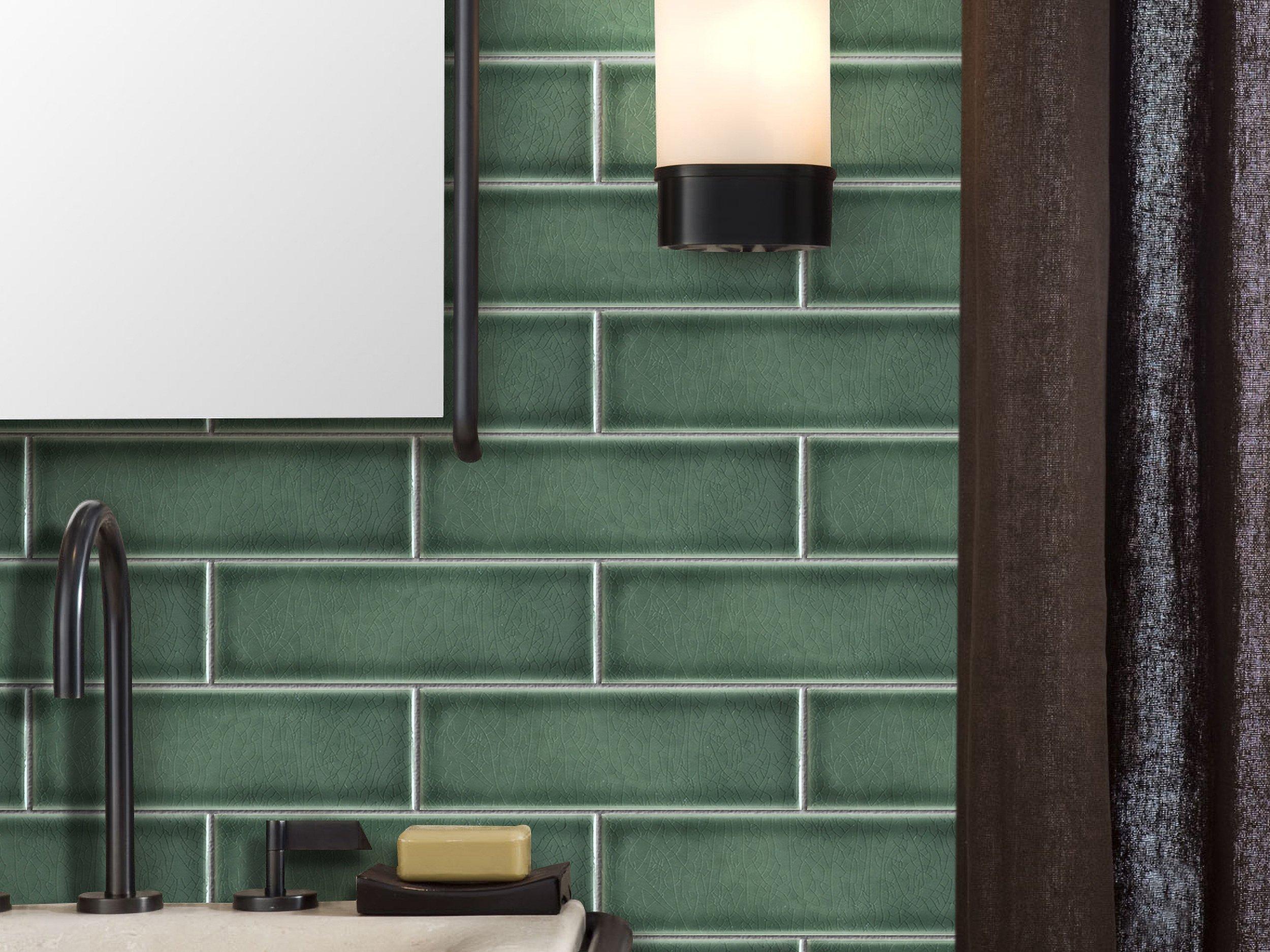 Personalize your space with the 3 x 9 Heirloom Sage Polished Porcelain Tile. This green polished or high gloss finish tile will make a great impact in small areas like the bathroom, den, or other overlooked spaces.