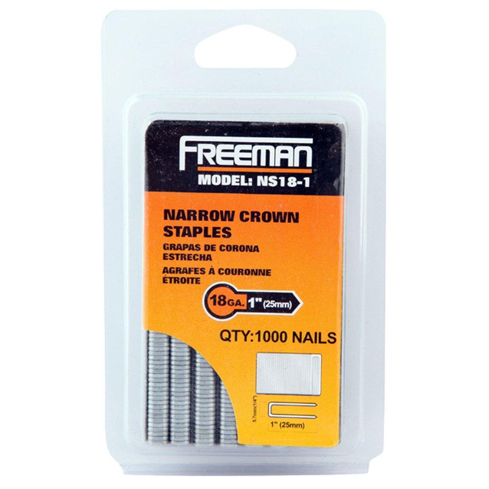 Freeman 's 1 in. 18-Gauge Staples is an excellent utility fastener. From decorative trim to shelving and crafts to hanging signs, these staples can serve many purposes. Fits most 18-Gauge pneumatic staplers capable of utilizing 1 in. staples.