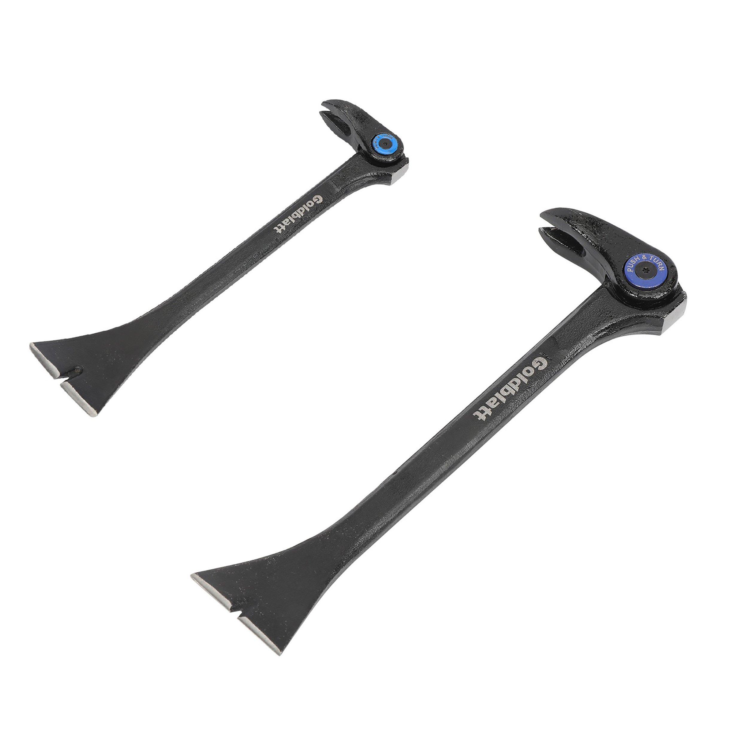 NONEGoldblatt 2pc. Indexable Bar Set•Head indexes about 180 degrees and locks in 5 positions•Heat-treated for increased durability•Push button and turn claw to change position•Head has raised striking surface allows for striking•Exceeds ANSI pry bar requirements for proven strength